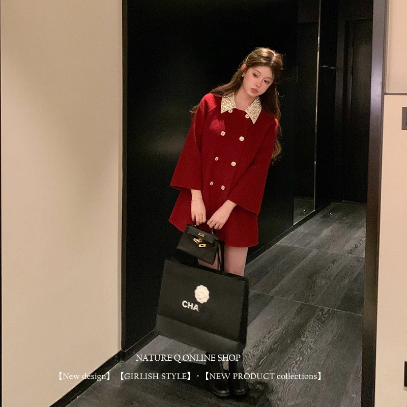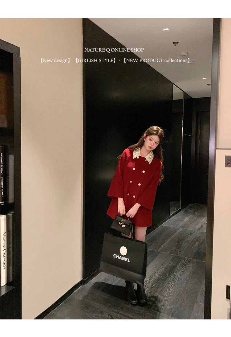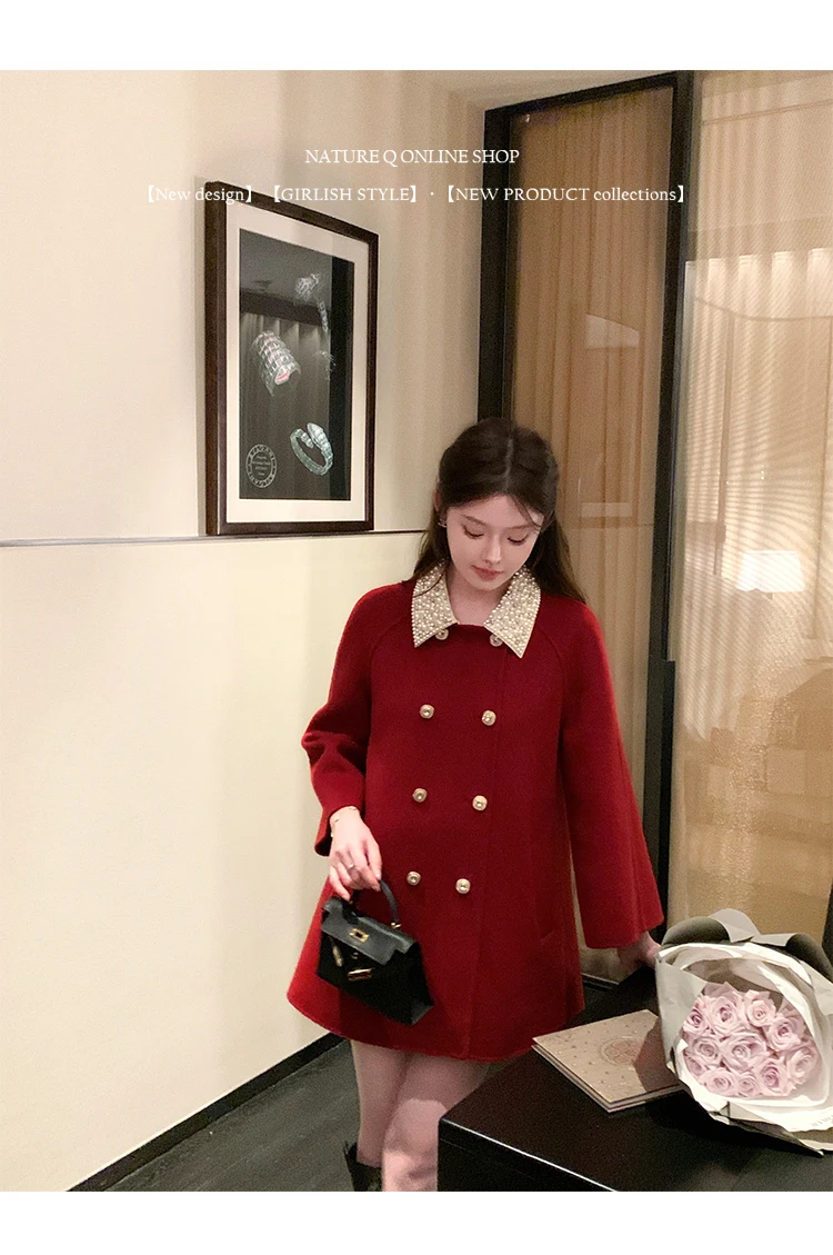 Cappotti larghi a maniche lunghe patchwork nero beige rosso da donna francese 2025 Autunno Inverno Nuovo doppio petto Festival Top Streetwear 1Cappotti larghi a maniche lunghe patchwork nero beige rosso da donna francese 2025 Autunno Inverno Nuovo doppio petto Festival Top Streetwear