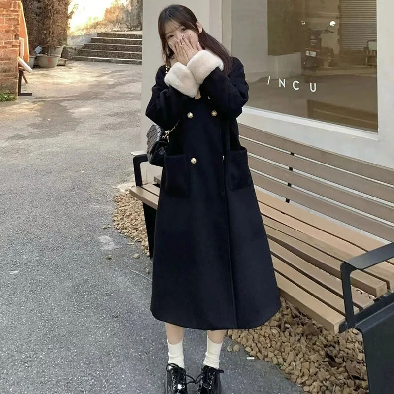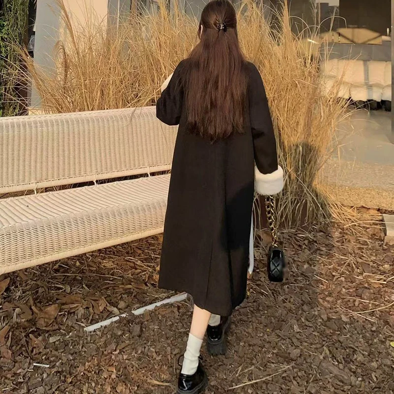 2024 AliExpress transfrontaliero autunno e inverno bella bellezza, nuovo vestito allentato moda retrò colletto alla coreana lungo
