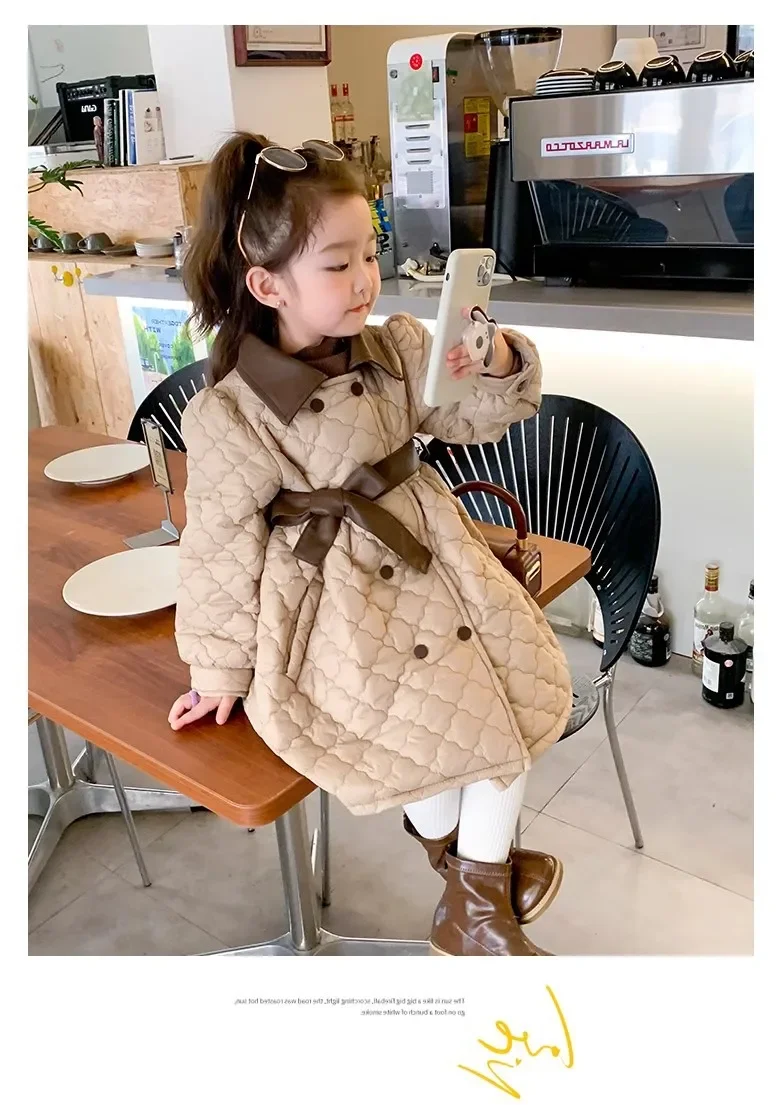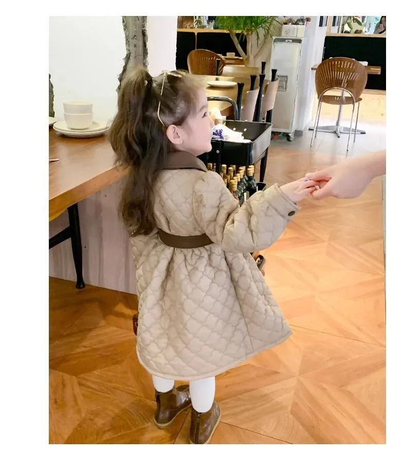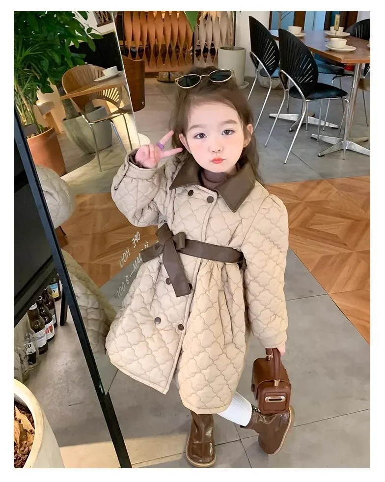 Cappotti per bambini Cappotto imbottito in cotone con clip in pelle PU imbottito in cotone da ragazza Cappotto medio lungo Cappotto invernale per ragazze