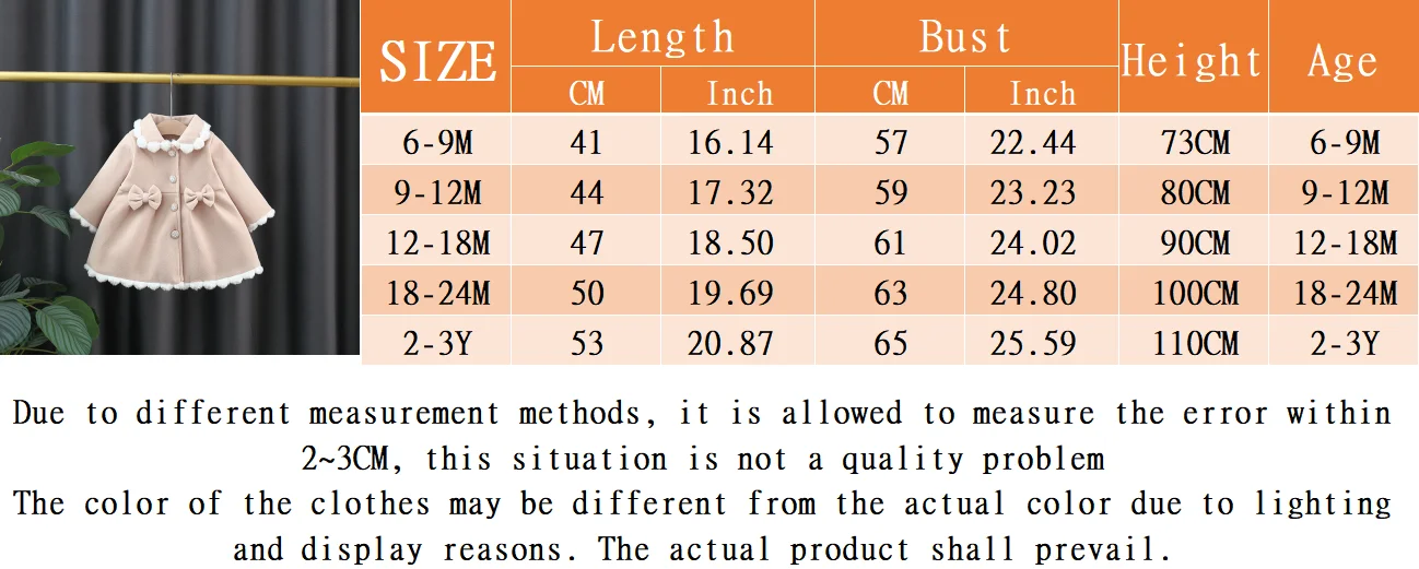 (Cappotto a maniche lunghe per bambina da (0-3 anni) Nuovo abbigliamento per bambini in stile coreano con fiocco dolce per l’autunno e l’inverno