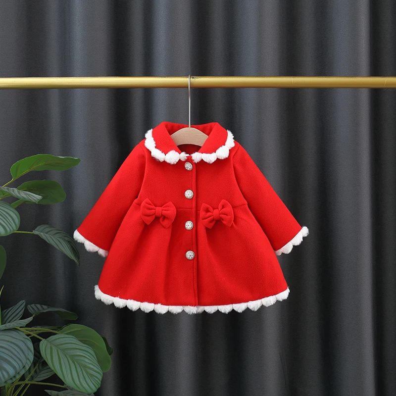 (Cappotto a maniche lunghe per bambina da (0-3 anni) Nuovo abbigliamento per bambini in stile coreano con fiocco dolce per l’autunno e l’inverno