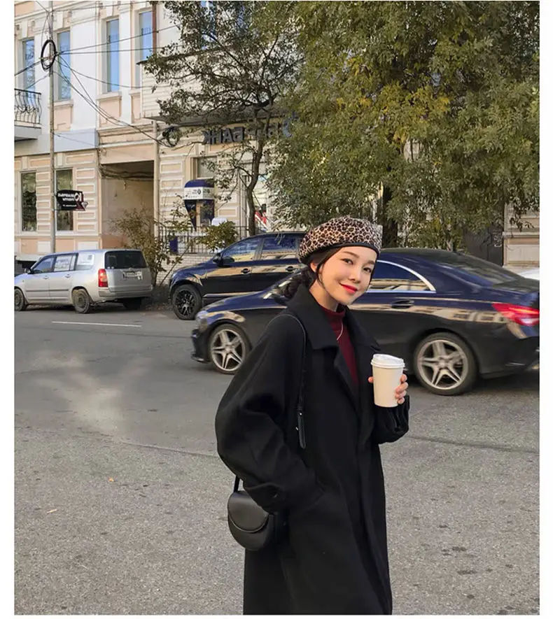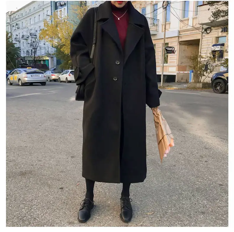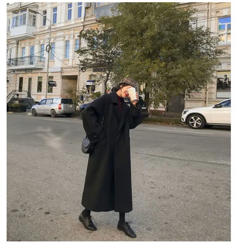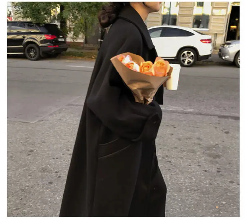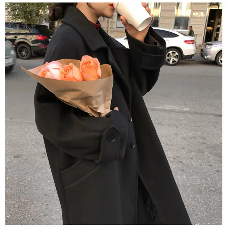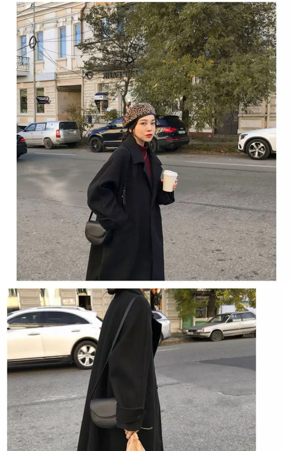 Cappotto Autunno Inverno Temperamento Cappotto di lana da donna 2025 Nuova versione coreana nera Cappotto di lana allentato e spesso per le donne H316