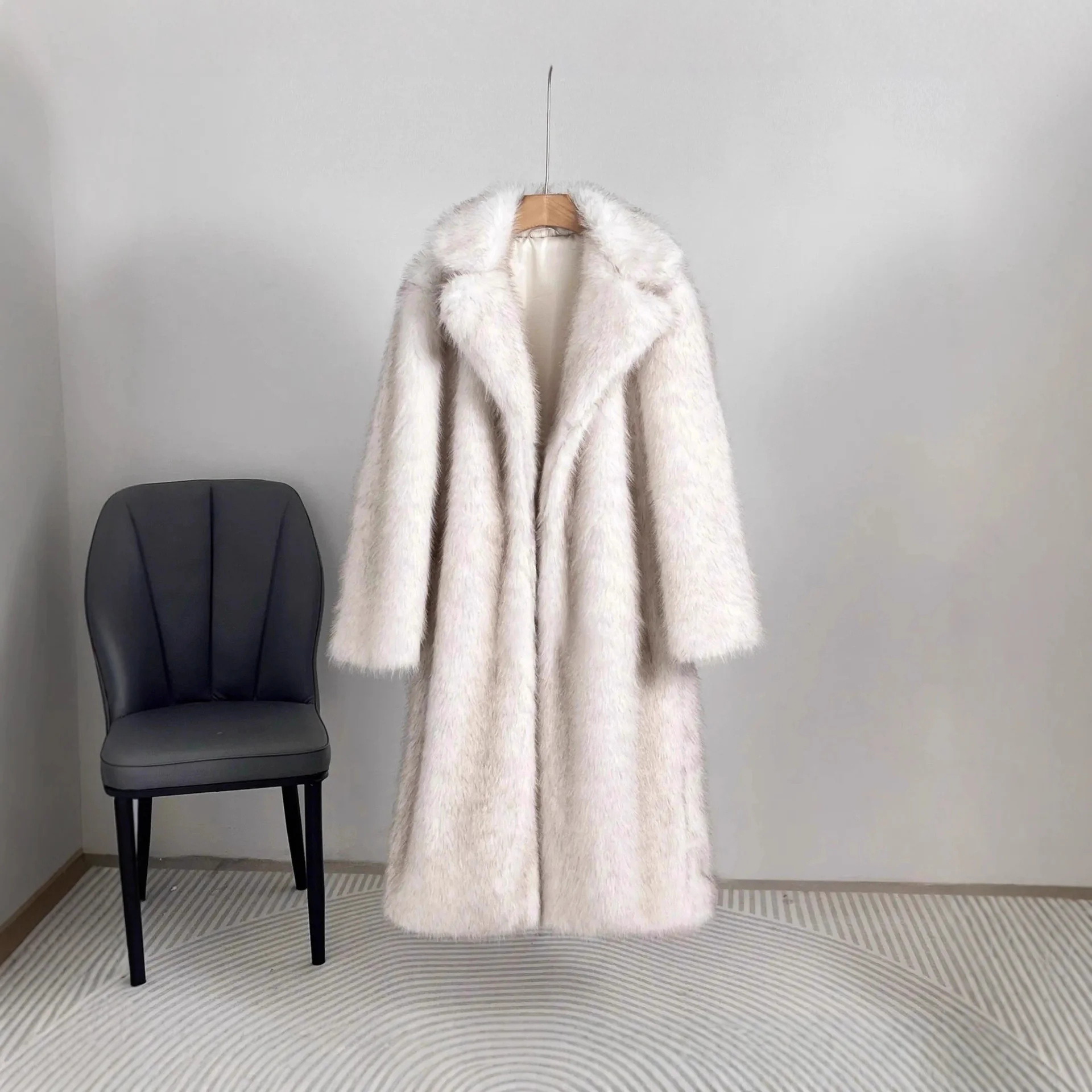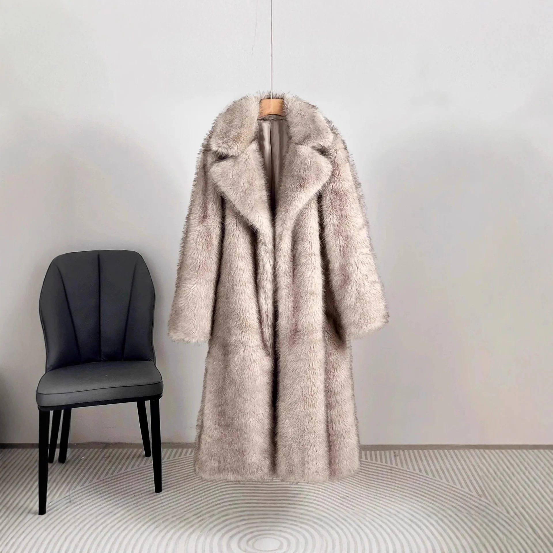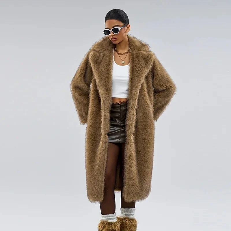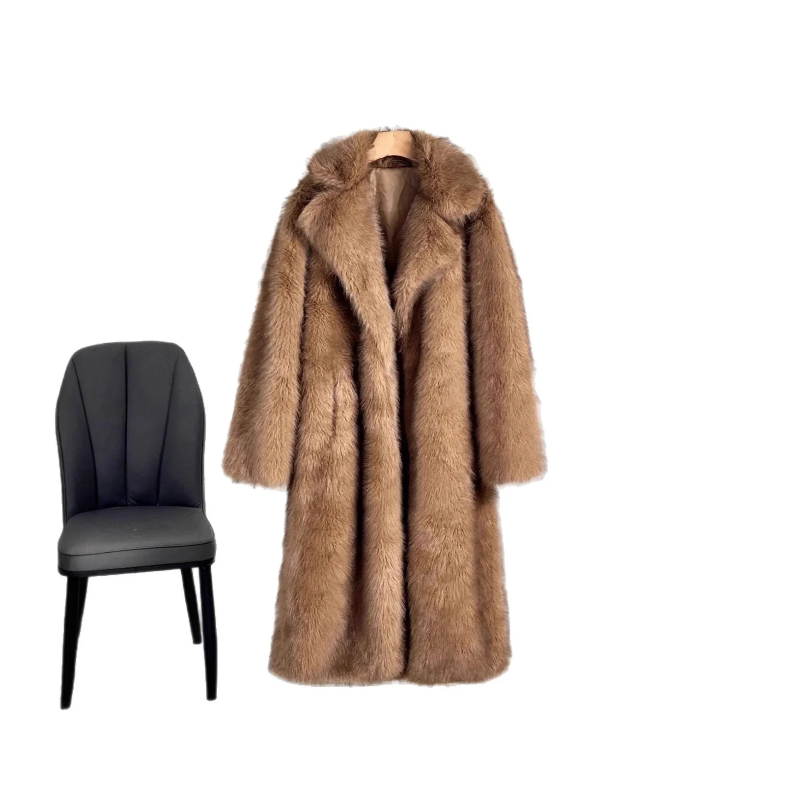 Cappotto completo da donna con risvolto in pelliccia sintetica, giacca invernale calda a maniche lunghe in tinta unita ampia per streetwear casual, ufficio, regalo di Natale