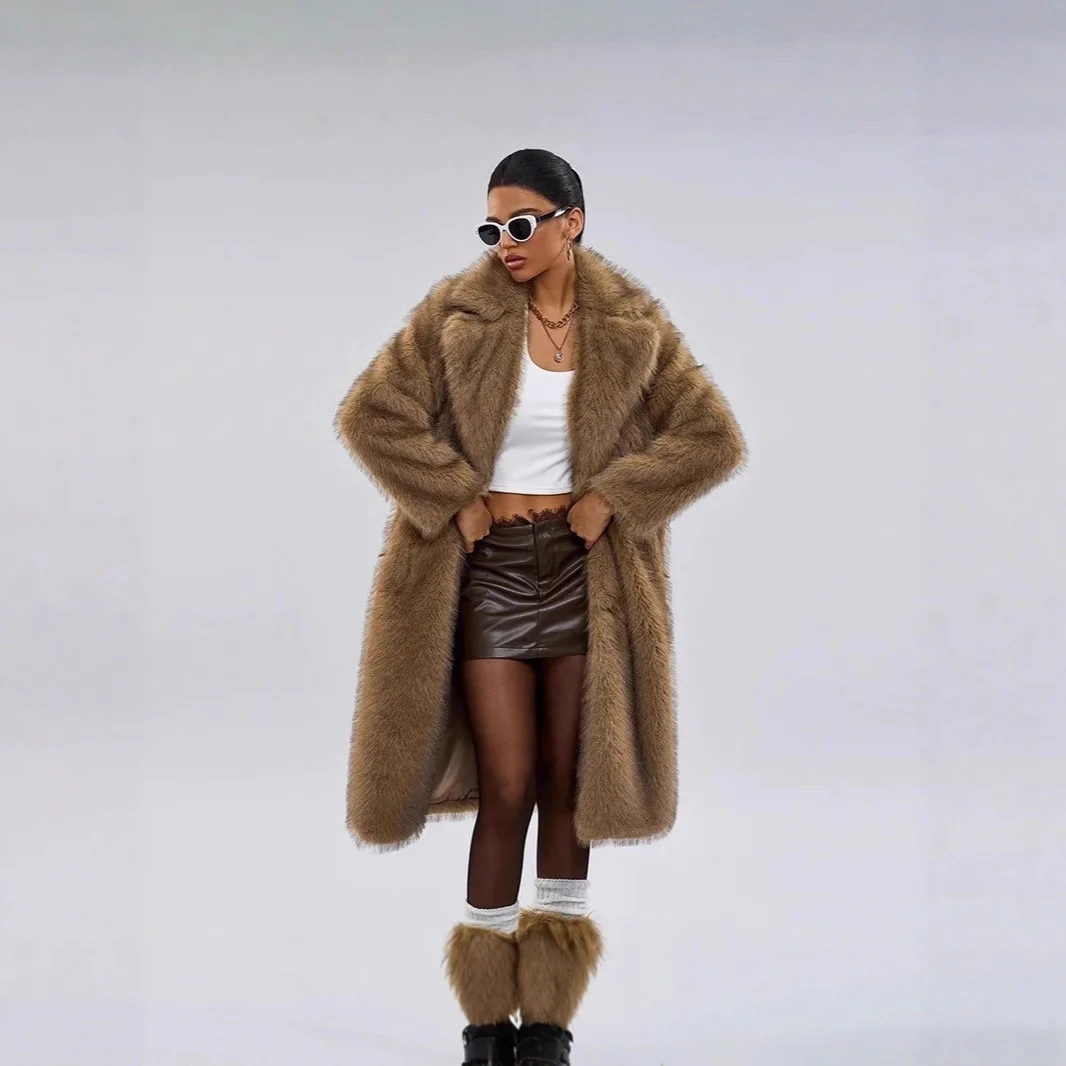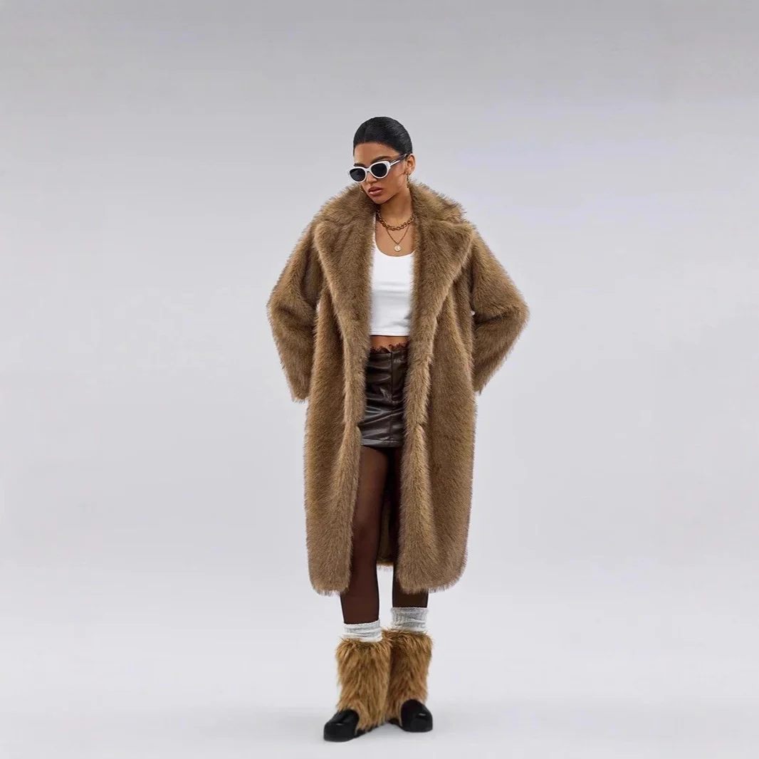 Cappotto completo da donna con risvolto in pelliccia sintetica, giacca invernale calda a maniche lunghe in tinta unita ampia per streetwear casual, ufficio, regalo di Natale 1Cappotto completo da donna con risvolto in pelliccia sintetica, giacca invernale calda a maniche lunghe in tinta unita ampia per streetwear casual, ufficio, regalo di Natale