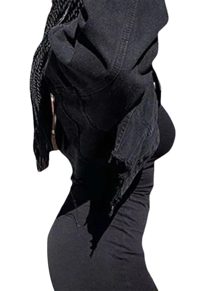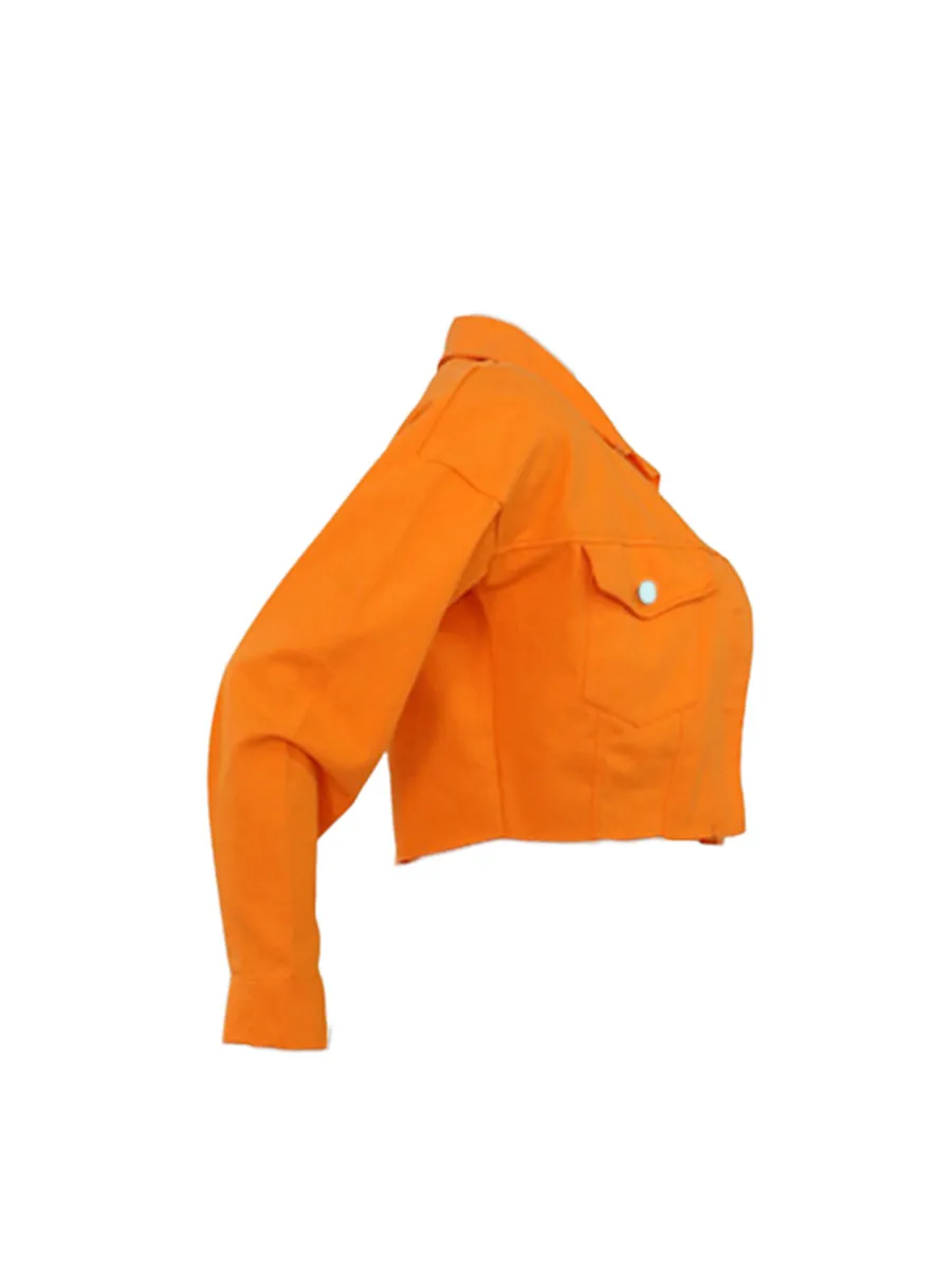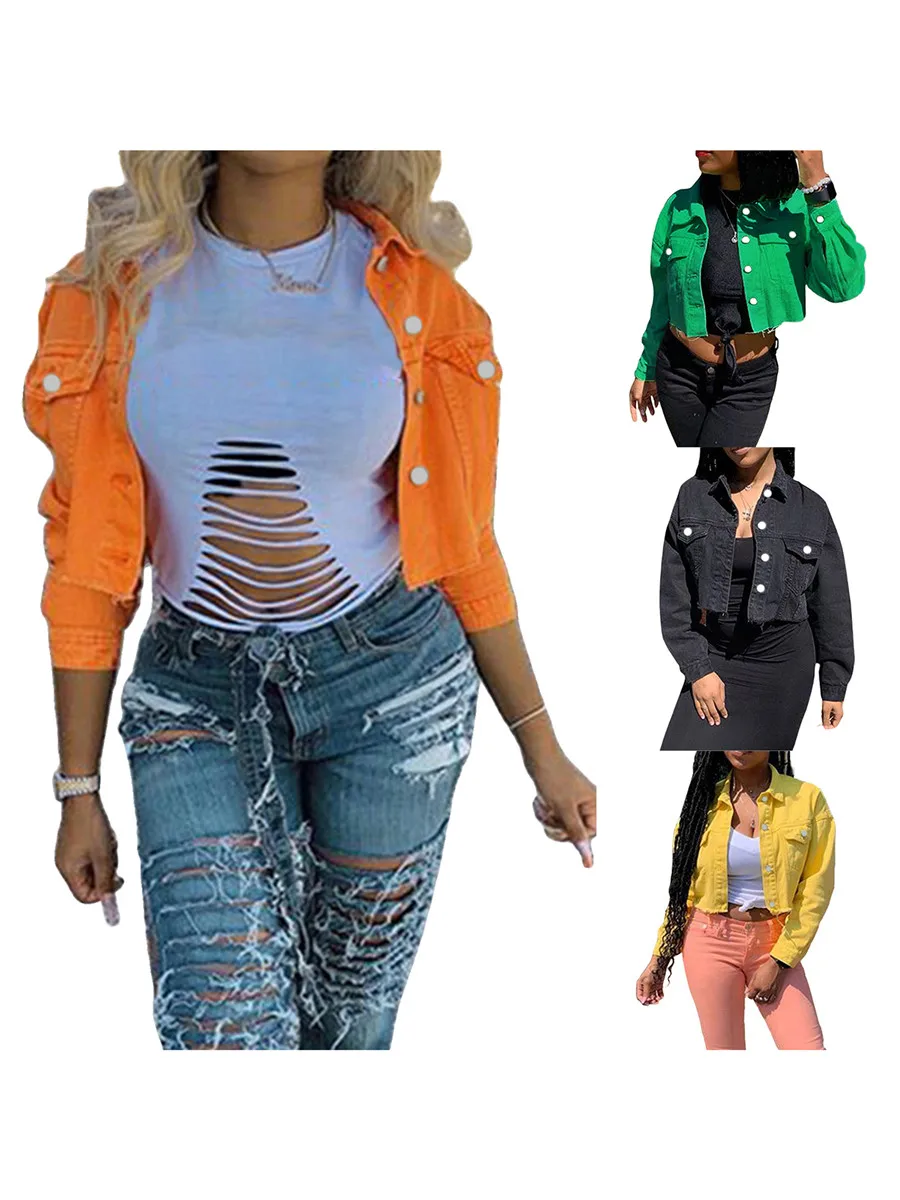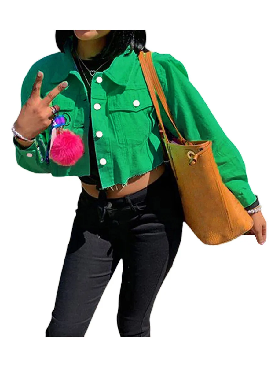 Cappotto jeans corto con orlo invecchiato da donna, cappotto jeans abbottonato da donna, giacca con risvolto a maniche lunghe da donna, cappotto jeans tinta unita da donna, cappotto corto in denim da donna, abbigliamento femminile, giacche da donna moda