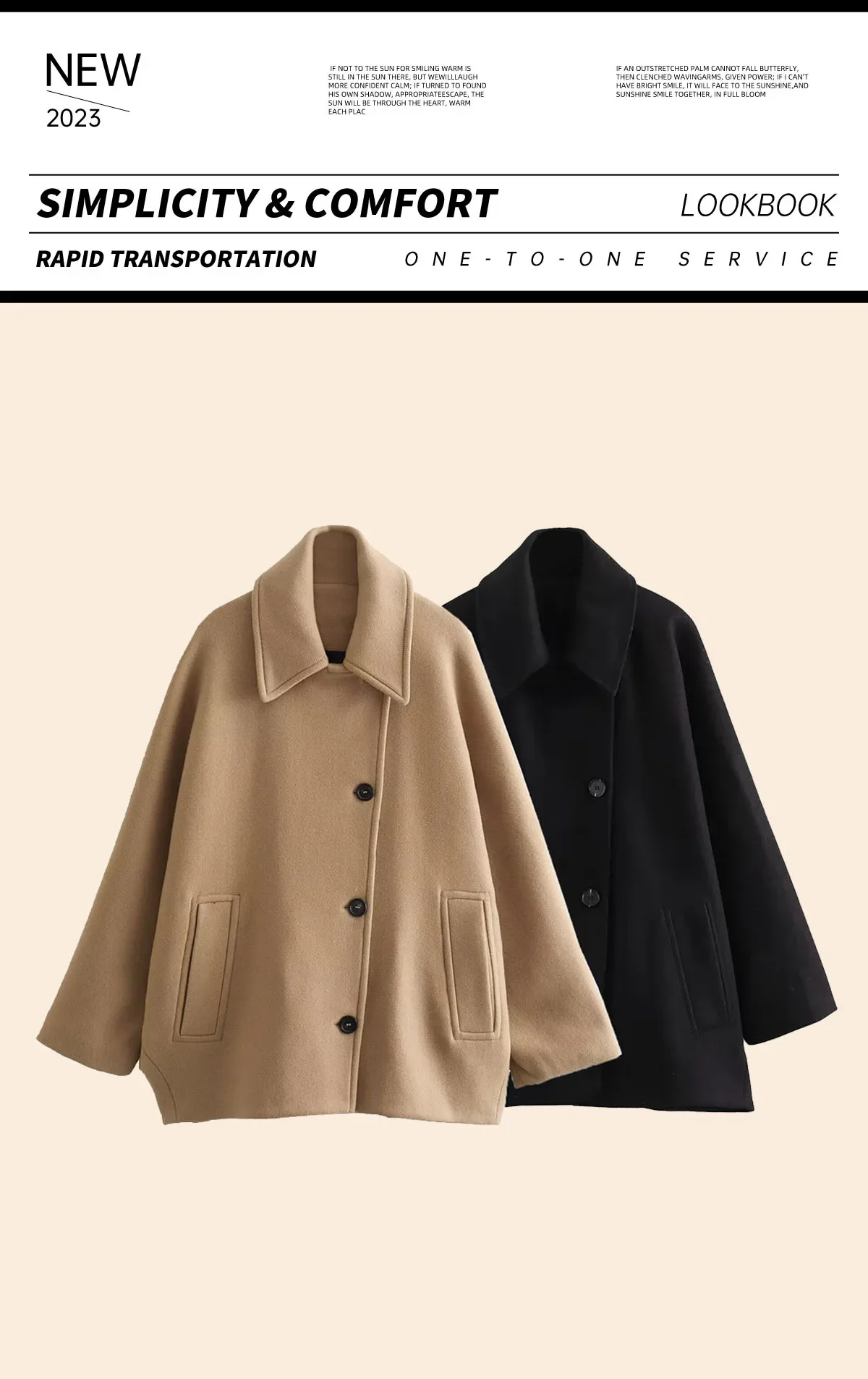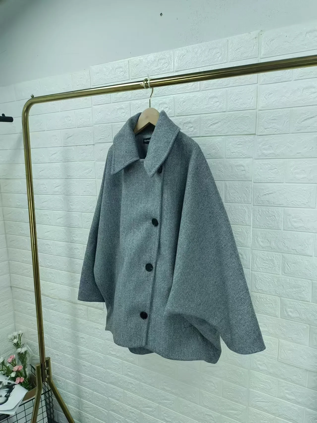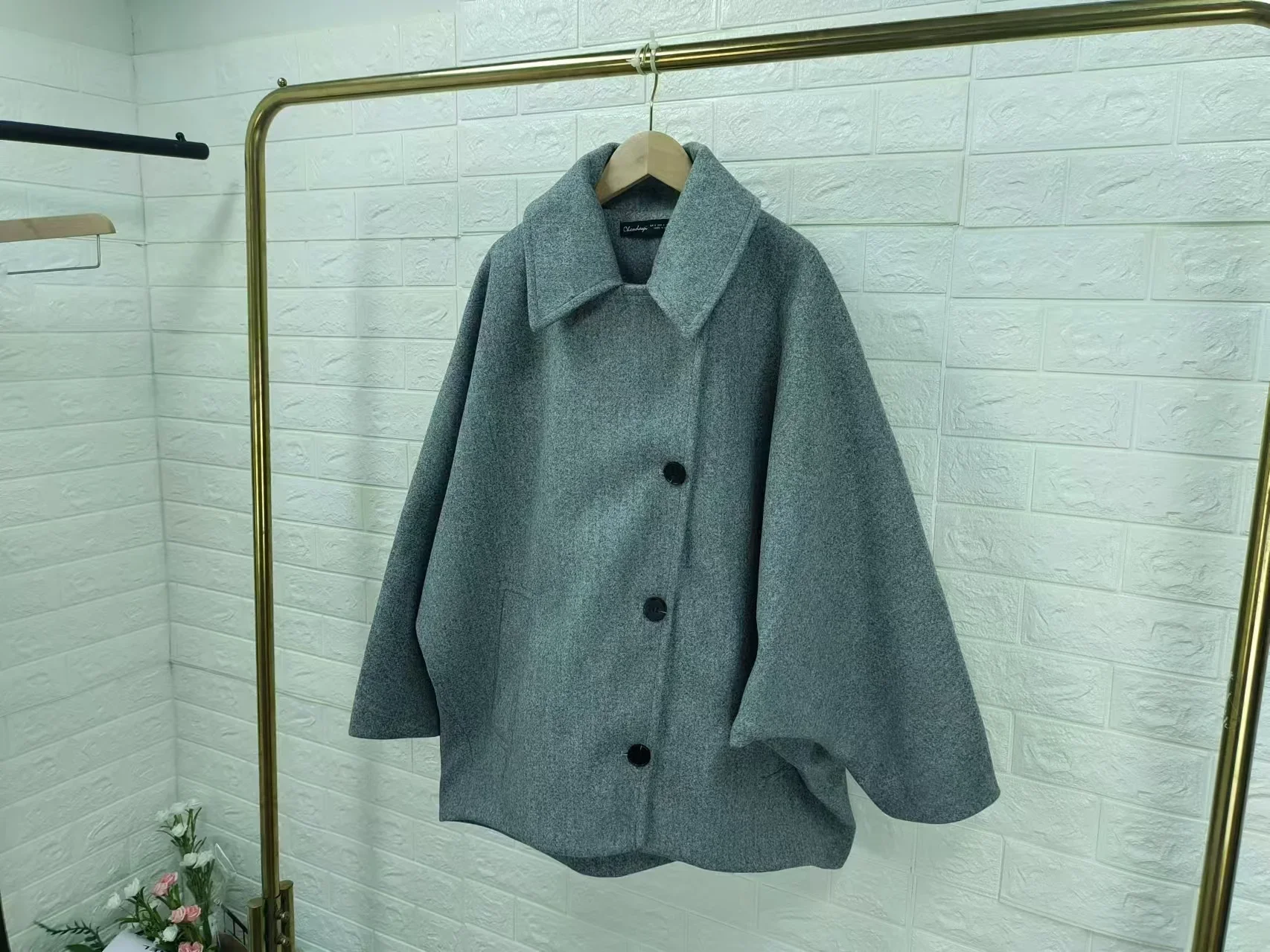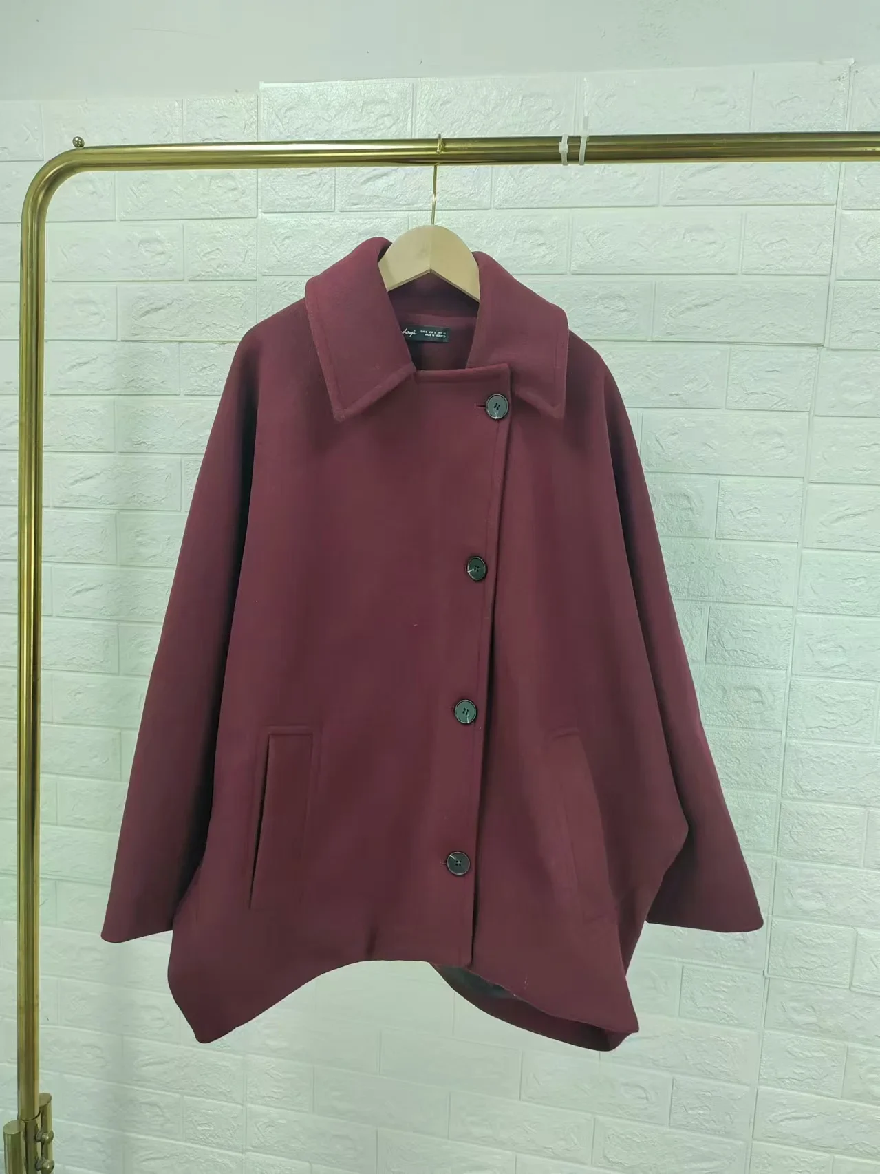 Cappotto corto misto da donna, collo polo casual, top personalizzato, manica mantello, inverno, nuovo