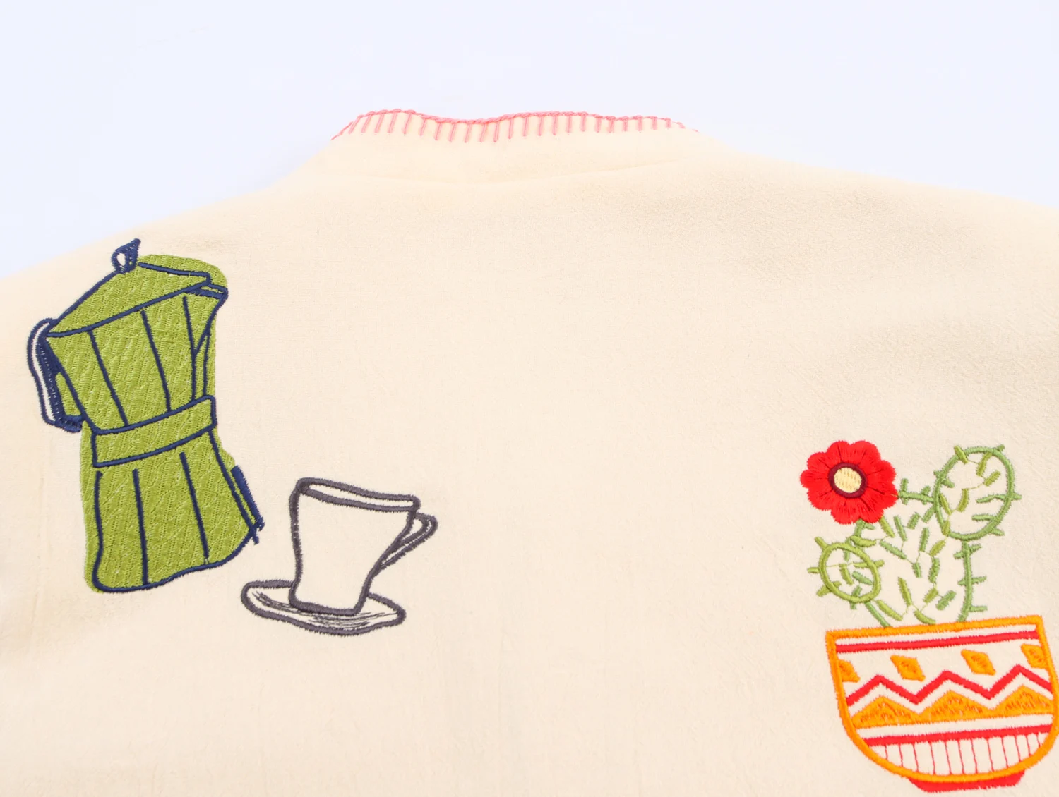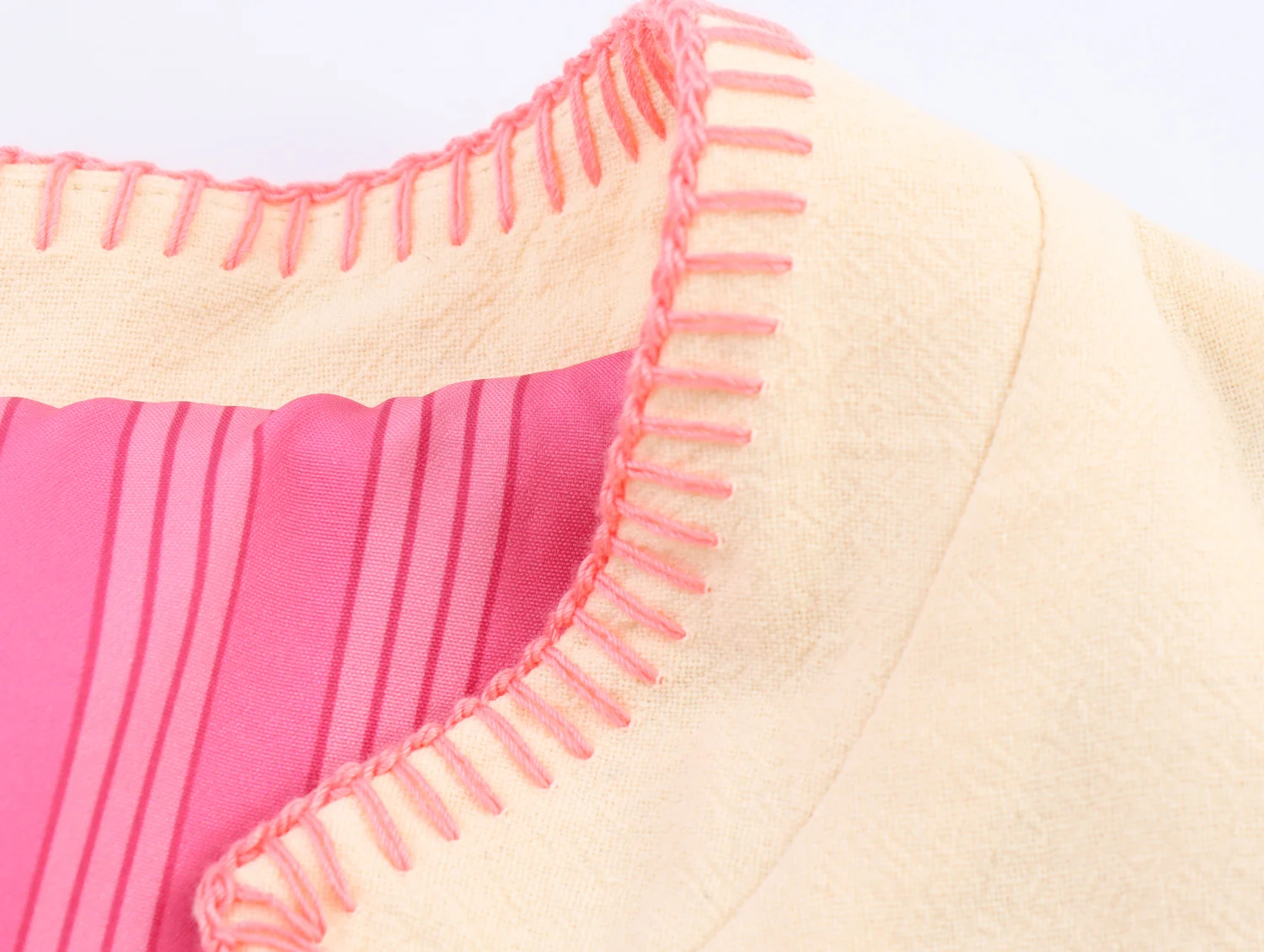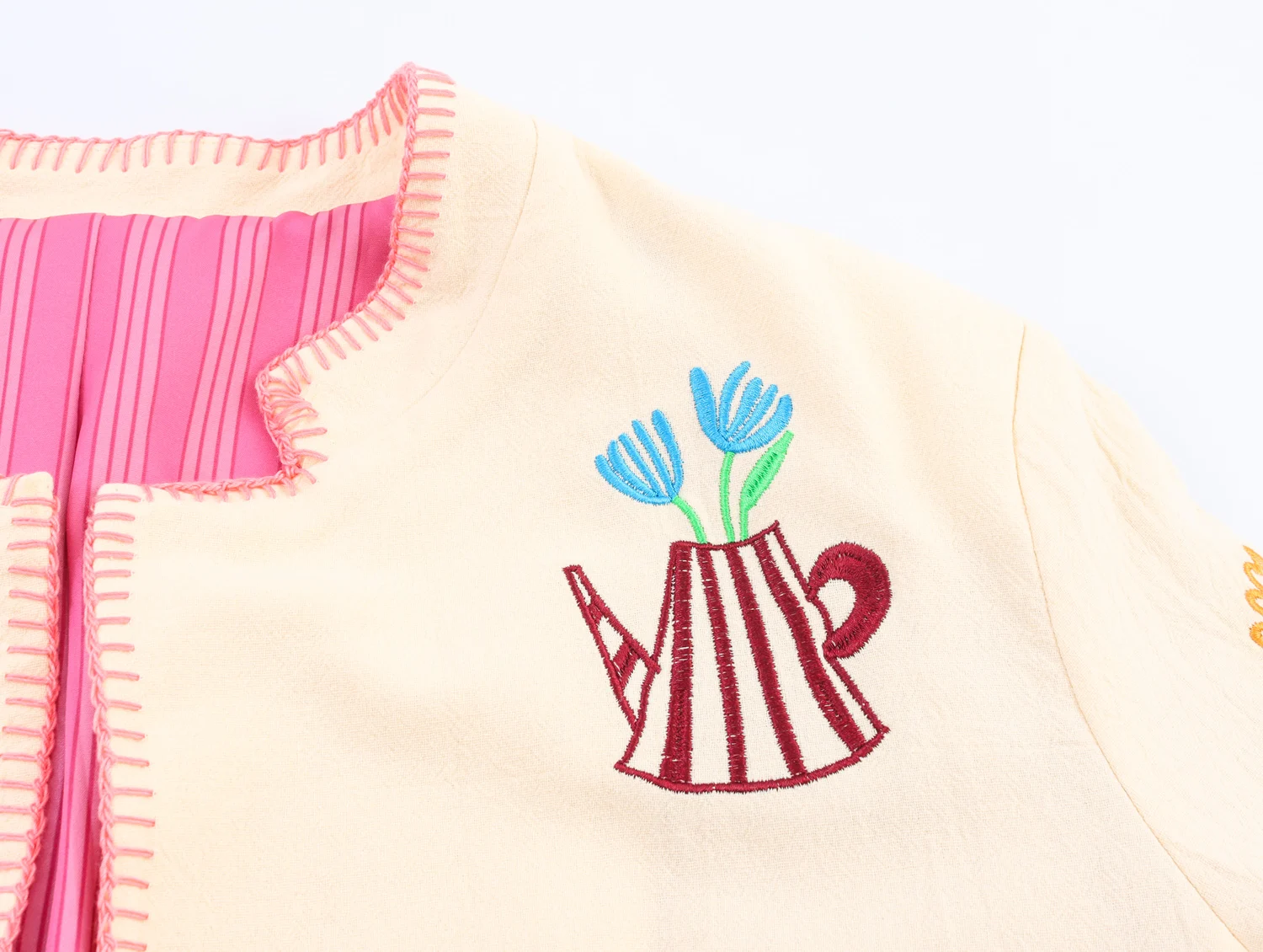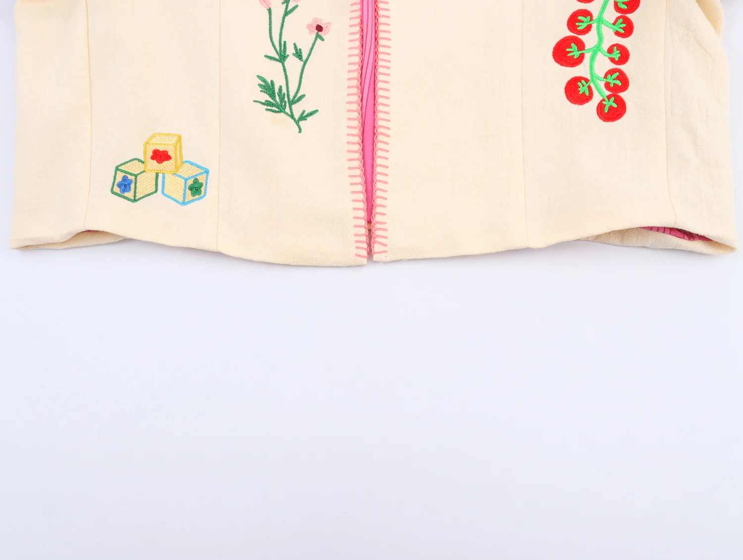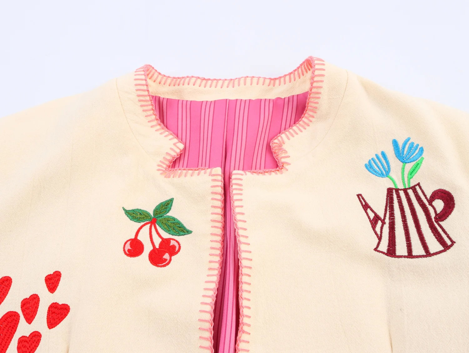 Cappotto corto ricamato a contrasto a maniche lunghe con scollo tondo allentato dolce casual da donna autunno 2025 1Cappotto corto ricamato a contrasto a maniche lunghe con scollo tondo allentato dolce casual da donna autunno 2025