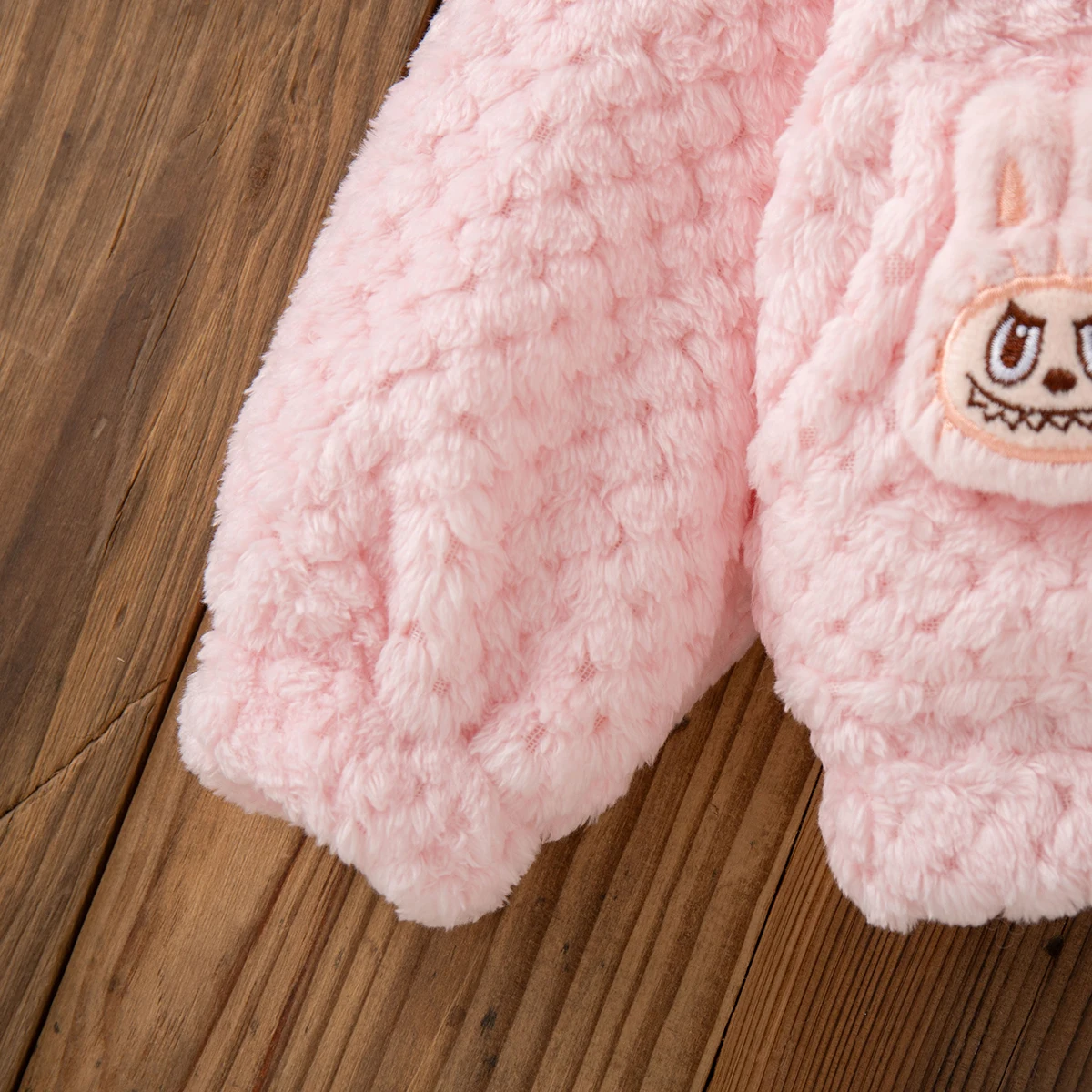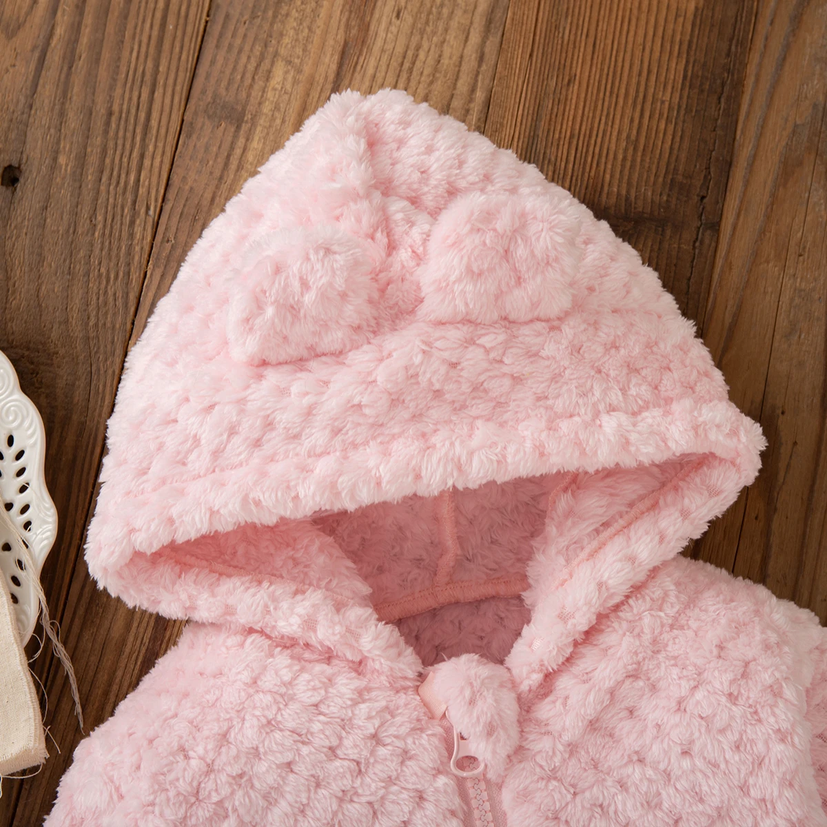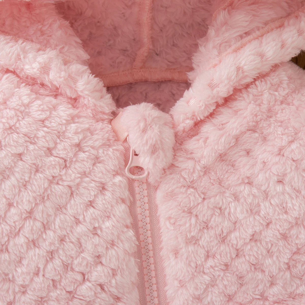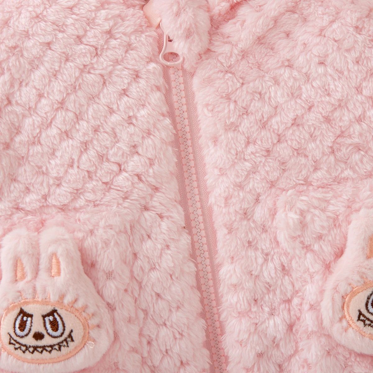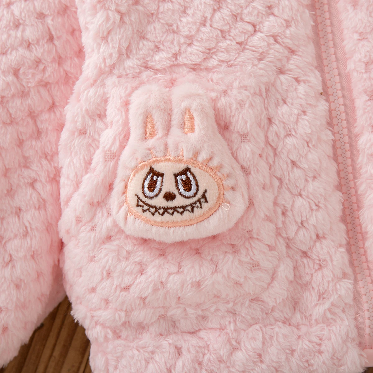 Cappotto da bambina invernale tinta unita con cerniera con cappuccio orecchie di coniglio design top da bambino cartone animato in pile caldo giacca da bambina vestiti per bambini