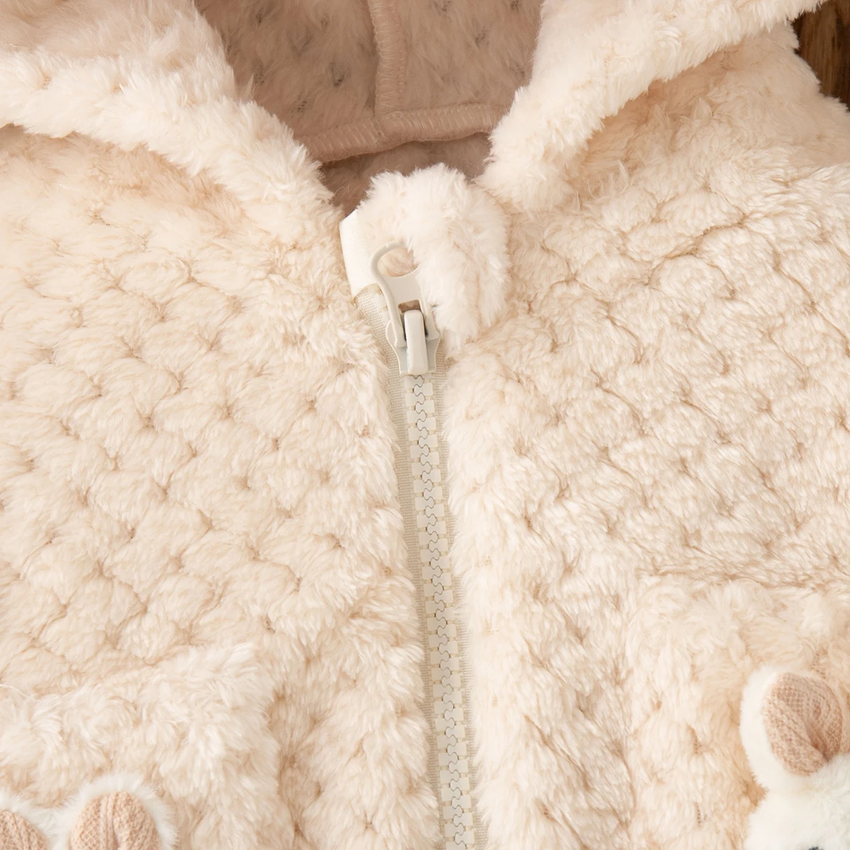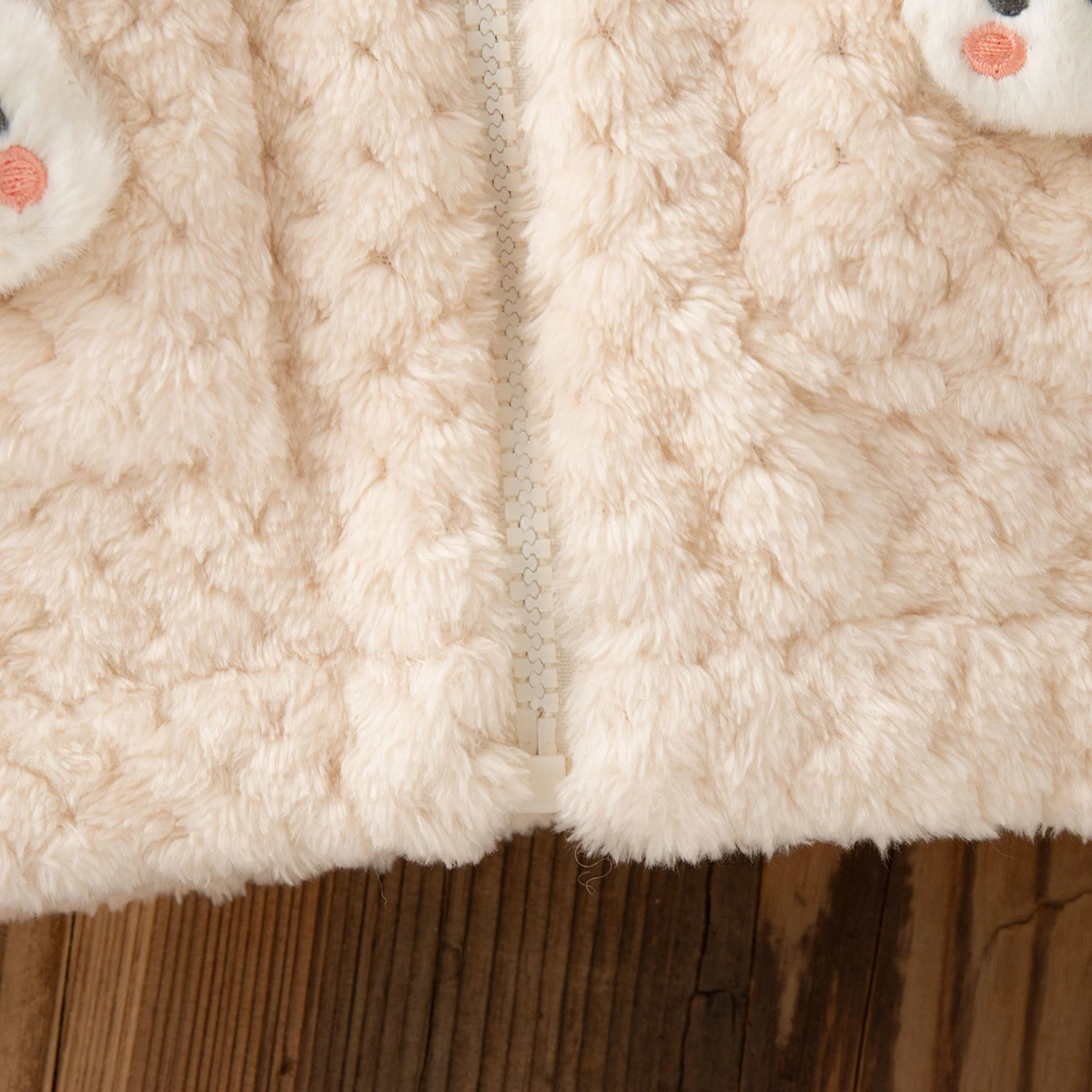Cappotto da bambina invernale tinta unita con cerniera con cappuccio orecchie di coniglio design top da bambino cartone animato in pile caldo giacca da bambina vestiti per bambini