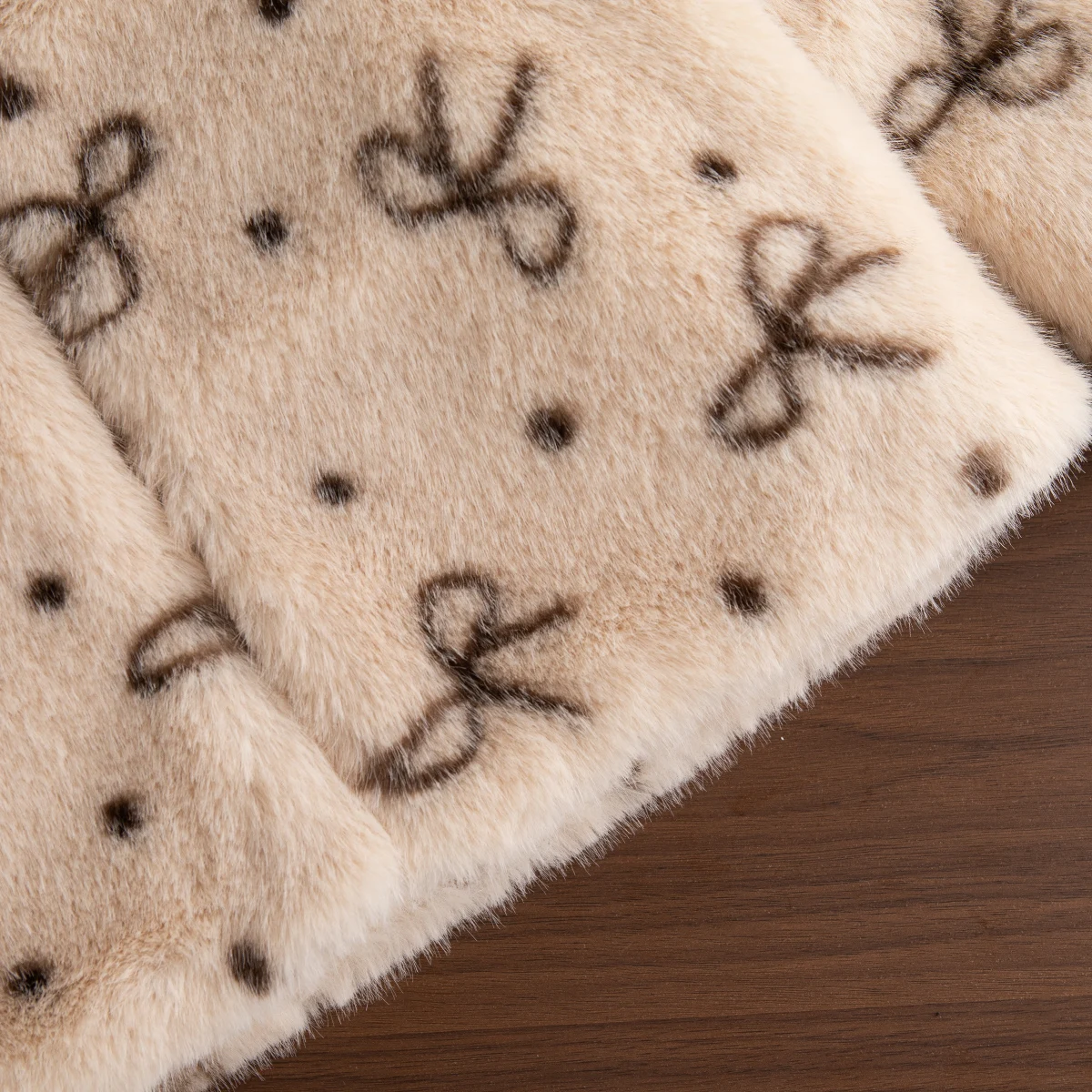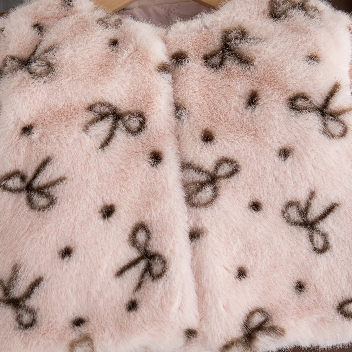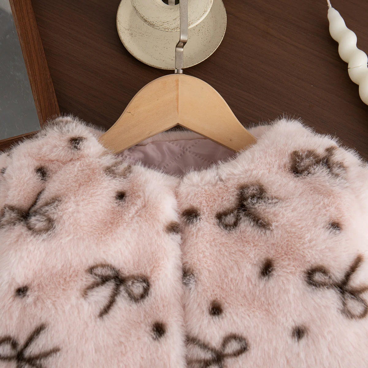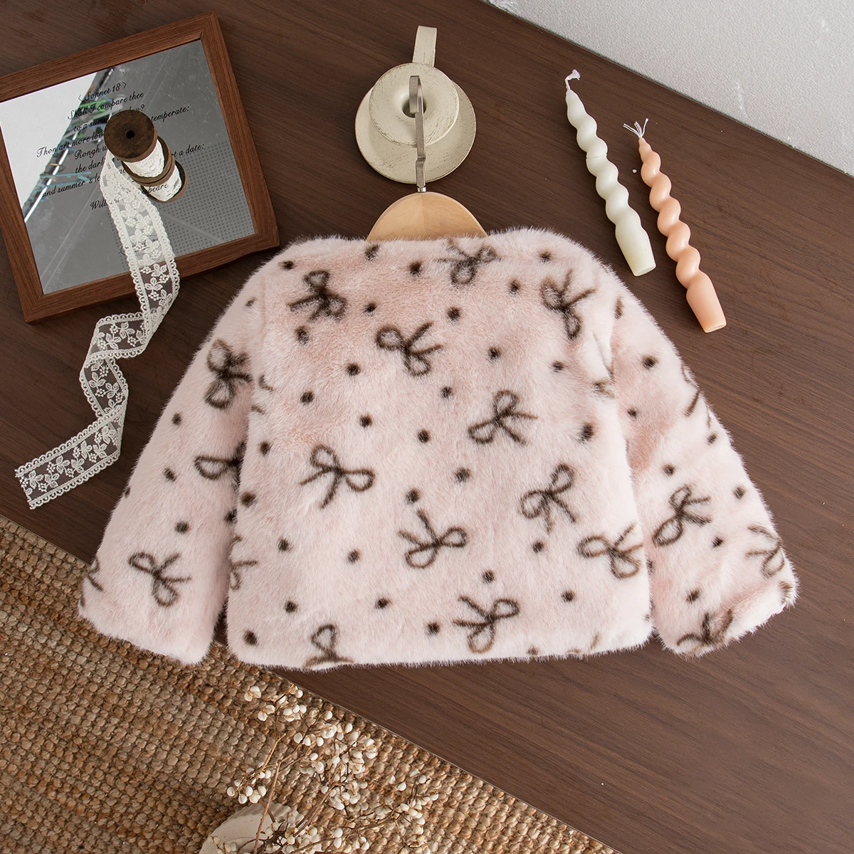 Cappotto da bambina invernale tinta unita con fiocco a pois girocollo top da bambino carino in pile caldo giacca da bambina abbigliamento per bambini