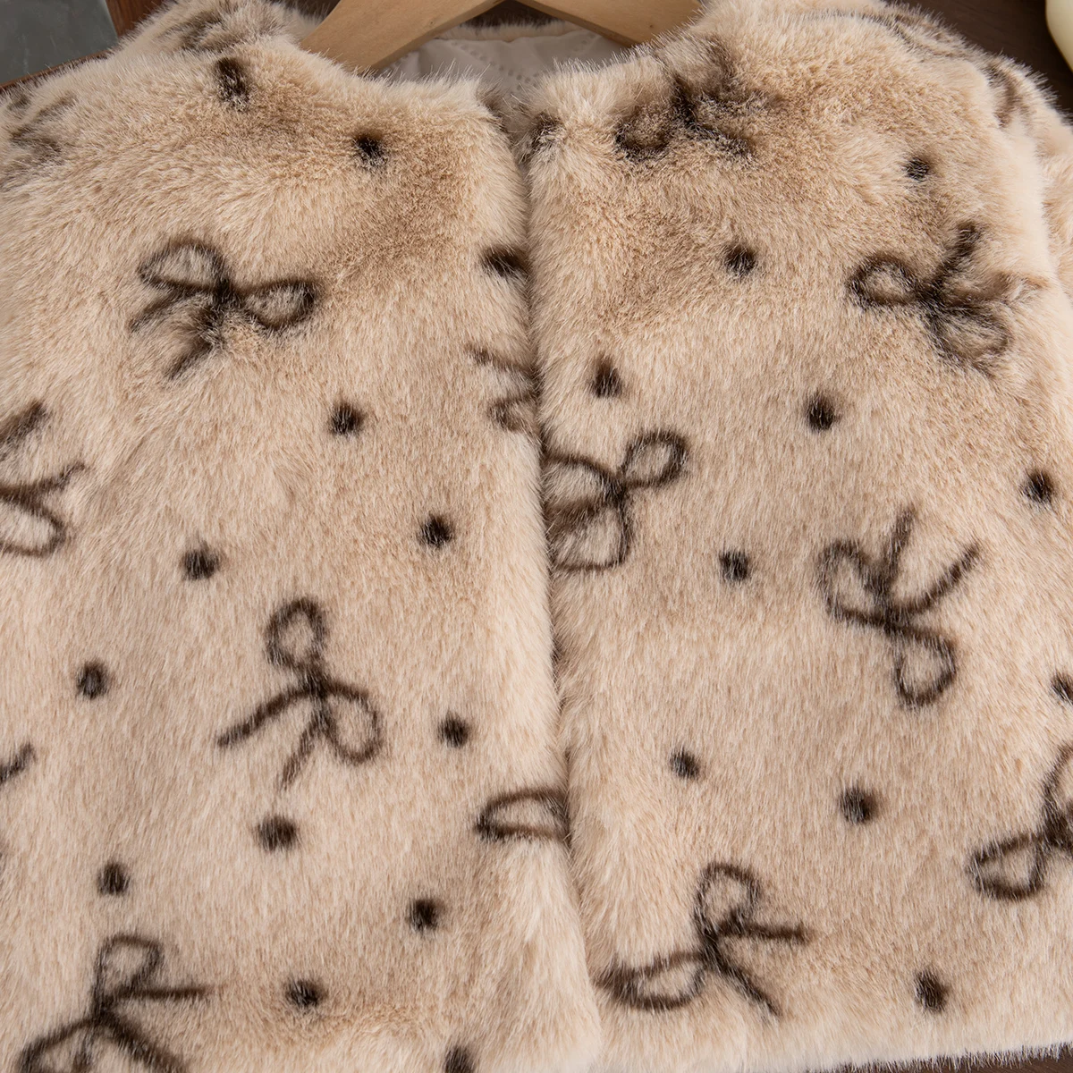 Cappotto da bambina invernale tinta unita con fiocco a pois girocollo top da bambino carino in pile caldo giacca da bambina abbigliamento per bambini