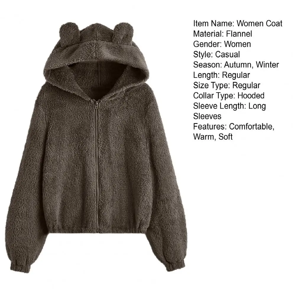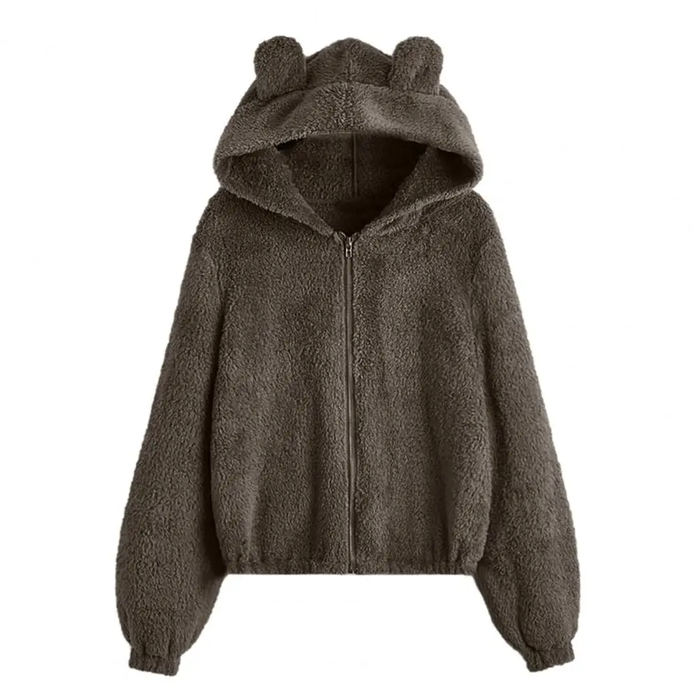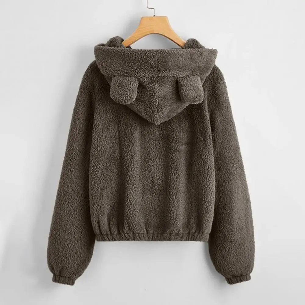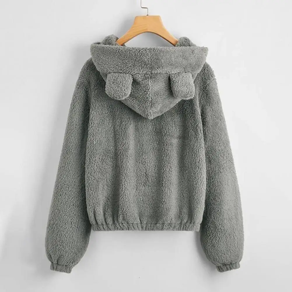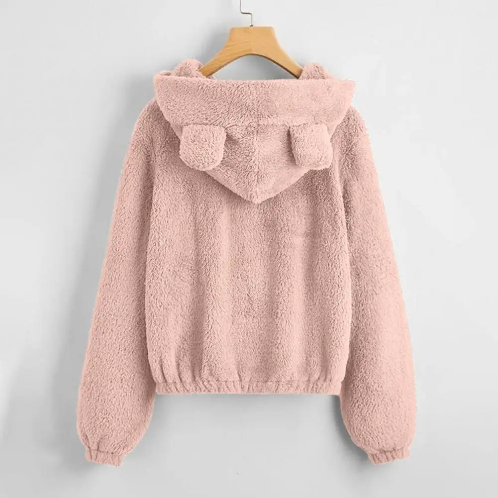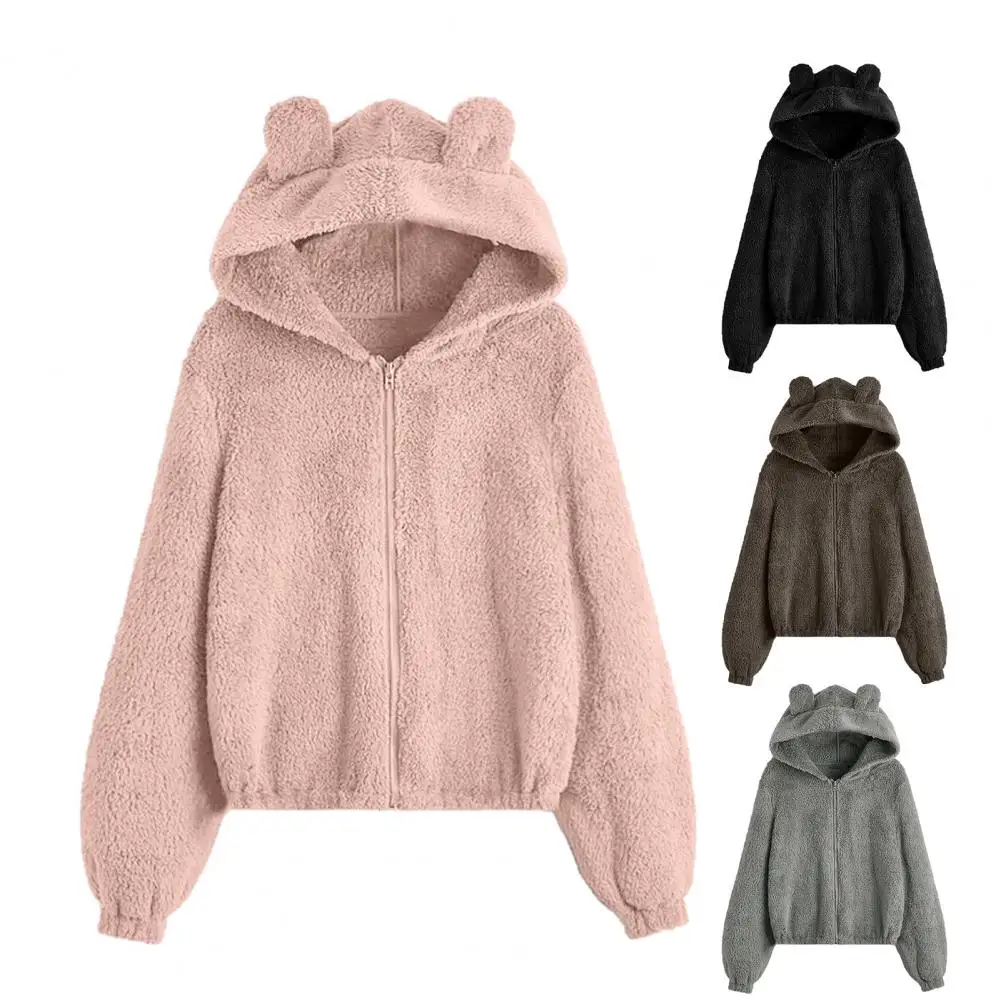 Cappotto da donna con cerniera con cappuccio Orecchie Decor Vestibilità ampia Fuzzy Antifreddo Maniche lunghe Autunno Inverno Giacca termica da donna per il viaggio