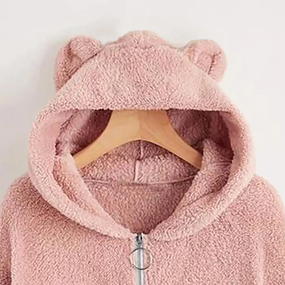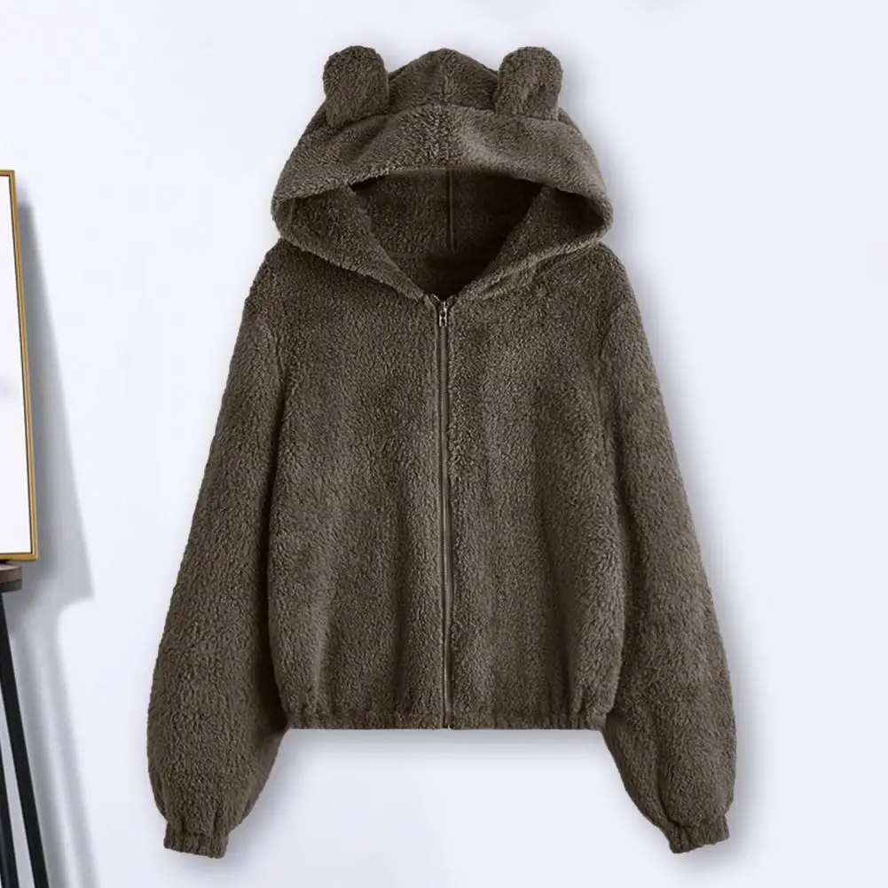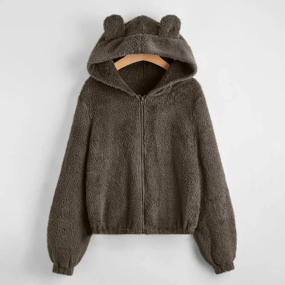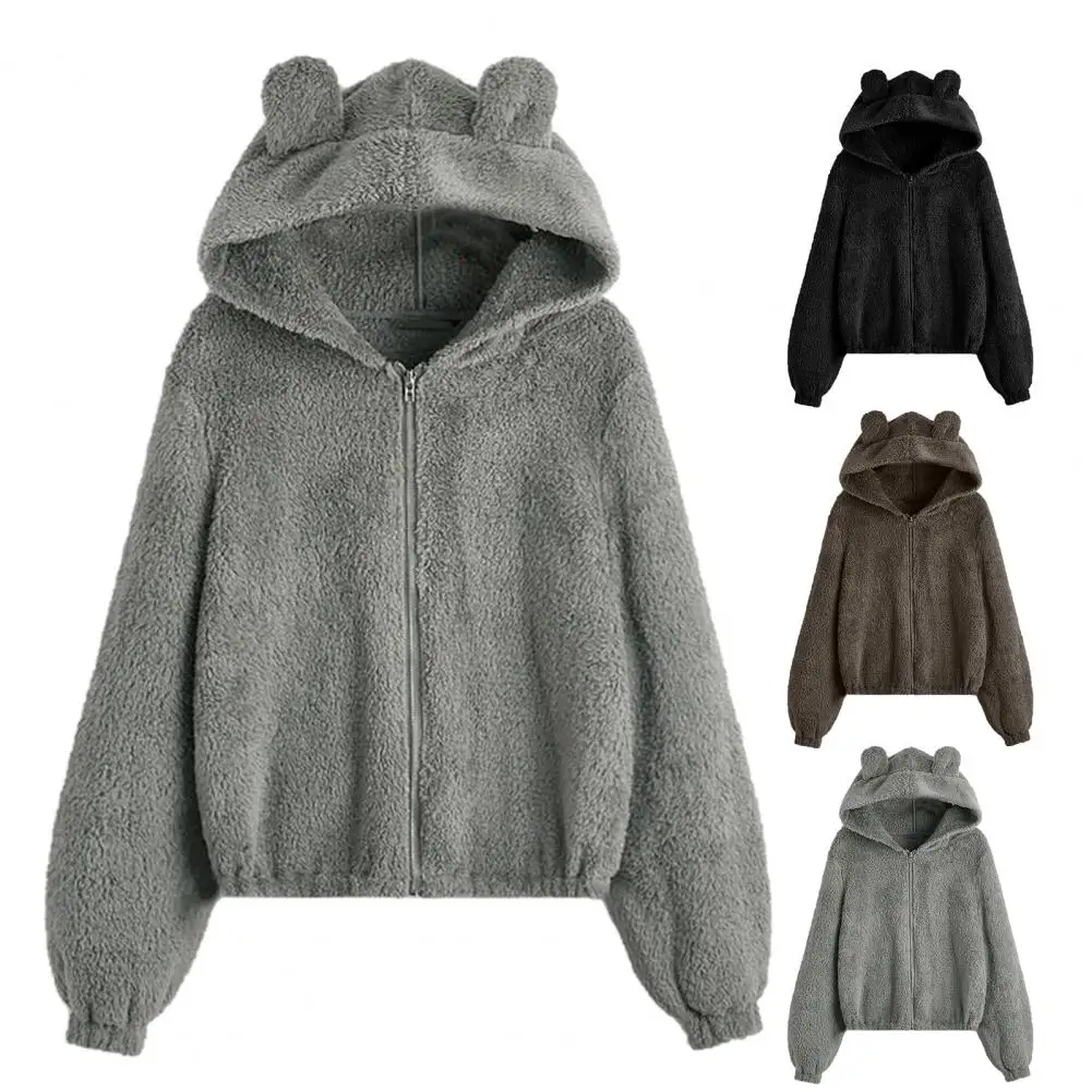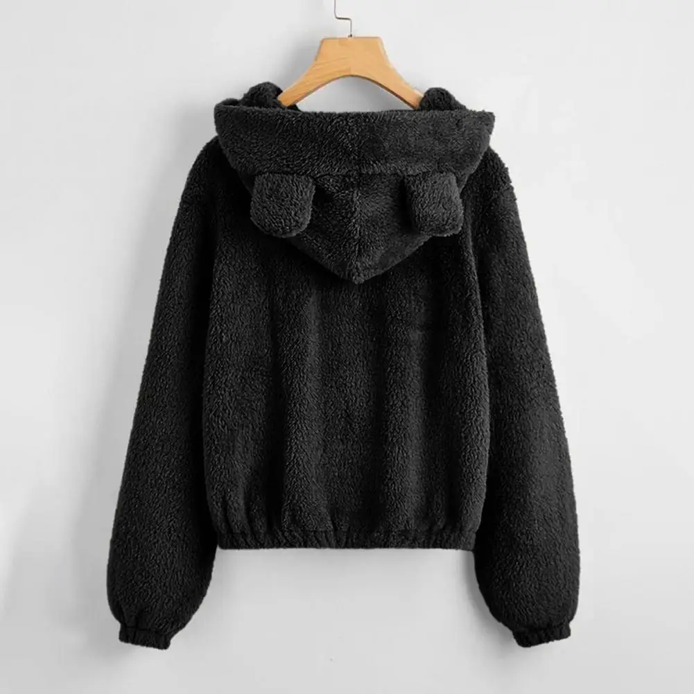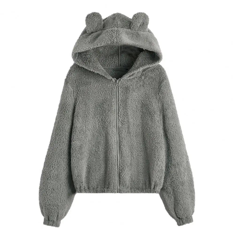 Cappotto da donna con cerniera con cappuccio Orecchie Decor Vestibilità ampia Fuzzy Antifreddo Maniche lunghe Autunno Inverno Giacca termica da donna per il viaggio