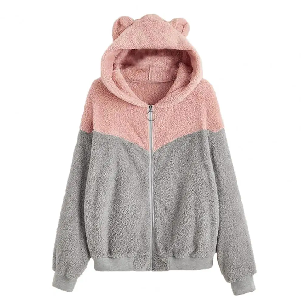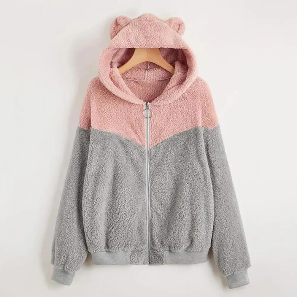 Con colore a contrasto, decorazioni per orecchie carine e design con cappuccio, questo cappotto può farti giovani ed energetici e facilmente fuori dalla folla.