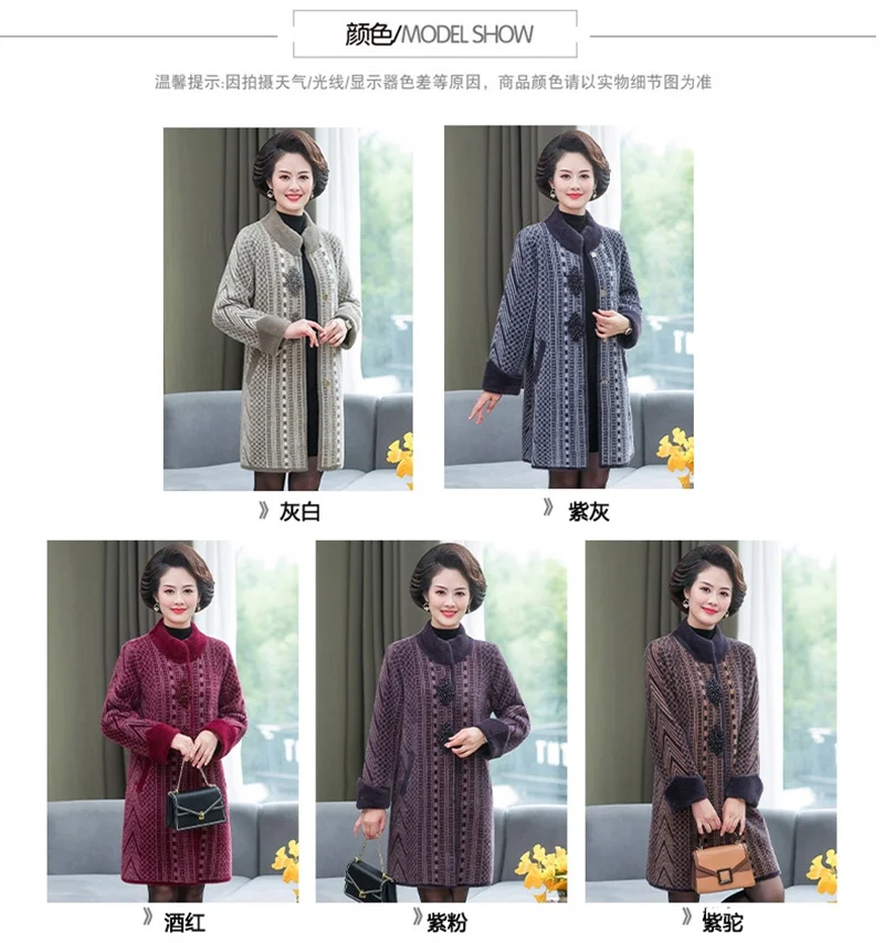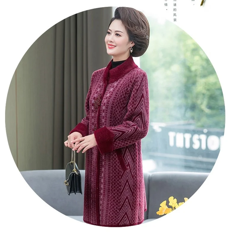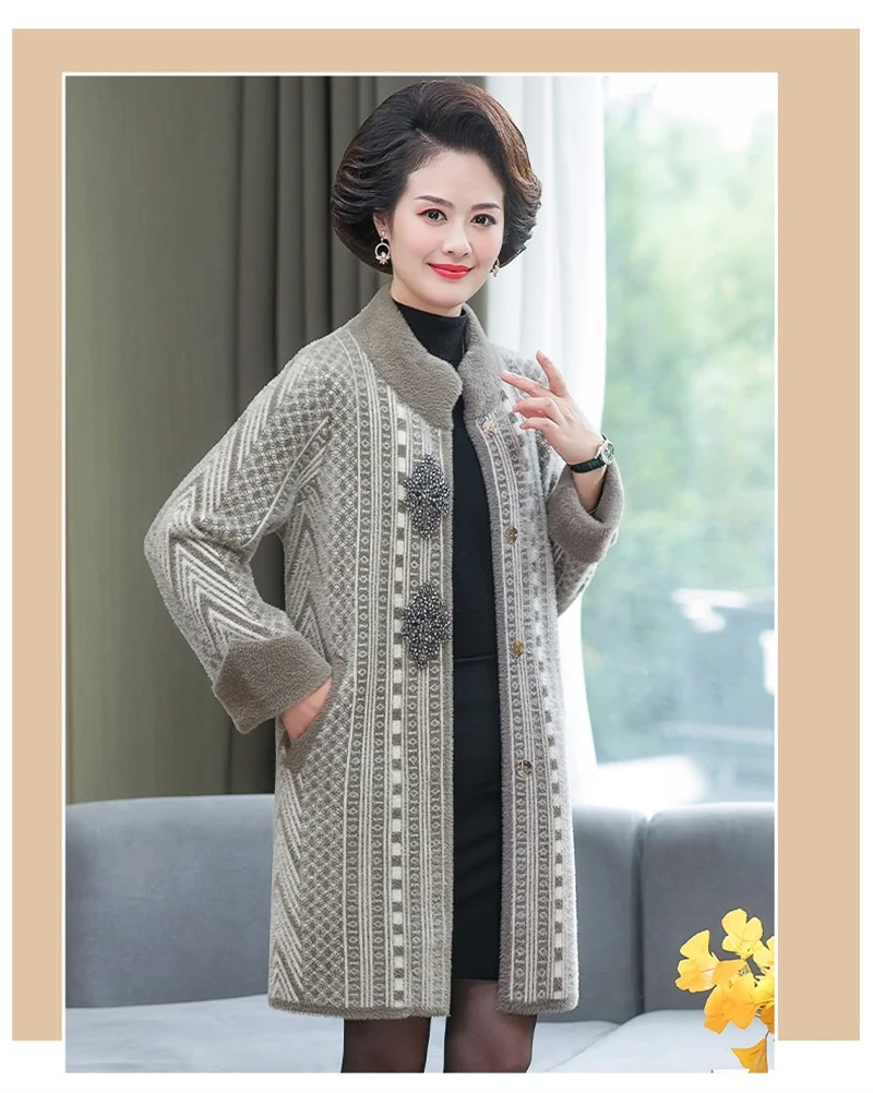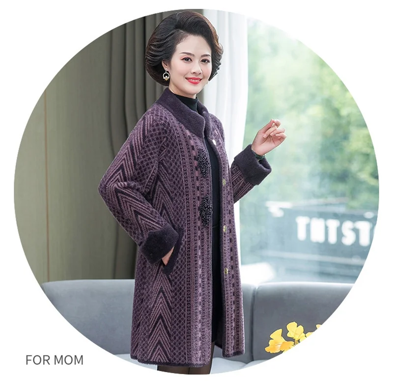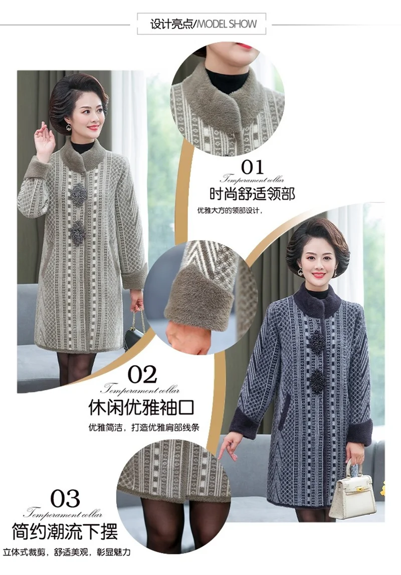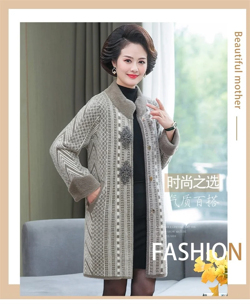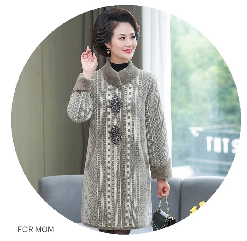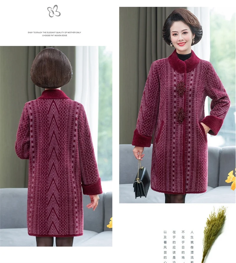 Cappotto da donna di mezza età e anziano Cappotto lungo e casual da madre nobile Autunno e inverno Elegante cappotto di lana Imitazione pelliccia di visone WLF