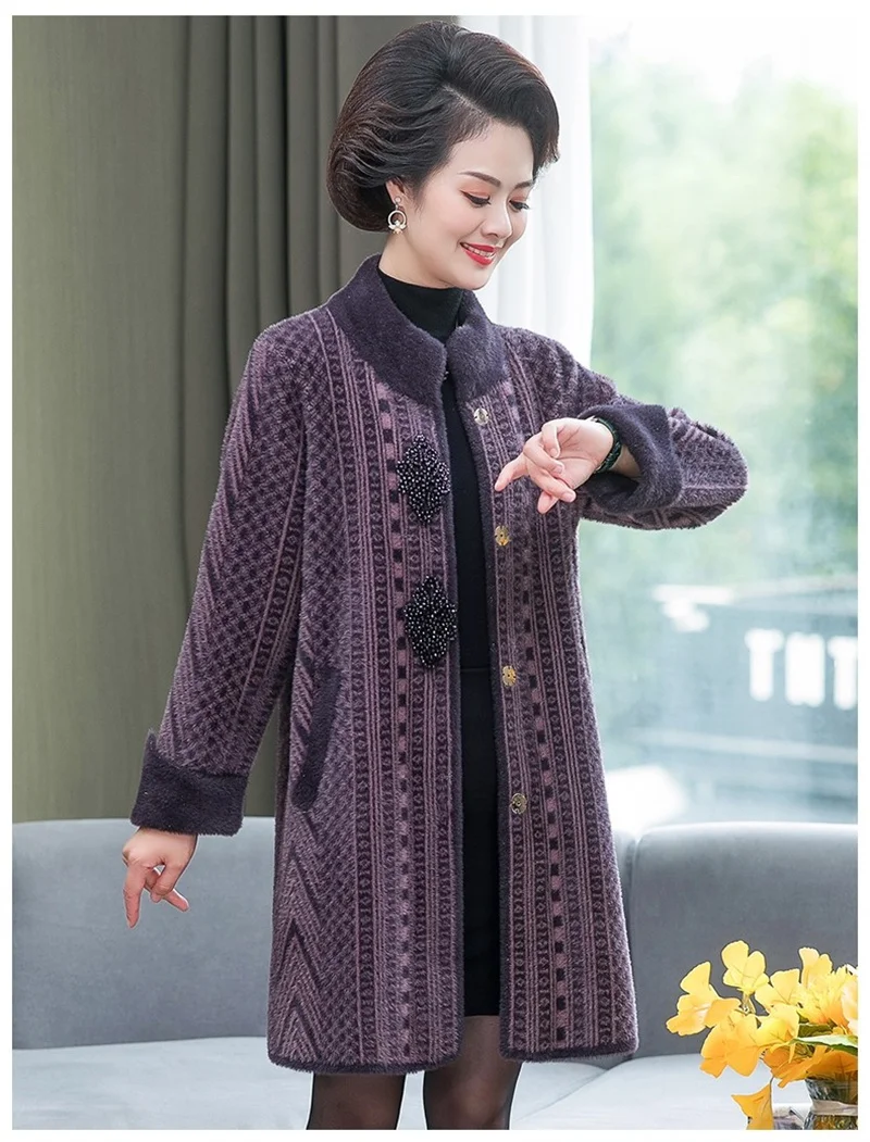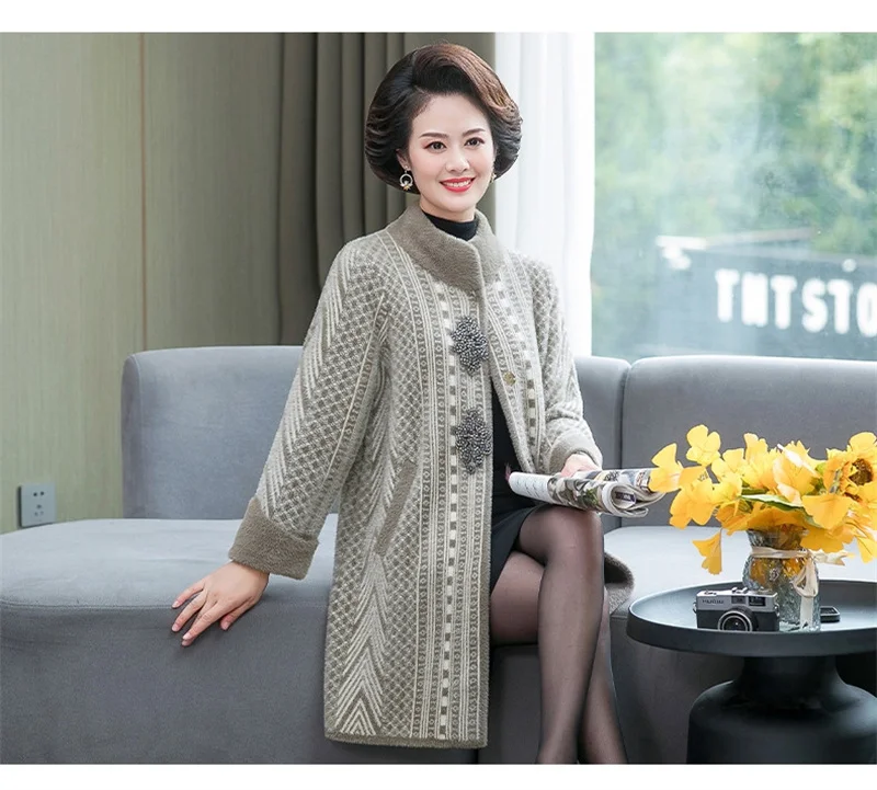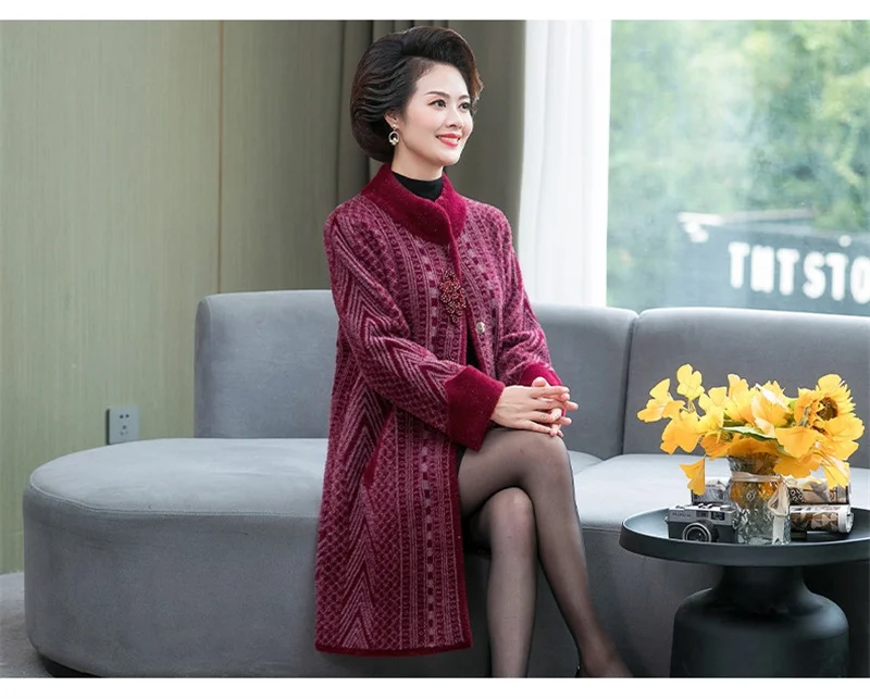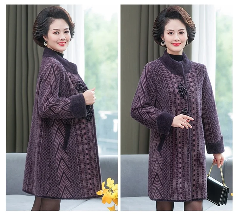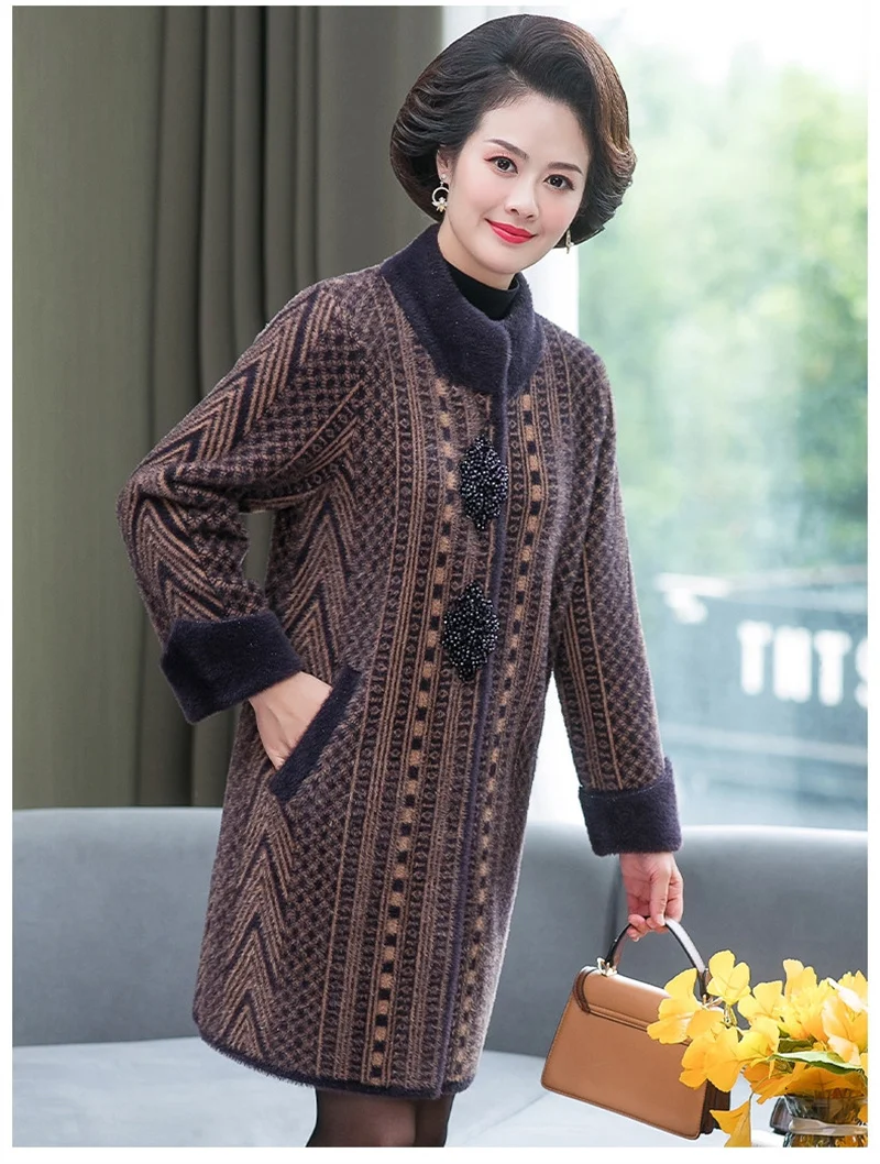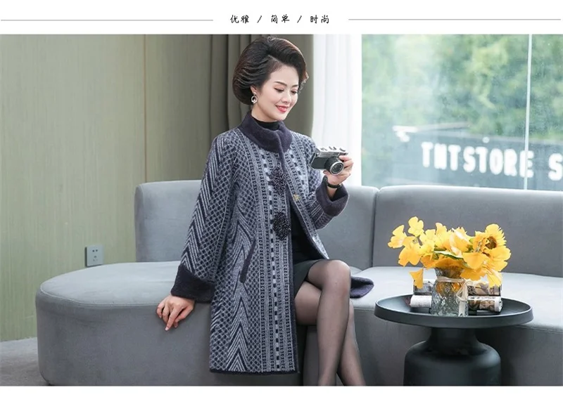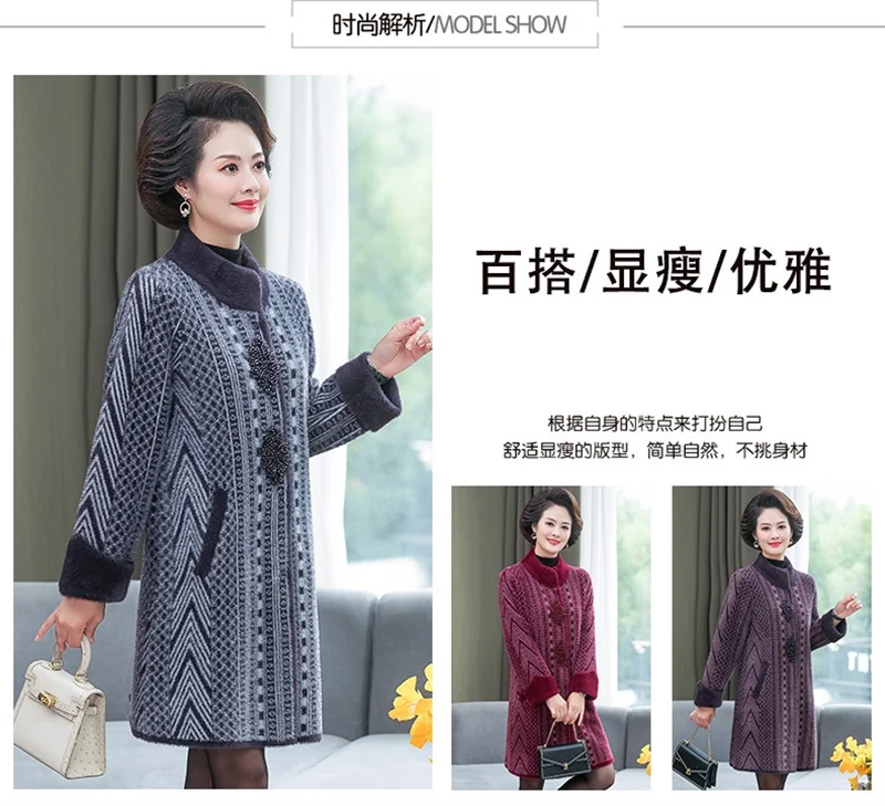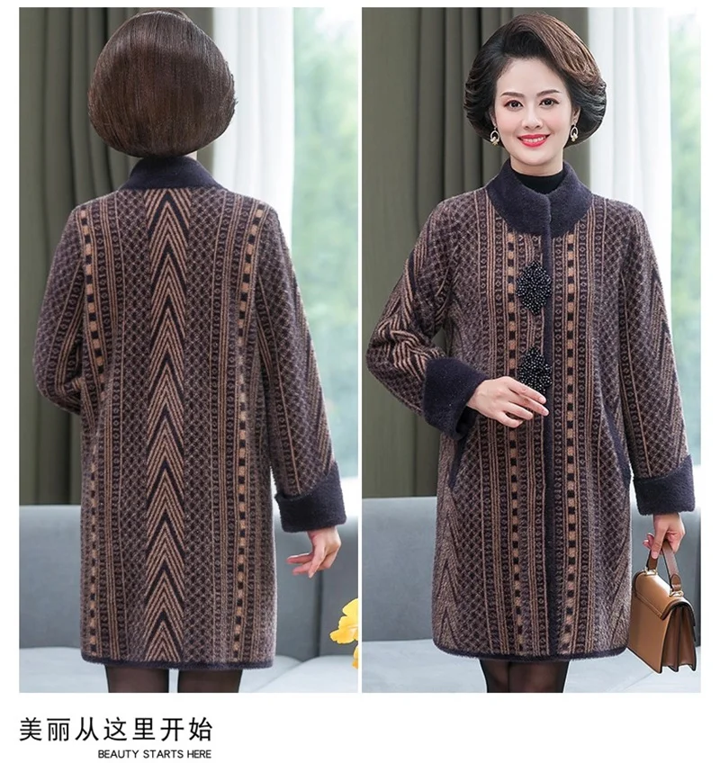 Cappotto da donna di mezza età e anziano Cappotto lungo e casual da madre nobile Autunno e inverno Elegante cappotto di lana Imitazione pelliccia di visone WLF