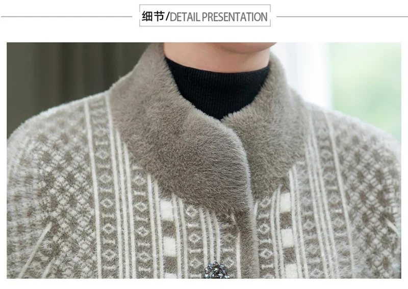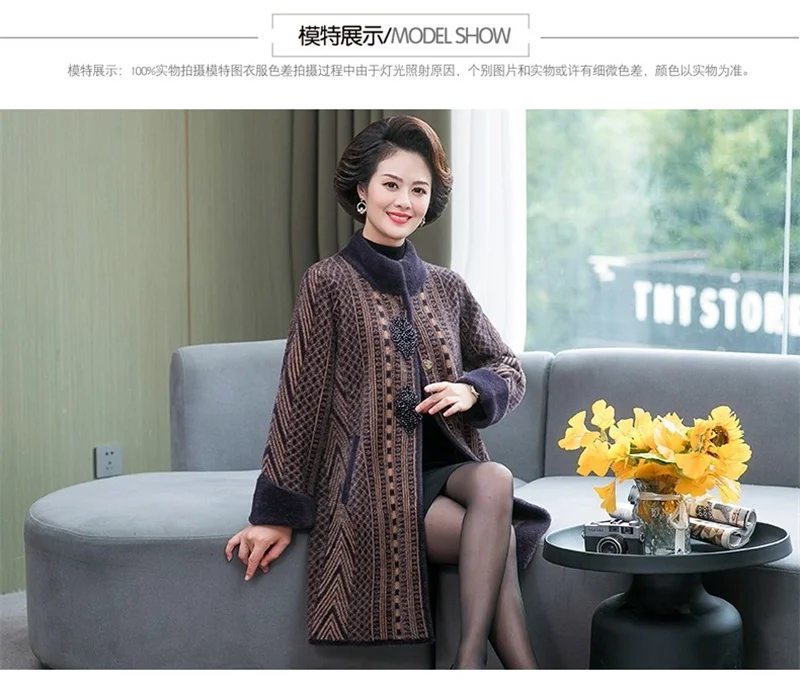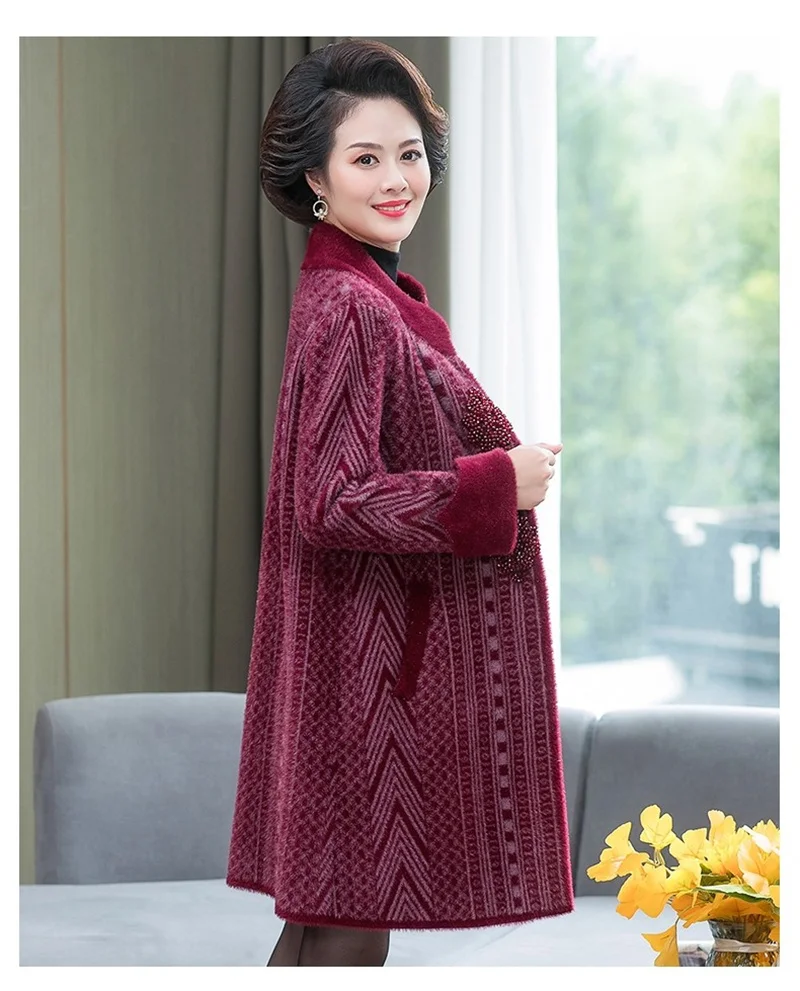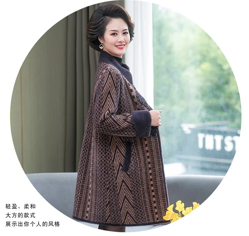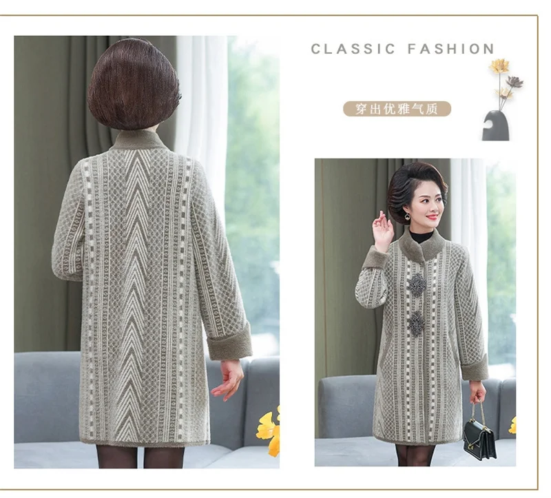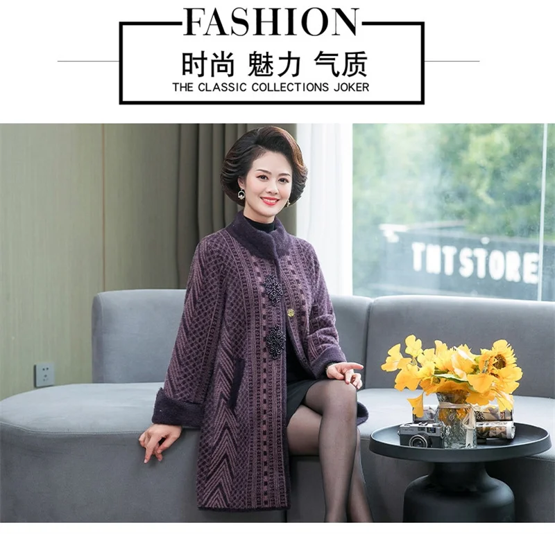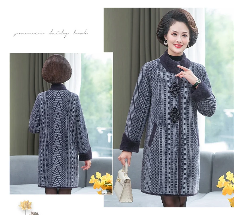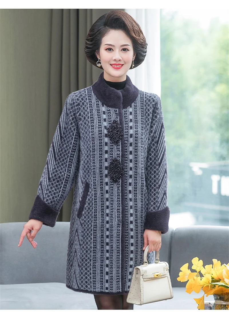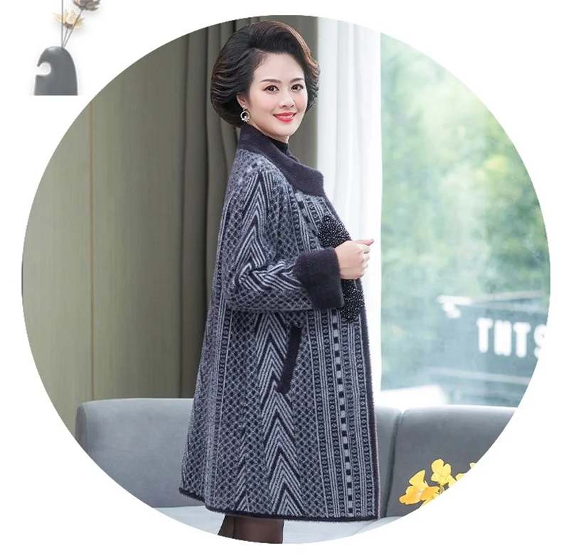 Cappotto da donna di mezza età e anziano Cappotto lungo e casual da madre nobile Autunno e inverno Elegante cappotto di lana Imitazione pelliccia di visone WLF