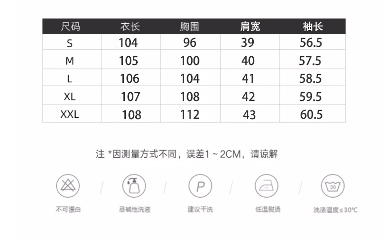 *Strumenti di lavaggio: lavaggio marittimo caldo; non sbiancato; non ribaltare asciutto; la temperatura della piastra inferiore non è più elevata110°Pulizia a secco CEase;-Solo stiratura inversa; Rivestimento in tessuto caldo