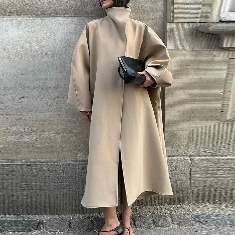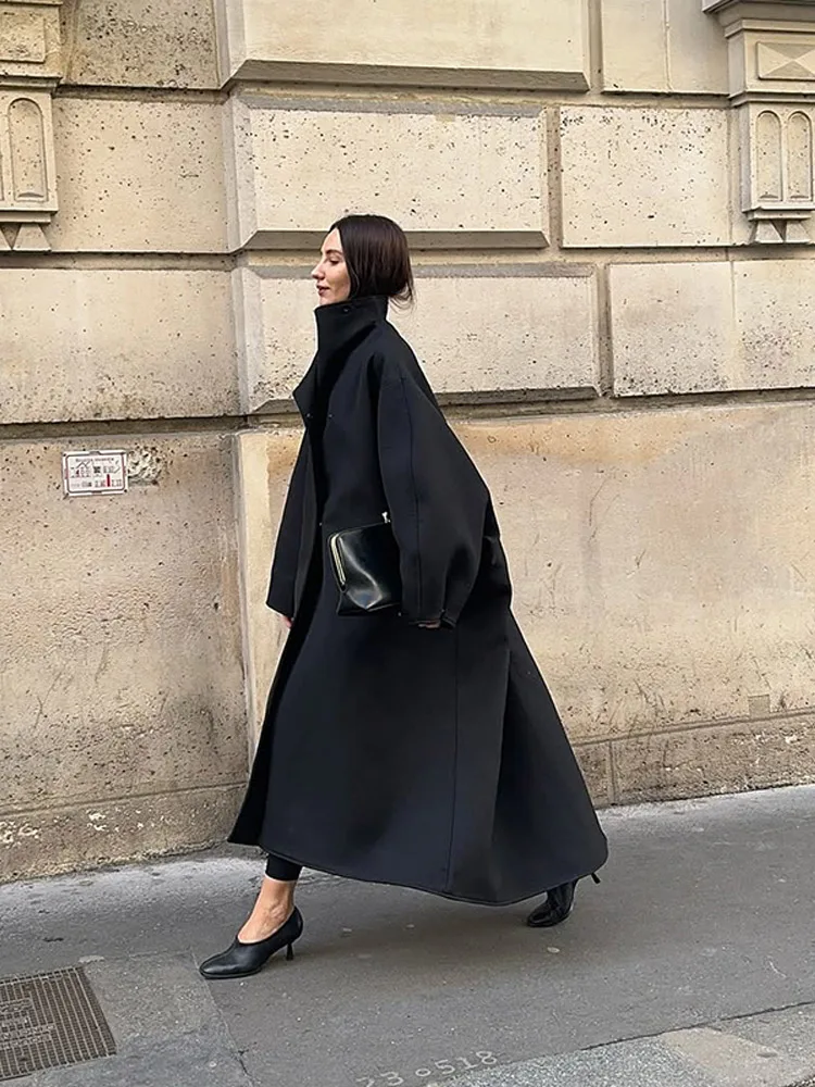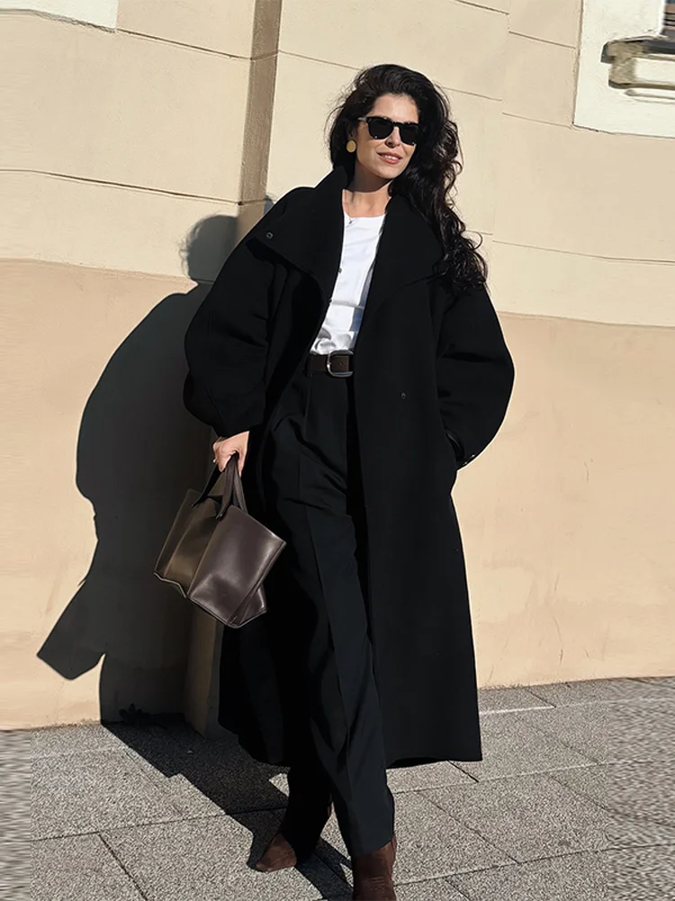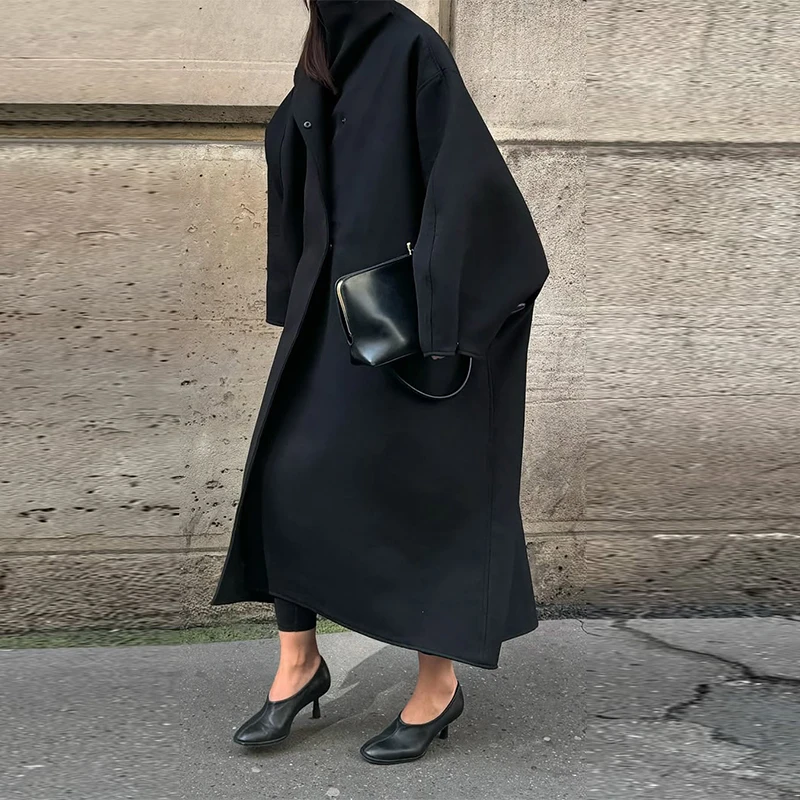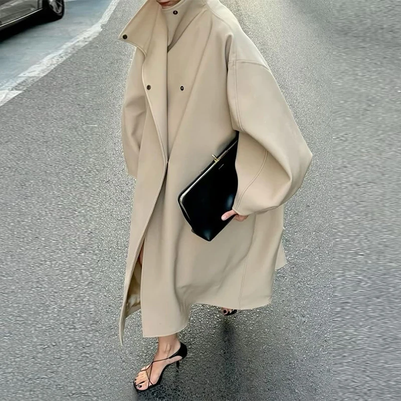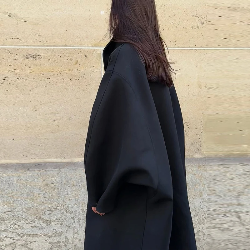 Giacca lunga elegante da donna in finta pelle scamosciata Colletto alla coreana Manica a pipistrello Cappotto solido Capispalla 2025 Autunno Inverno Donna Streetwear