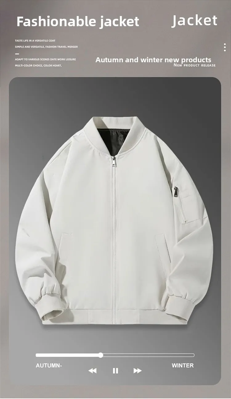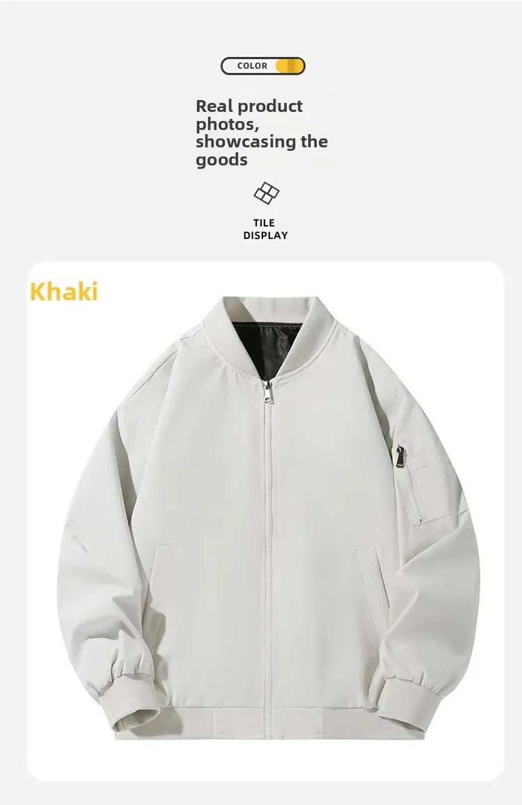 Cappotto da giacca con colletto da baseball da uomo Giacca a vento leggera impermeabile per vestibilità ampia da esterno Tinta unita Primavera Autunno Zip Up