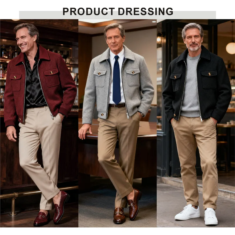 Tessuto di lana selezionato, resistente alle rughe e di facile manutenzione, caldo ed elegante da indossare in autunno e inverno