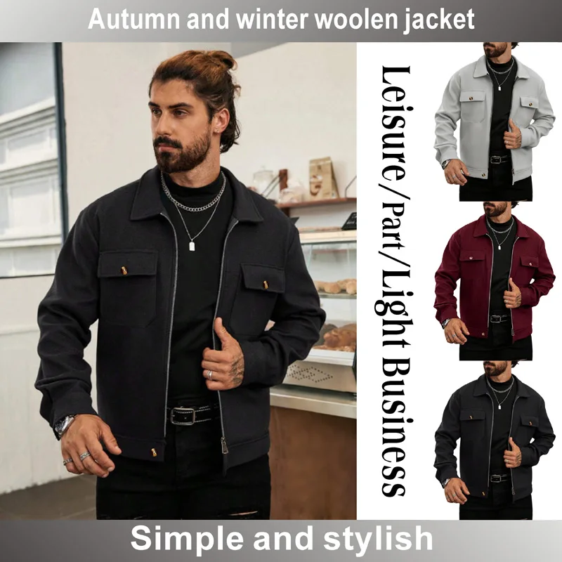 Cappotto da uomo con zip in misto lana Colletto invernale caldo con risvolto Slim Fit Capispalla da lavoro casual Giacca multitasche retrò TAGLIA europea 1Cappotto da uomo con zip in misto lana Colletto invernale caldo con risvolto Slim Fit Capispalla da lavoro casual Giacca multitasche retrò TAGLIA europea