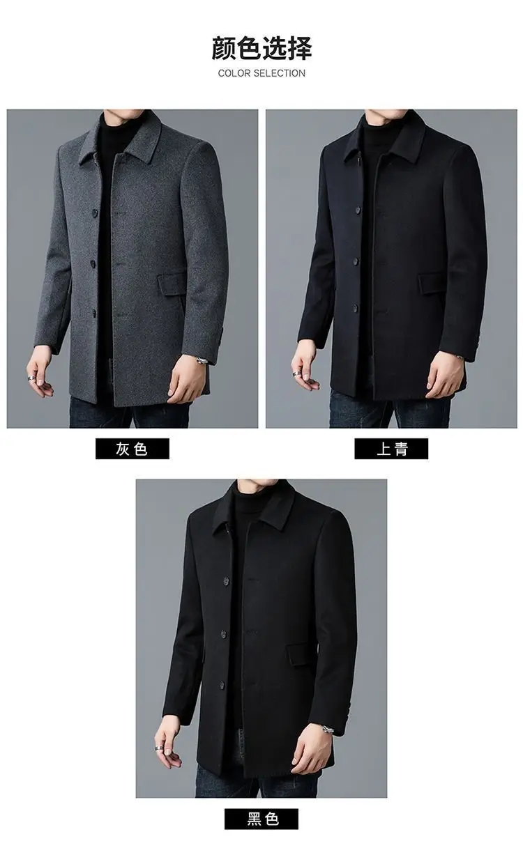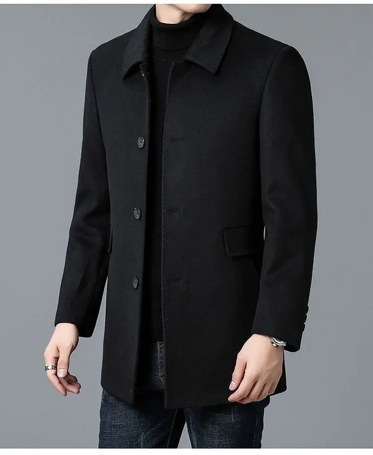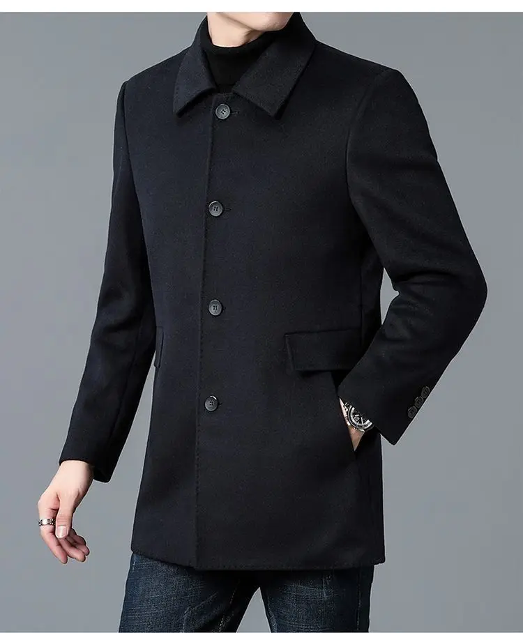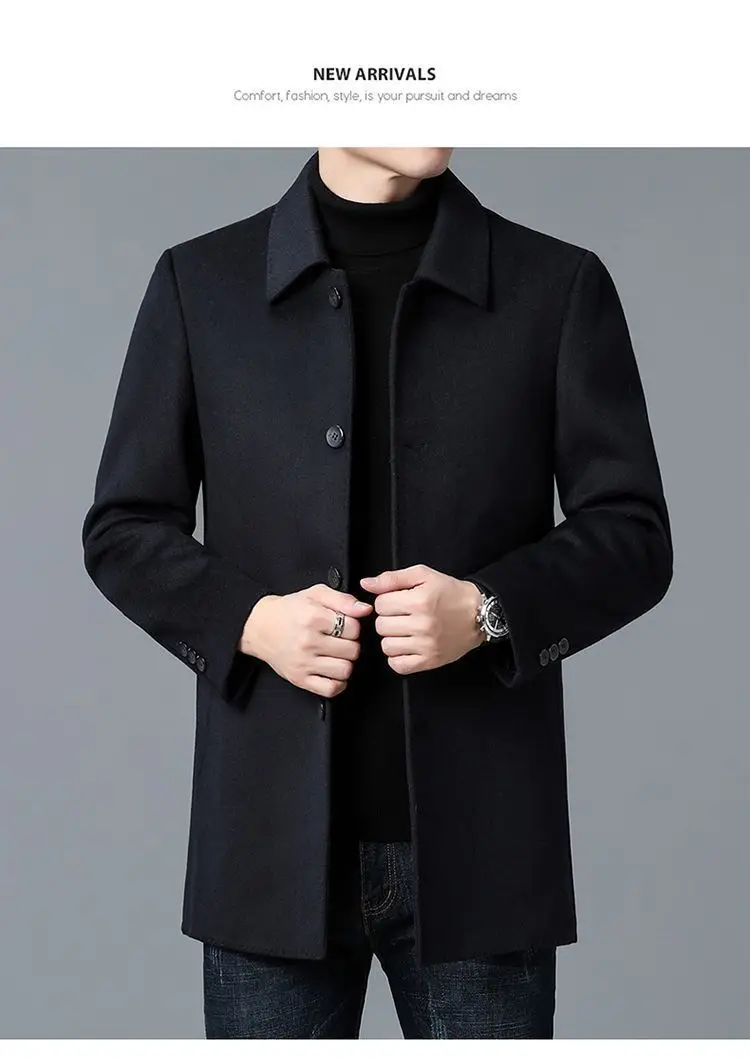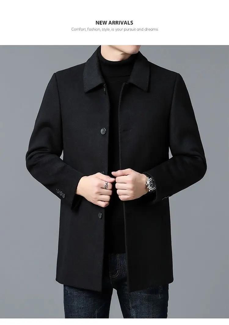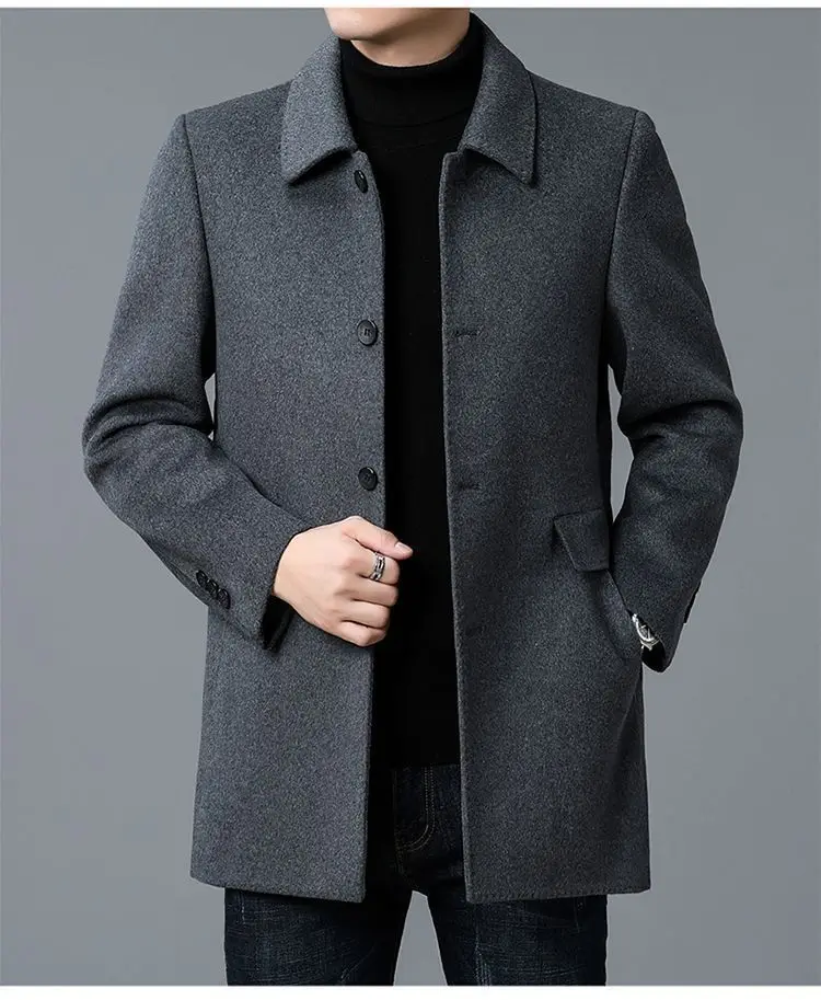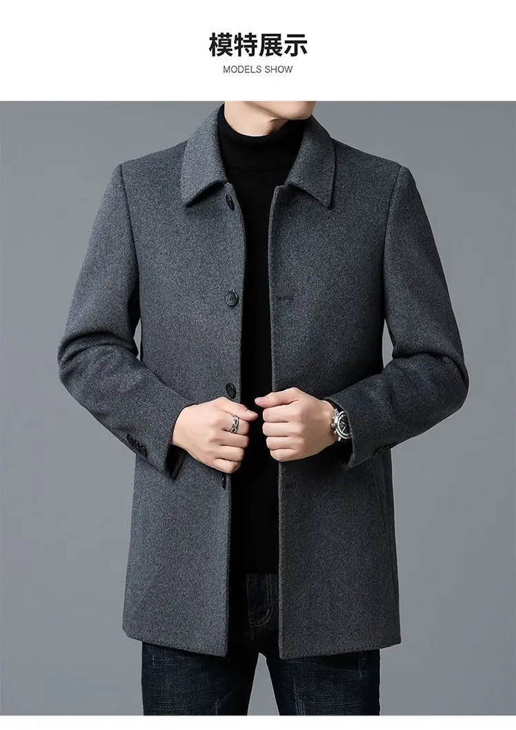 Cappotto da uomo Giacca invernale in lana con risvolto in tweed a doppia faccia di media lunghezza