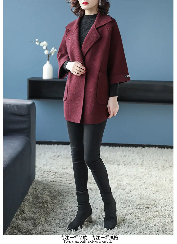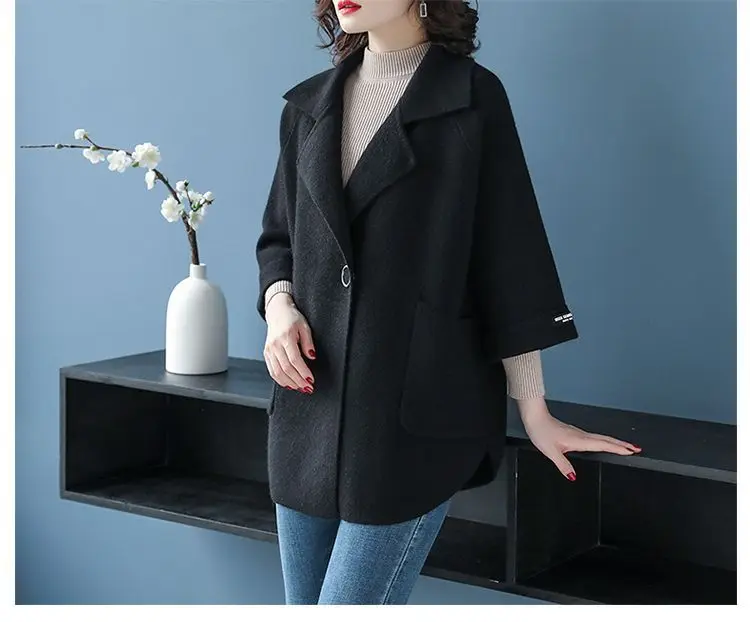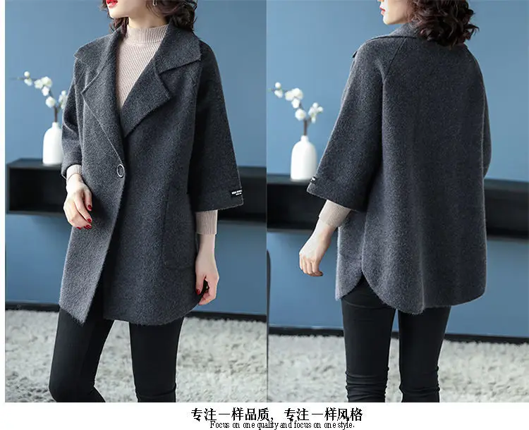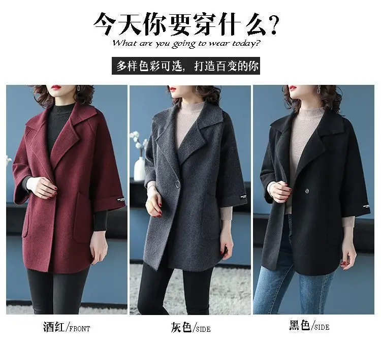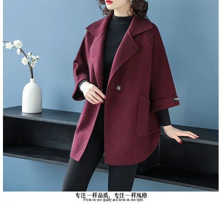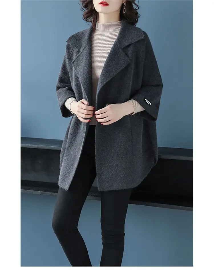 Cappotto di fascia alta in lana per giacca ampia da donna con maniche a 7 quarti di media lunghezza taglie forti