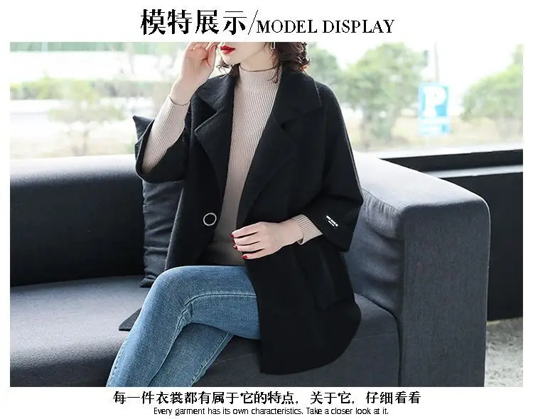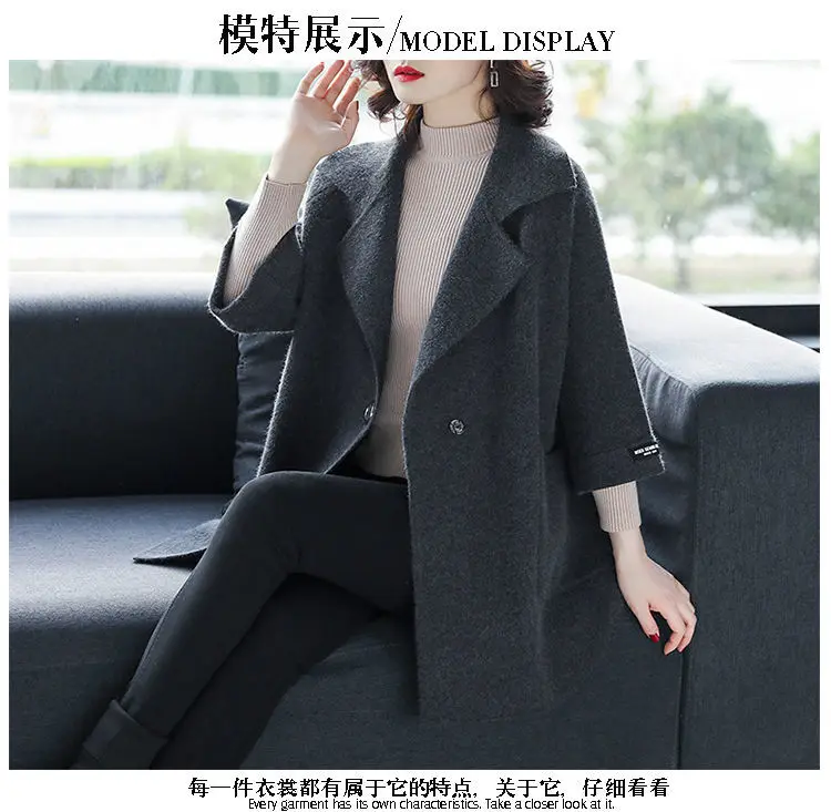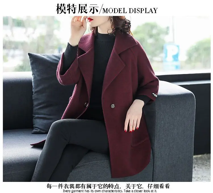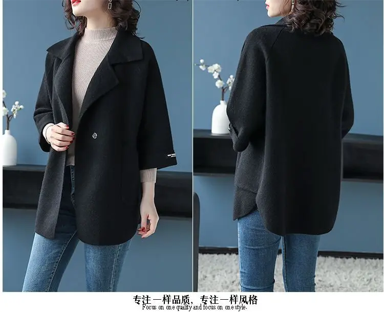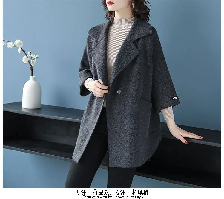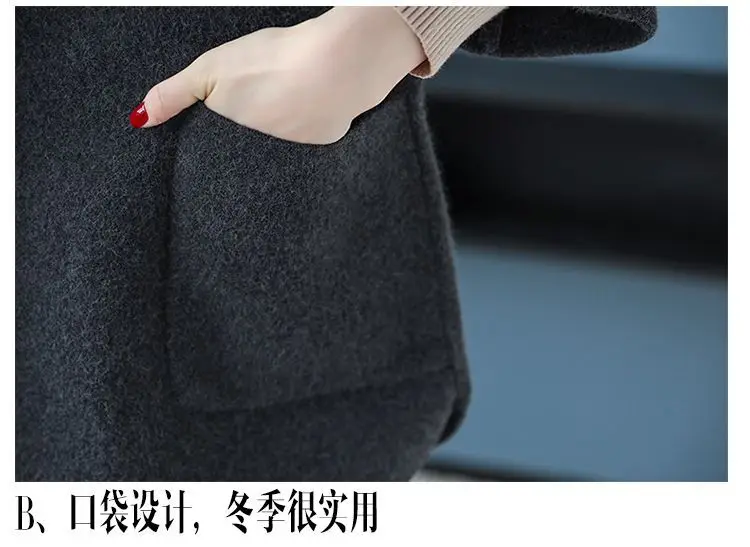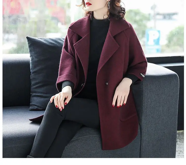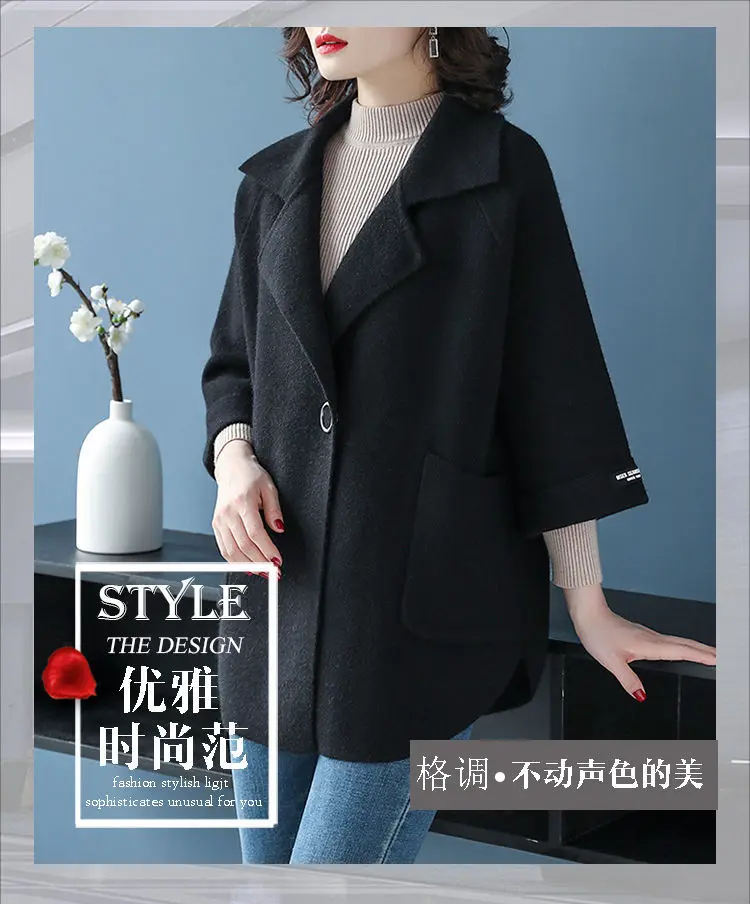Cappotto di fascia alta in lana per giacca ampia da donna con maniche a 7 quarti di media lunghezza taglie forti