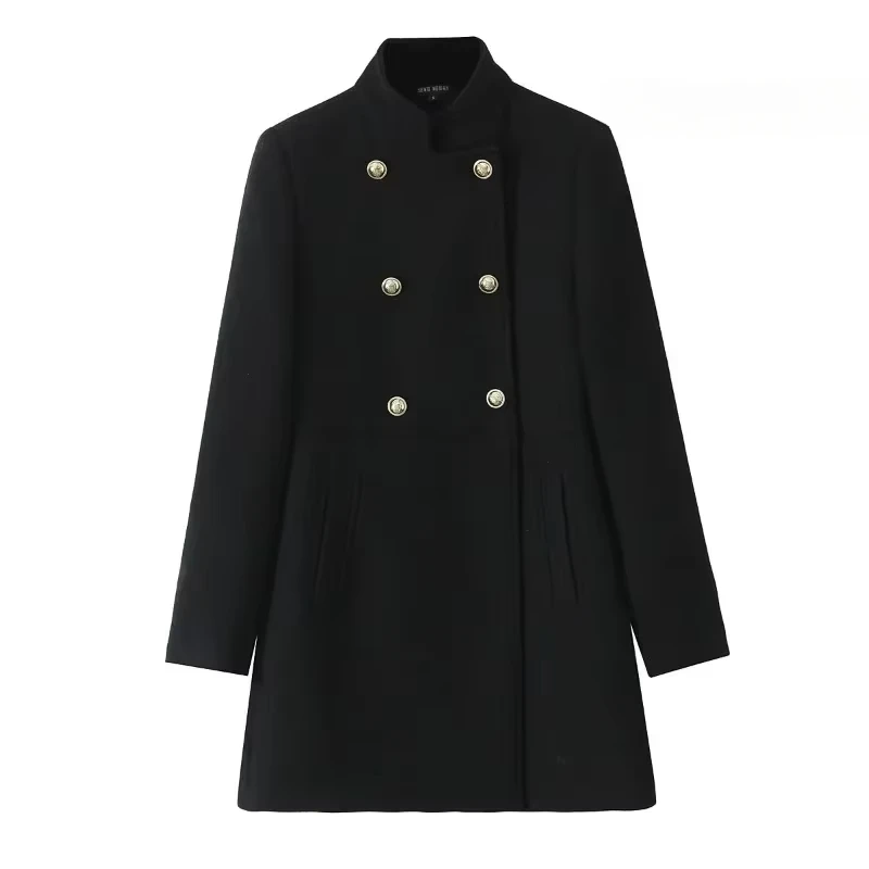 Cappotto di lana Cappotto lungo nero moda autunnale Cappotti da donna eleganti e graziosi Capispalla autunnale retrò americano Cappotti urbani