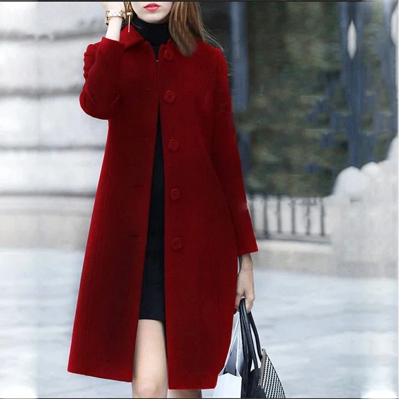 Cappotto di lana con bottoni solidi britannici di nuova moda Giacche a maniche lunghe da donna Donna Elegante abito slim tascabile Mujer