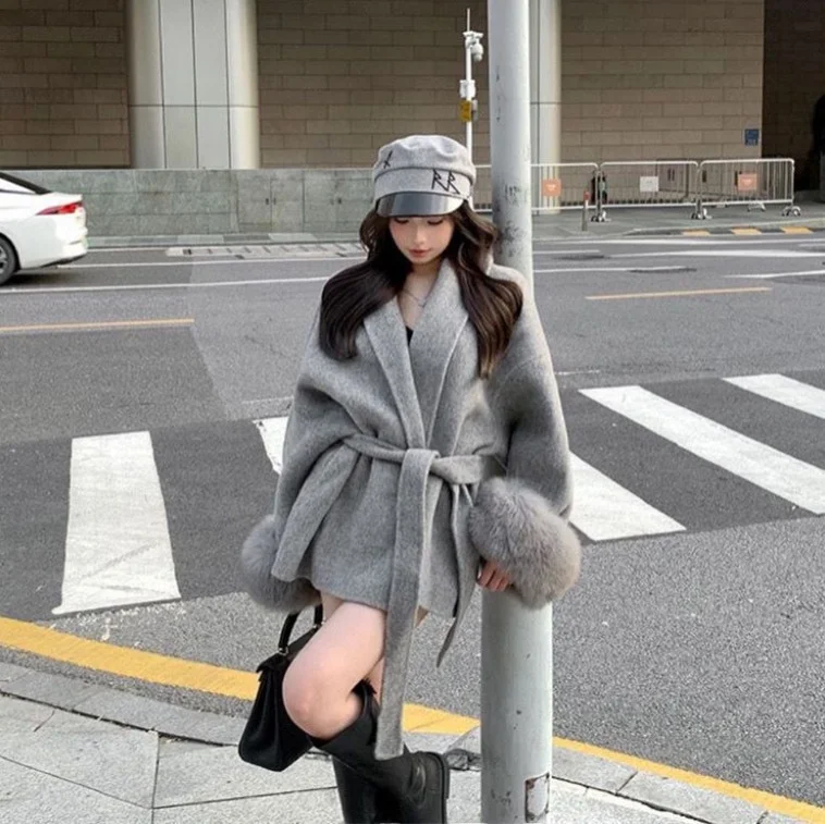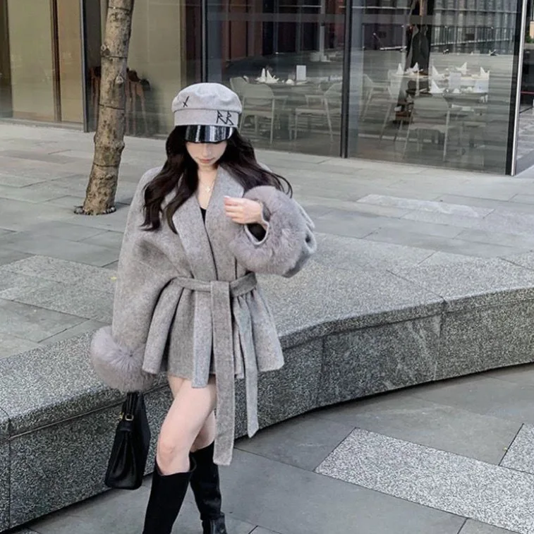 Il colore grigio e il design con scollo a V rendono questo cappotto un’aggiunta versatile a qualsiasi guardaroba, adatta a varie occasioni.