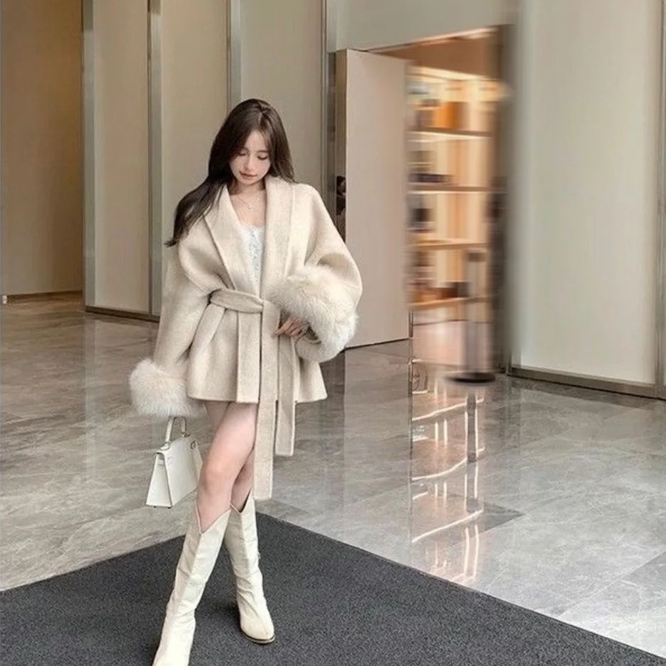 Caratterizzato da un sofisticato design con cintura e un taglio di media lunghezza, questo cappotto emana un’aria di eleganza e raffinatezza.