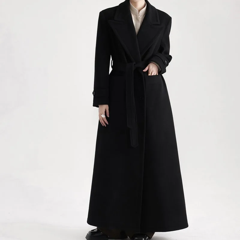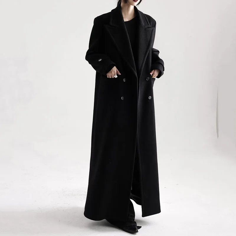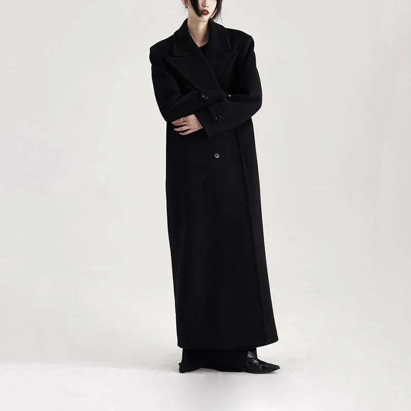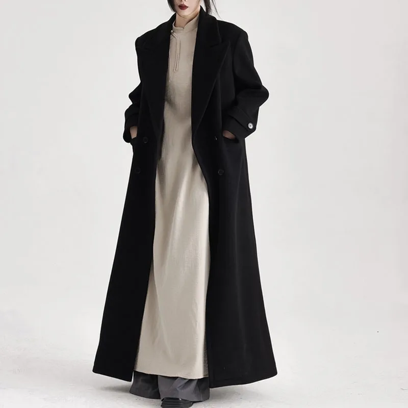Cappotto di lana da donna autunno inverno 2025 Nuovo stile Nero Cappotto di lana allentato ispessito di alta qualità Cappotto di lana da donna casual H645