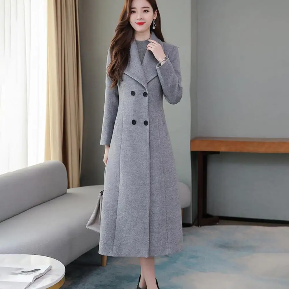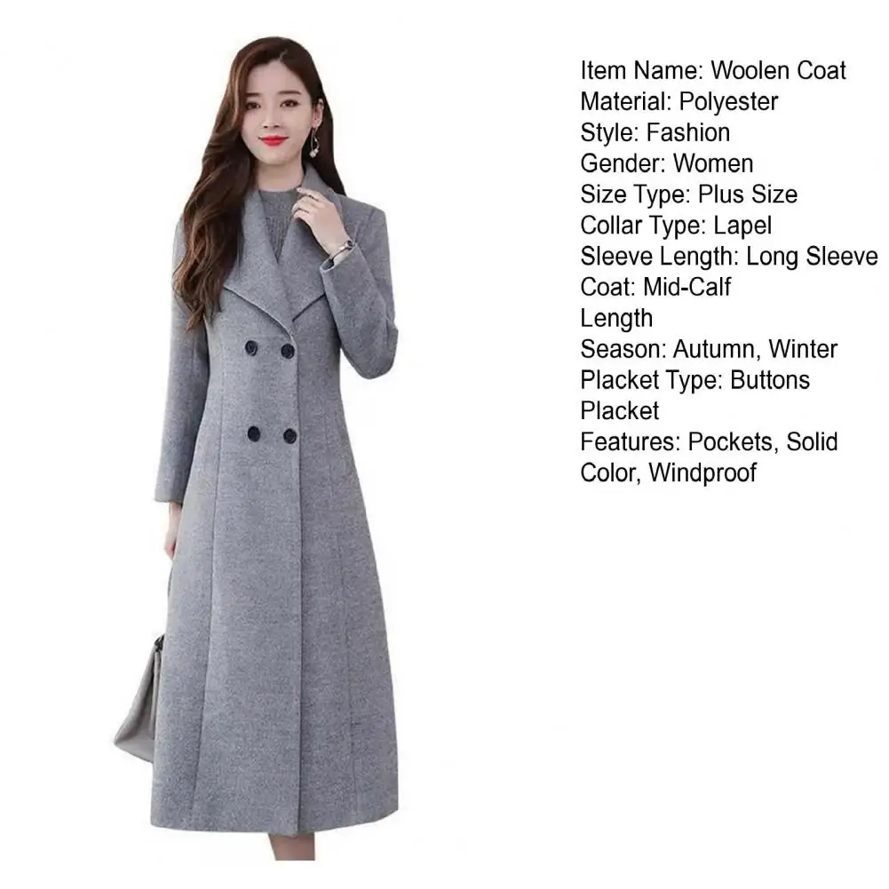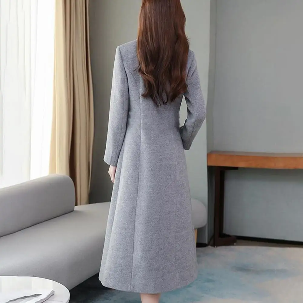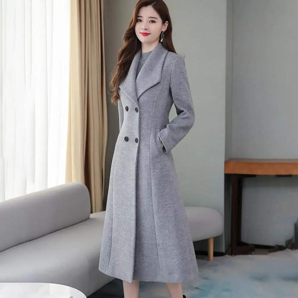 Cappotto di lana da donna autunno inverno bavero maniche lunghe tasche vita stretta orlo allentato bottoni abbottonatura cappotto cardigan a metà polpaccio