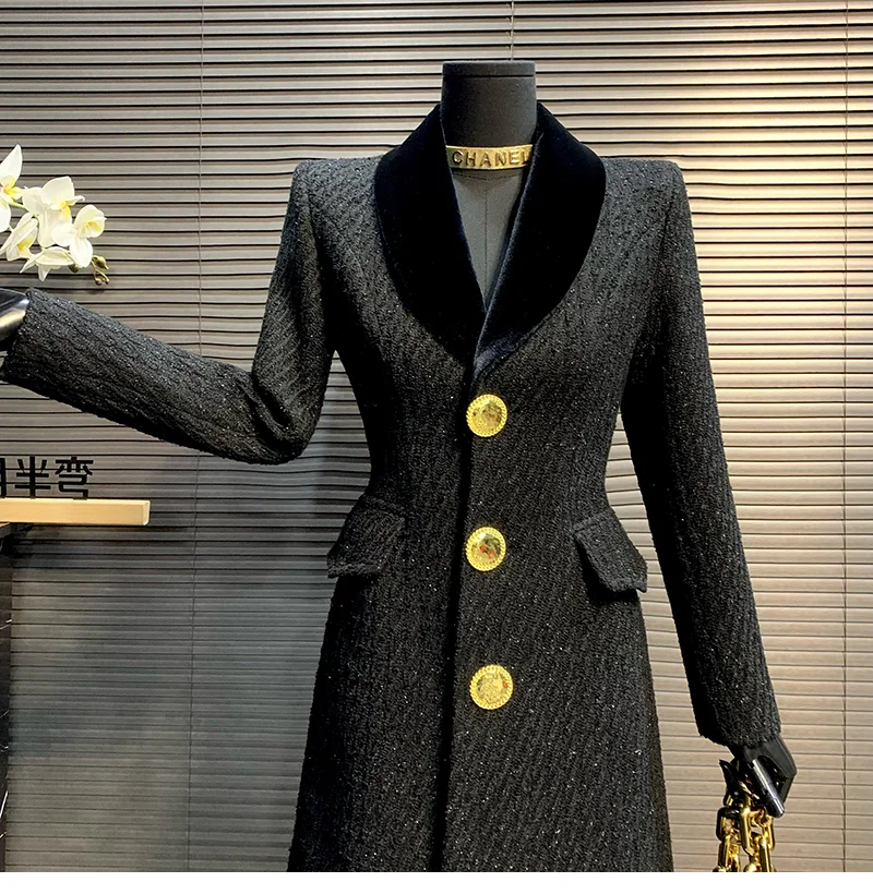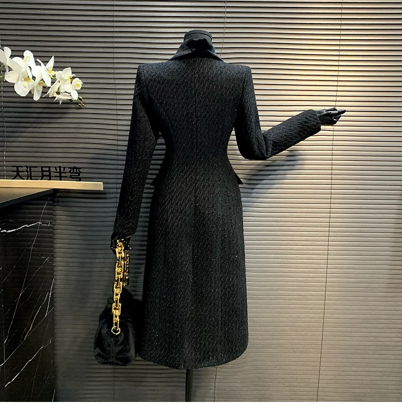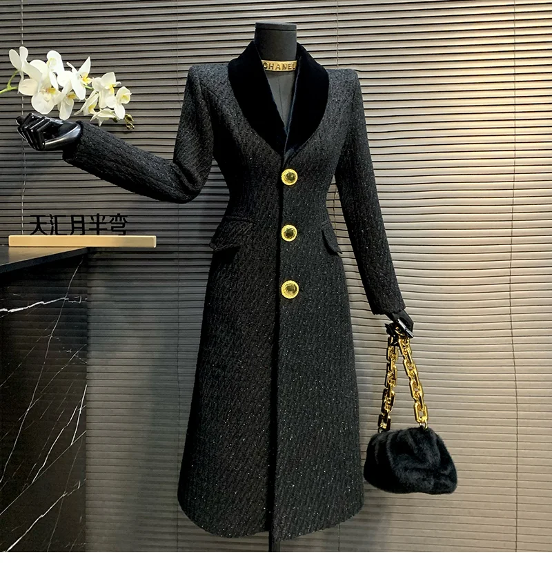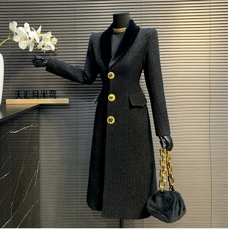 Cappotto di lana da donna di alta qualità stile coreano 2025 Nuovo cappotto di lana da donna sottile di media lunghezza autunno e inverno temperamento nero H497 1Cappotto di lana da donna di alta qualità stile coreano 2025 Nuovo cappotto di lana da donna sottile di media lunghezza autunno e inverno temperamento nero H497