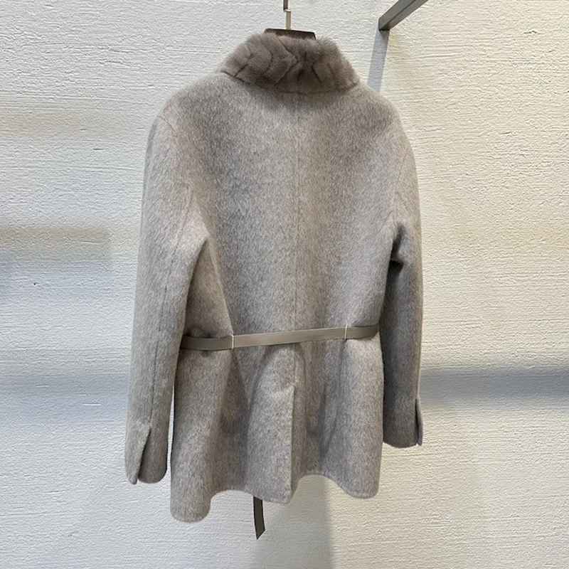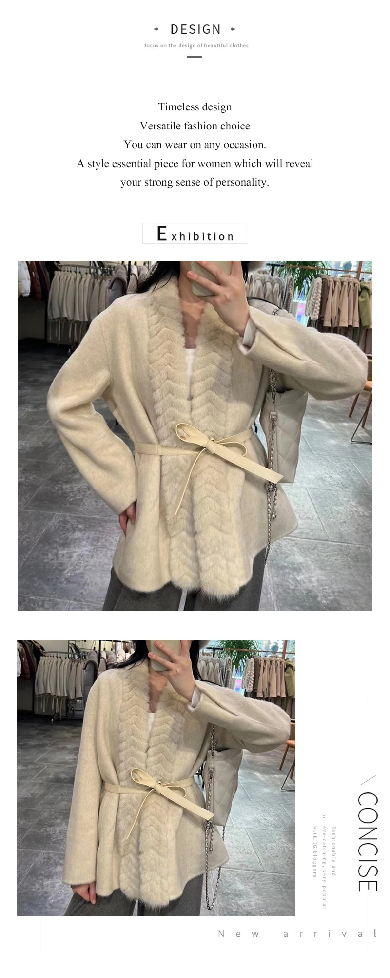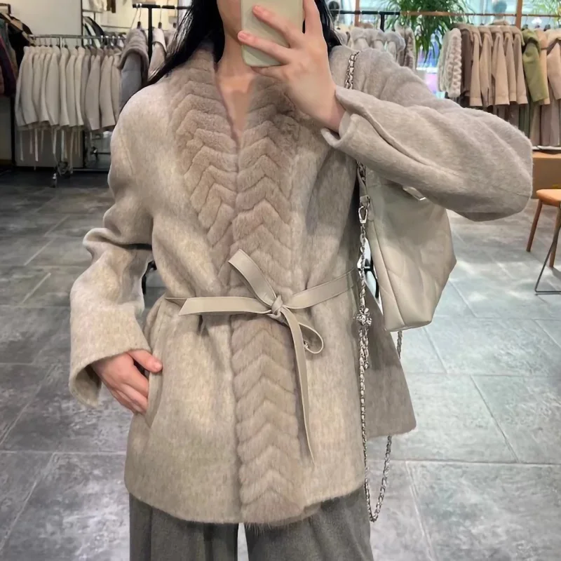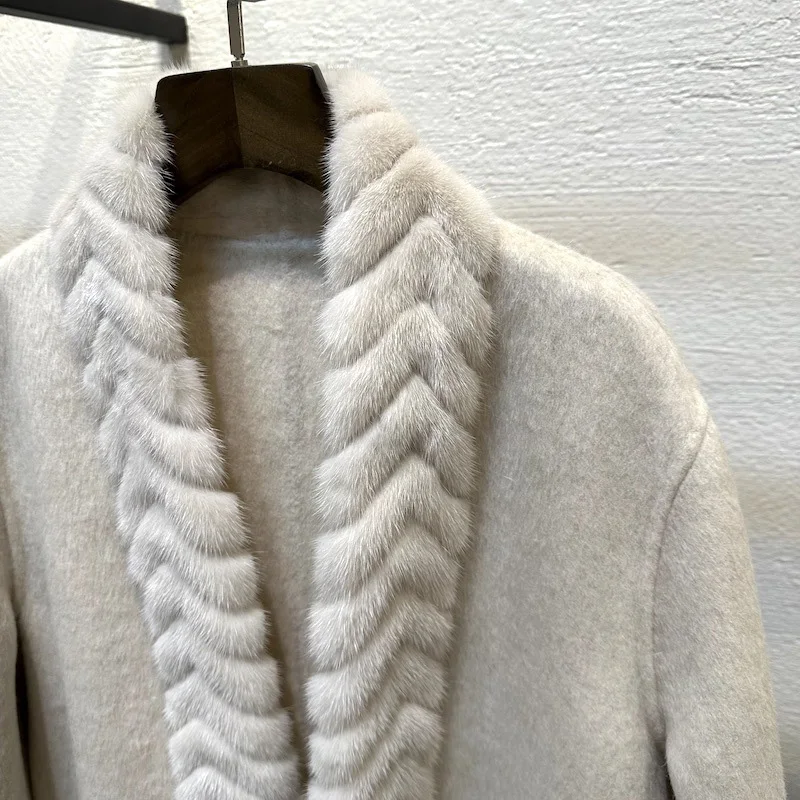 Cappotto di lana di Cashmere moda donna di media lunghezza giacche di pelliccia di visone di lusso da donna 2023 autunno inverno