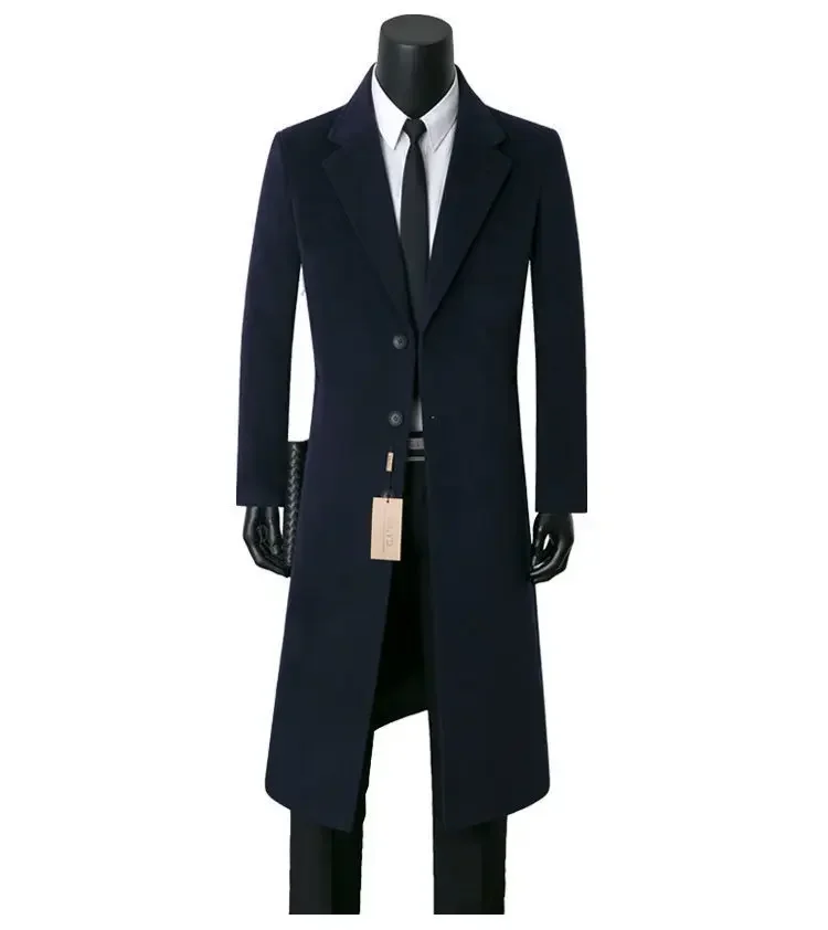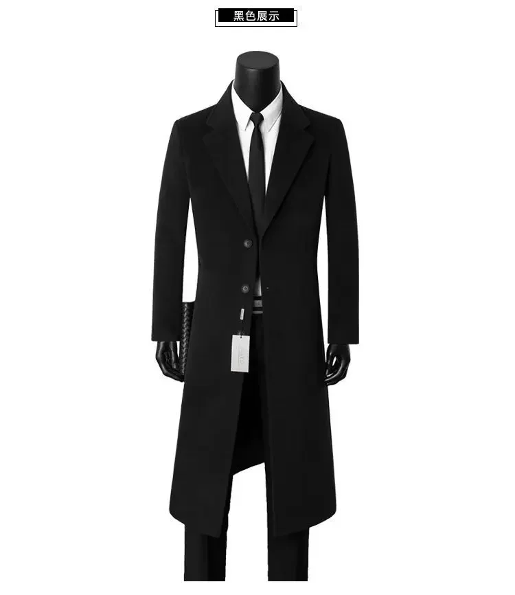 Cappotto di lana di media lunghezza da uomo, giacca a vento calda Casual da lavoro, colletto del vestito, papà, autunno, inverno