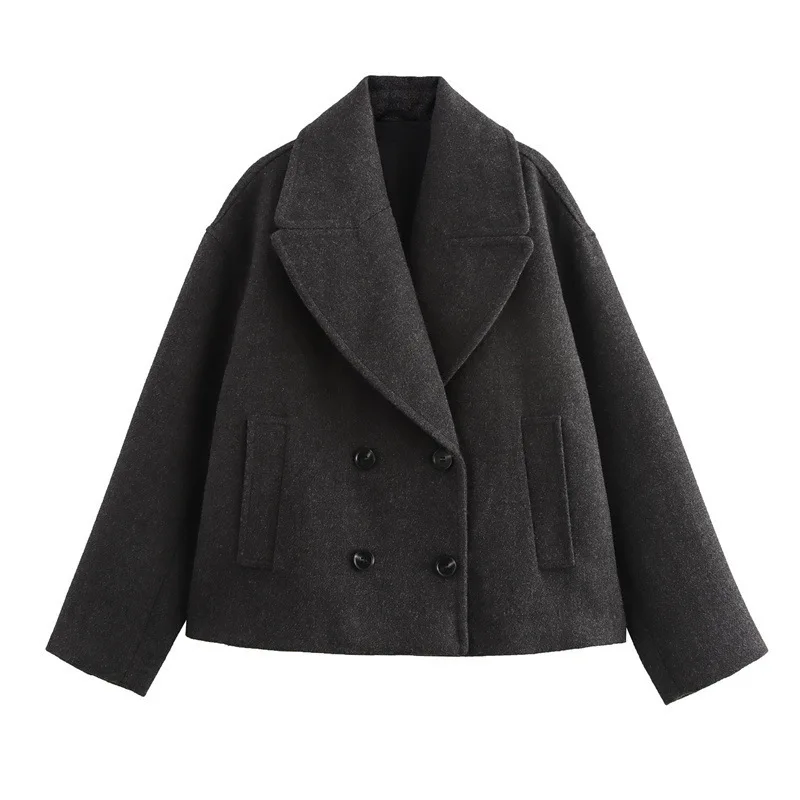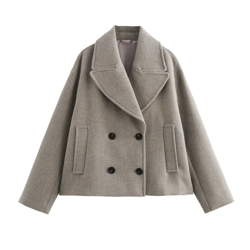 Cappotto di lana doppio petto autunno inverno da donna Elegante giacca corta a maniche lunghe Moda Lady Capispalla caldo da strada