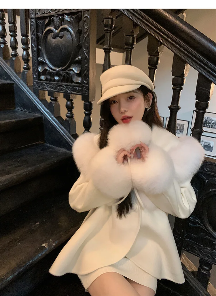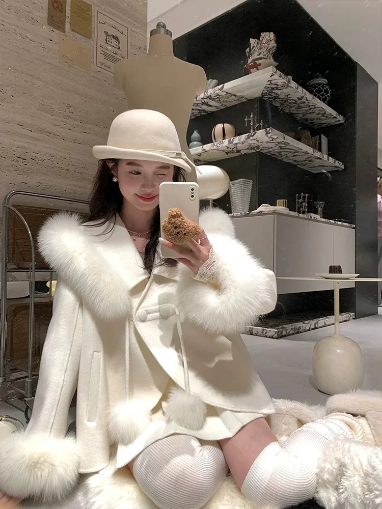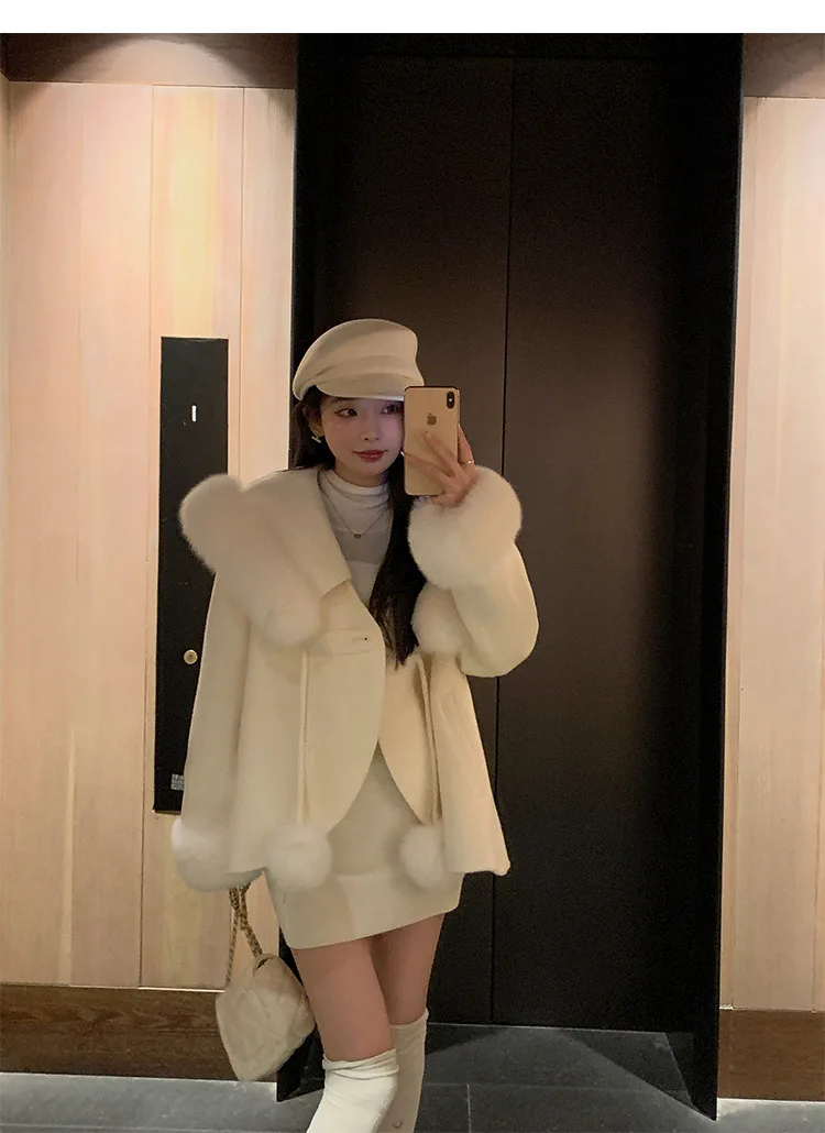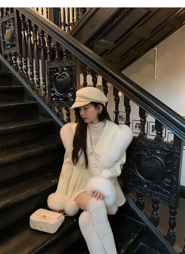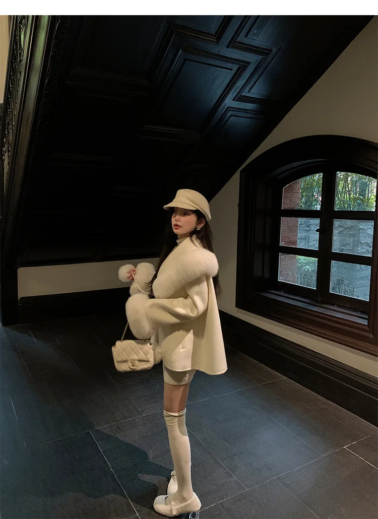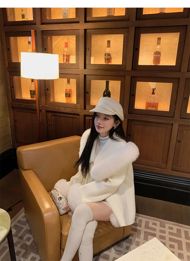 Cappotto di lana double face 2024 Autunno e inverno Nuovo stile Collo di pelliccia di volpe Cappotto di temperatura avanzata di fascia alta per le donne 1Cappotto di lana double face 2024 Autunno e inverno Nuovo stile Collo di pelliccia di volpe Cappotto di temperatura avanzata di fascia alta per le donne