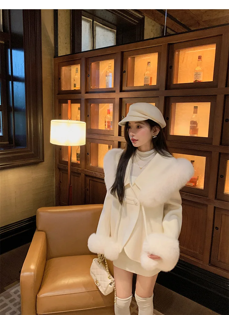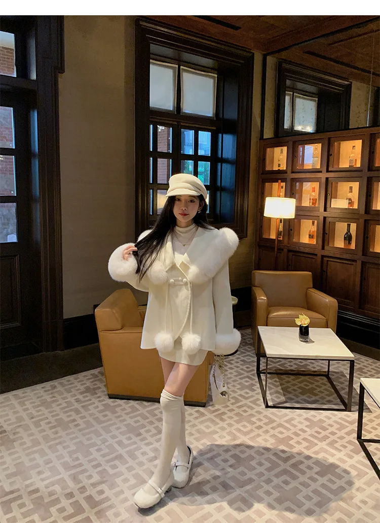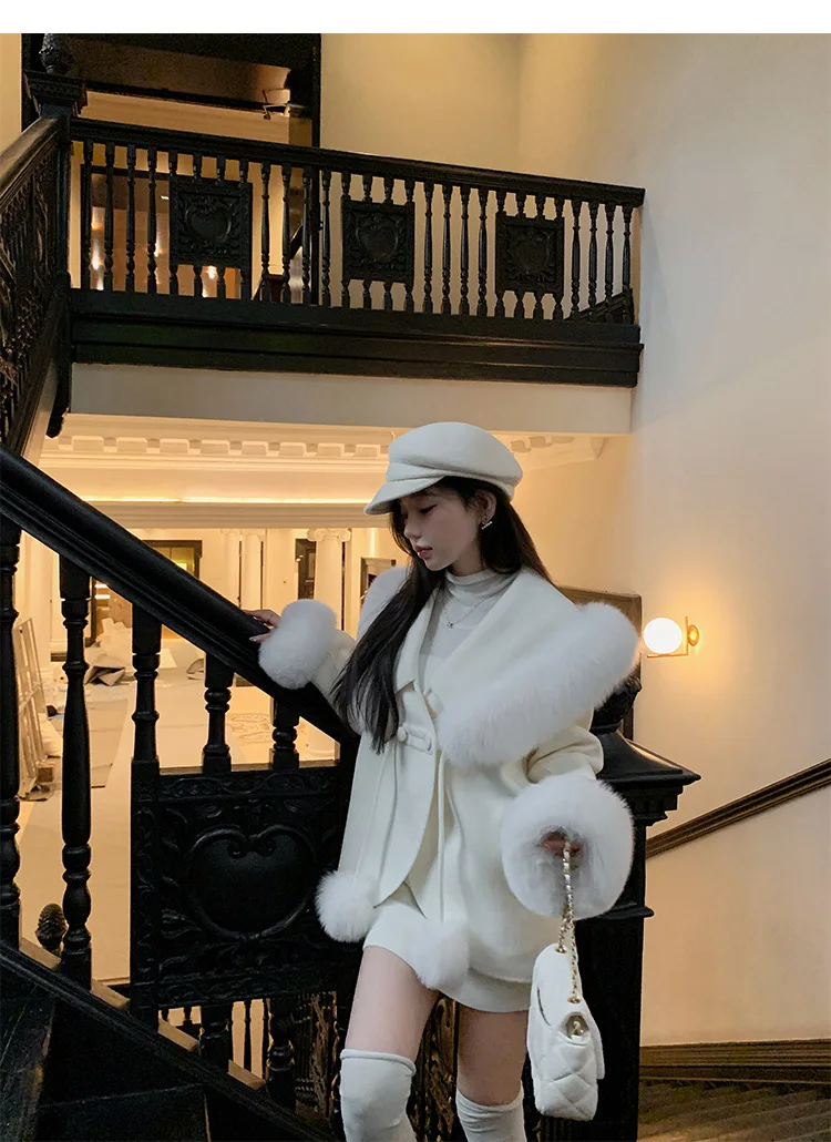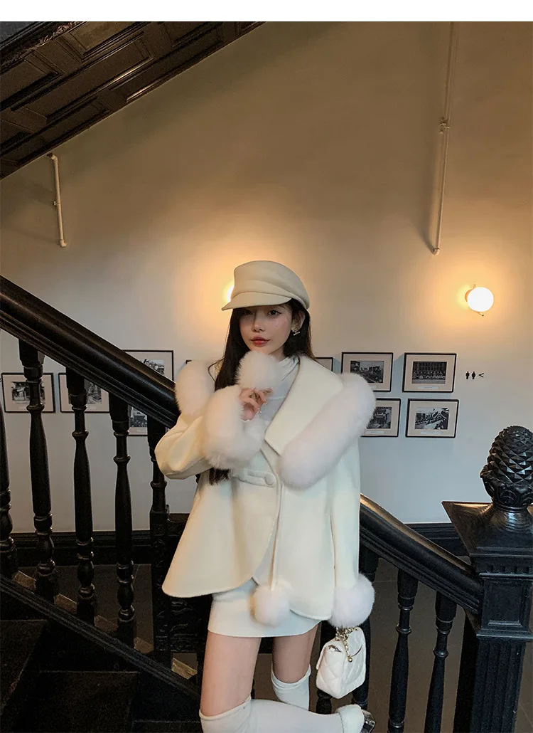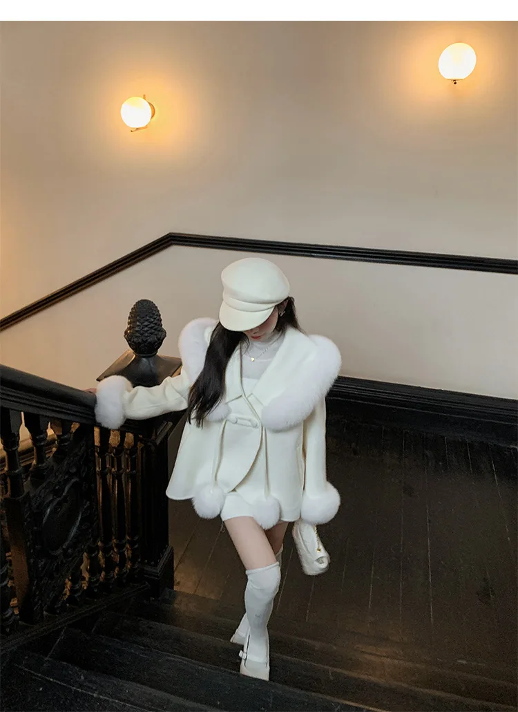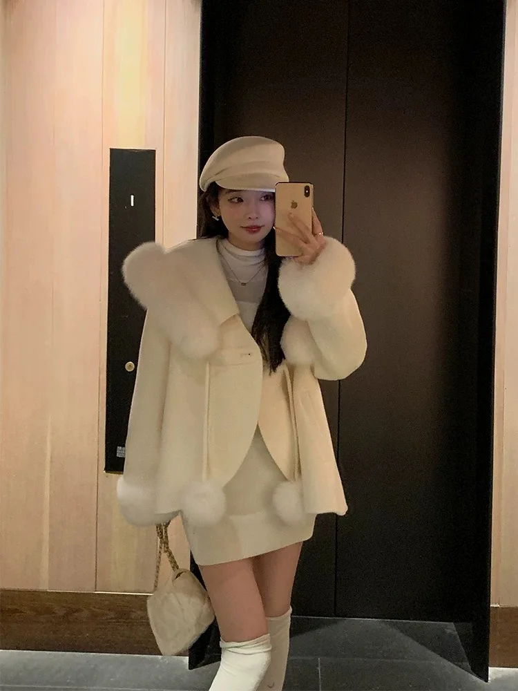 Cappotto di lana double face 2024 Autunno e inverno Nuovo stile Collo di pelliccia di volpe Cappotto di temperatura avanzata di fascia alta per le donne 1Cappotto di lana double face 2024 Autunno e inverno Nuovo stile Collo di pelliccia di volpe Cappotto di temperatura avanzata di fascia alta per le donne