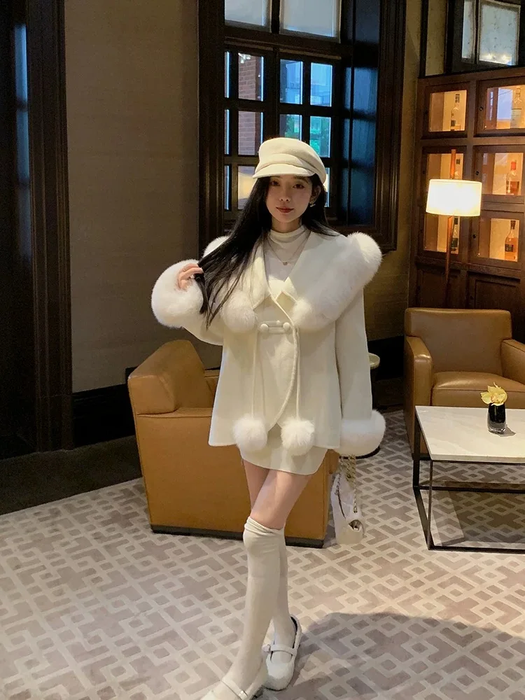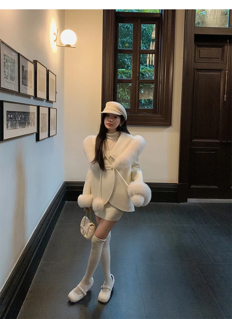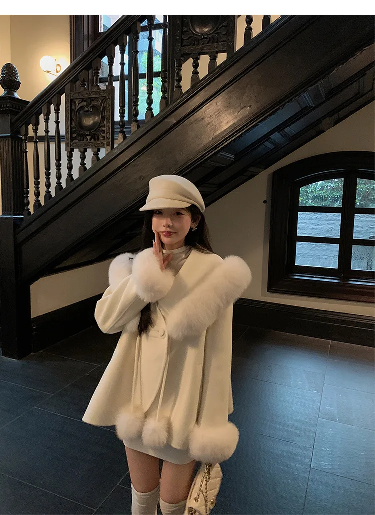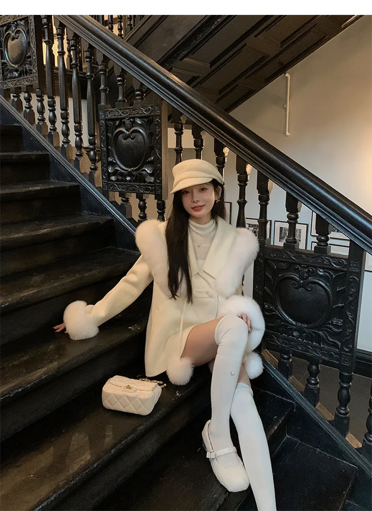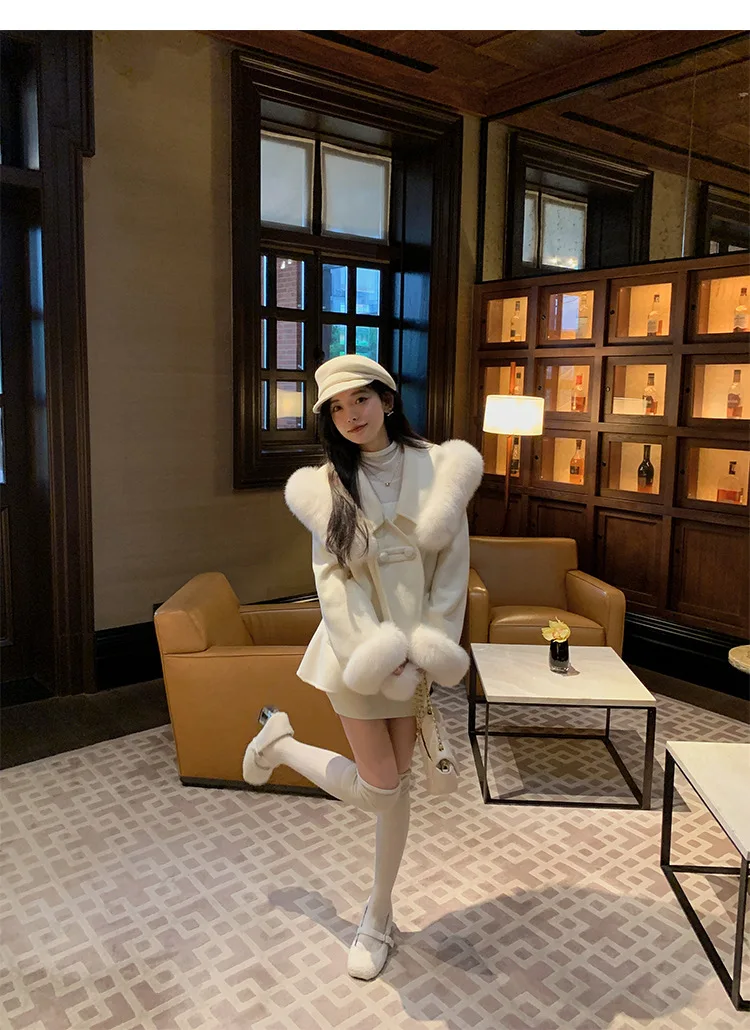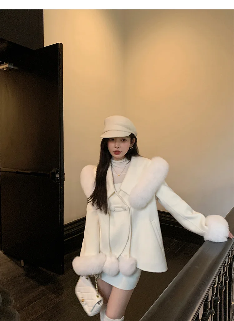 Cappotto di lana double face 2024 Autunno e inverno Nuovo stile Collo di pelliccia di volpe Cappotto di temperatura avanzata di fascia alta per le donne 1Cappotto di lana double face 2024 Autunno e inverno Nuovo stile Collo di pelliccia di volpe Cappotto di temperatura avanzata di fascia alta per le donne