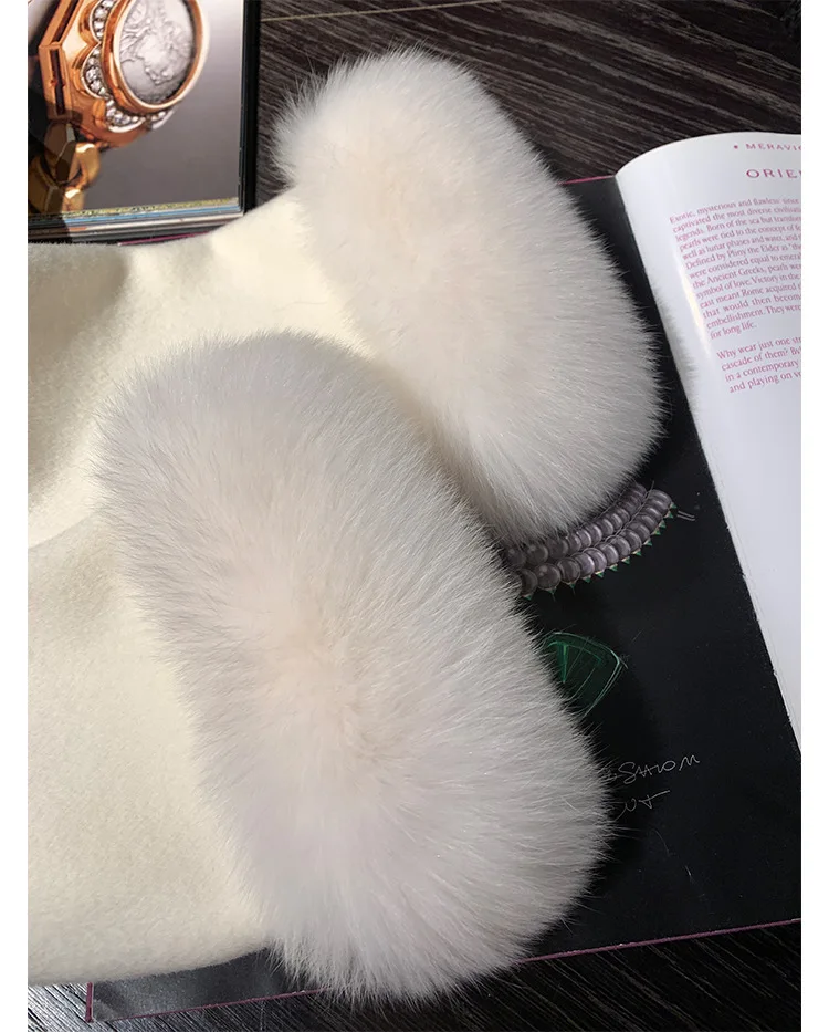Cappotto di lana double face 2024 Autunno e inverno Nuovo stile Collo di pelliccia di volpe Cappotto di temperatura avanzata di fascia alta per le donne