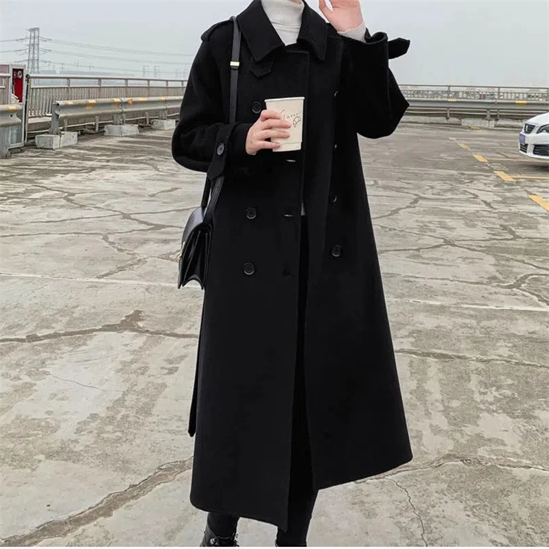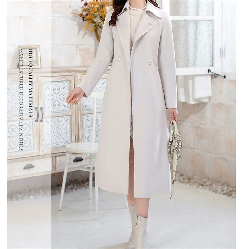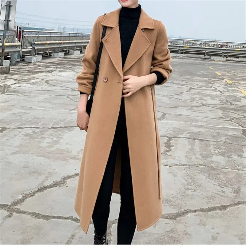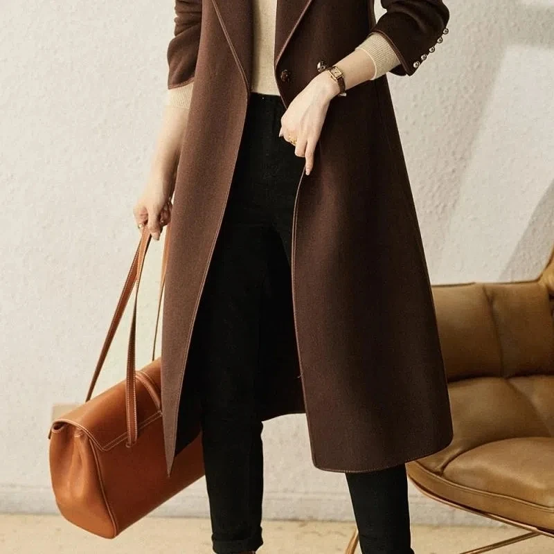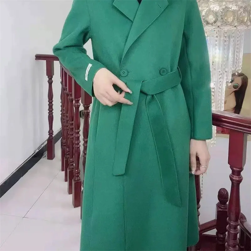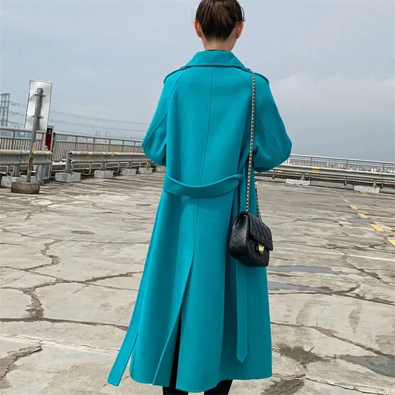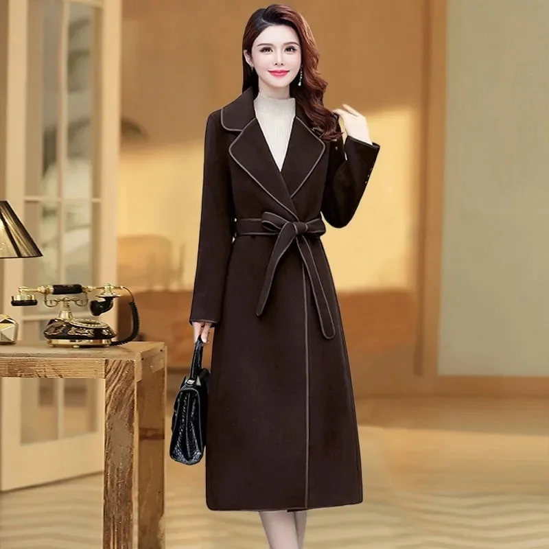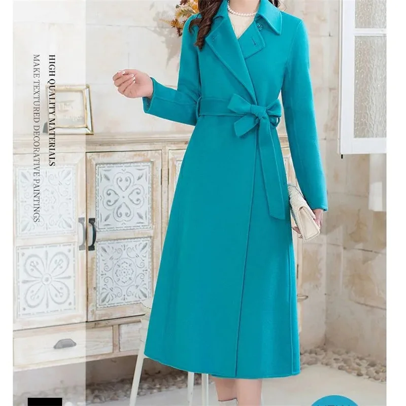 Cappotto di lana double face di alta qualità Giacca di cashmere Lace-Up Autunno Inverno Lungo e sottile Trench moda Capispalla femminile 2025 Ne