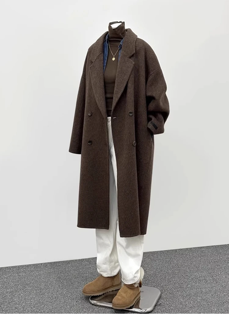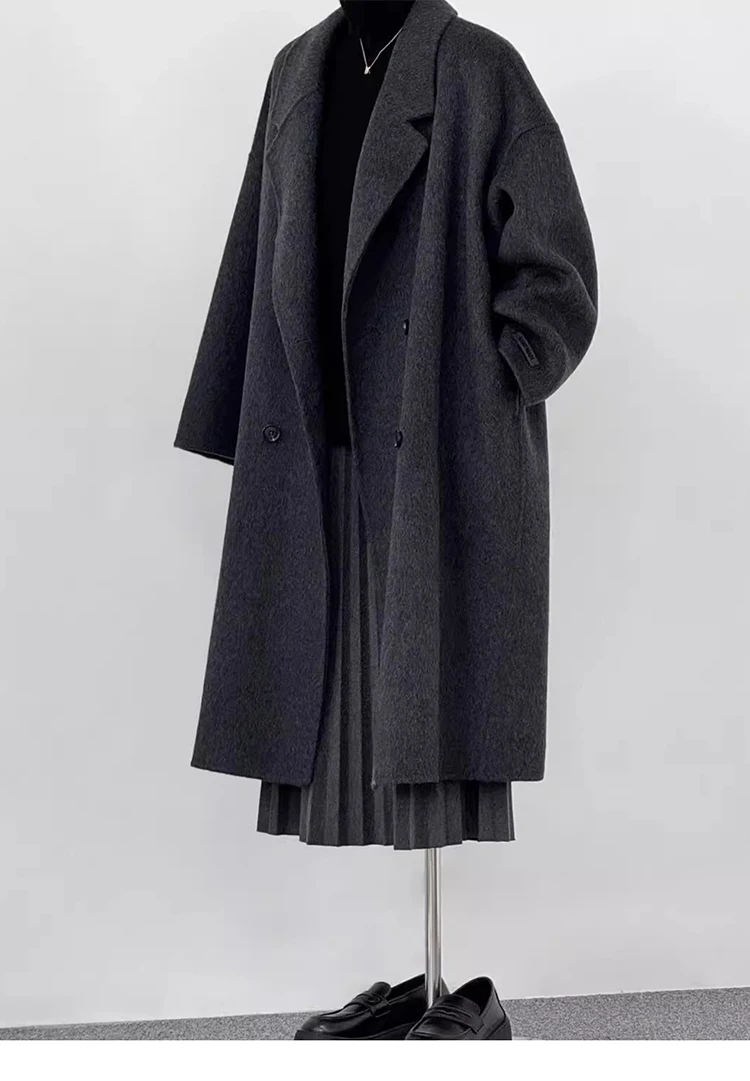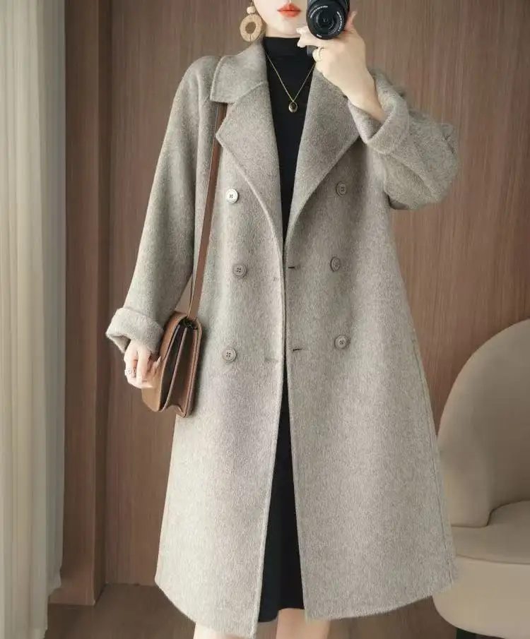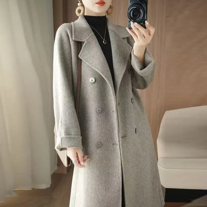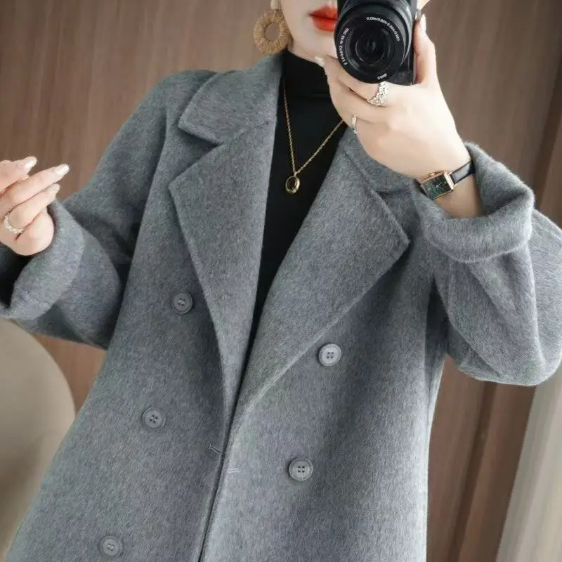 Cappotto di lana double face grigio scuro da donna nell’autunno e nell’inverno 2025, nuova giacca di media lunghezza di fascia alta stile Hepburn