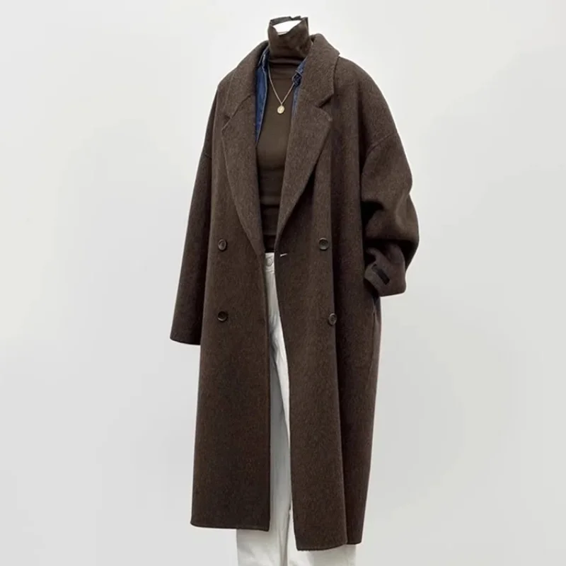 Cappotto di lana double face grigio scuro da donna nell’autunno e nell’inverno 2025, nuova giacca di media lunghezza di fascia alta stile Hepburn