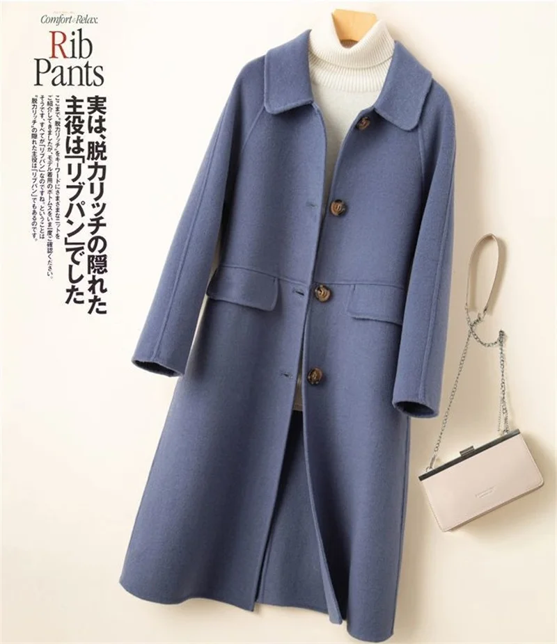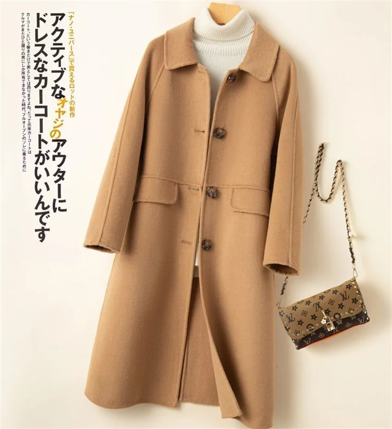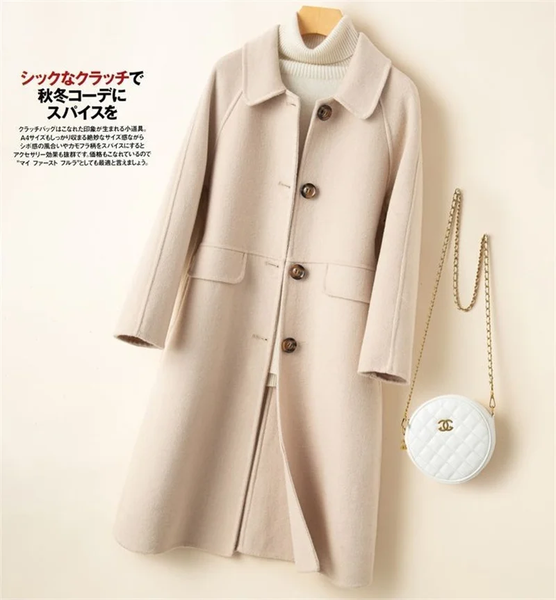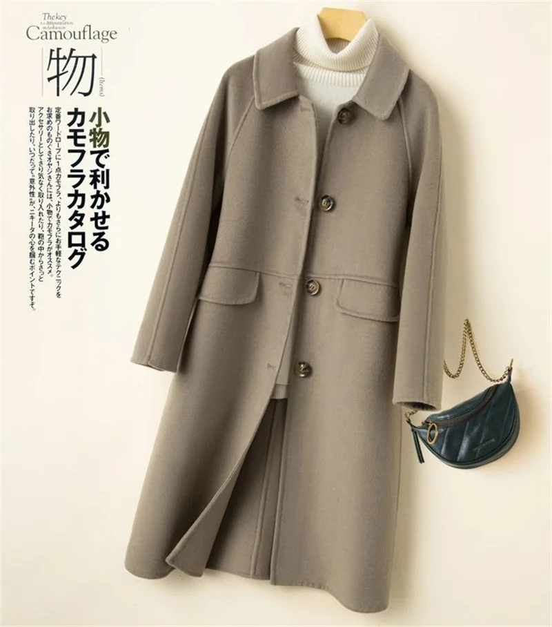 Cappotto di lana ispessito da donna di media lunghezza elegante da donna di piccole dimensioni capispalla autunno inverno nuovo stile vestibilità ampia crusca cinese