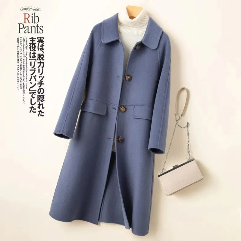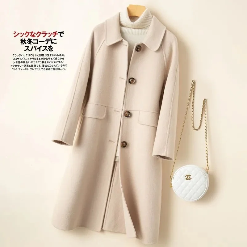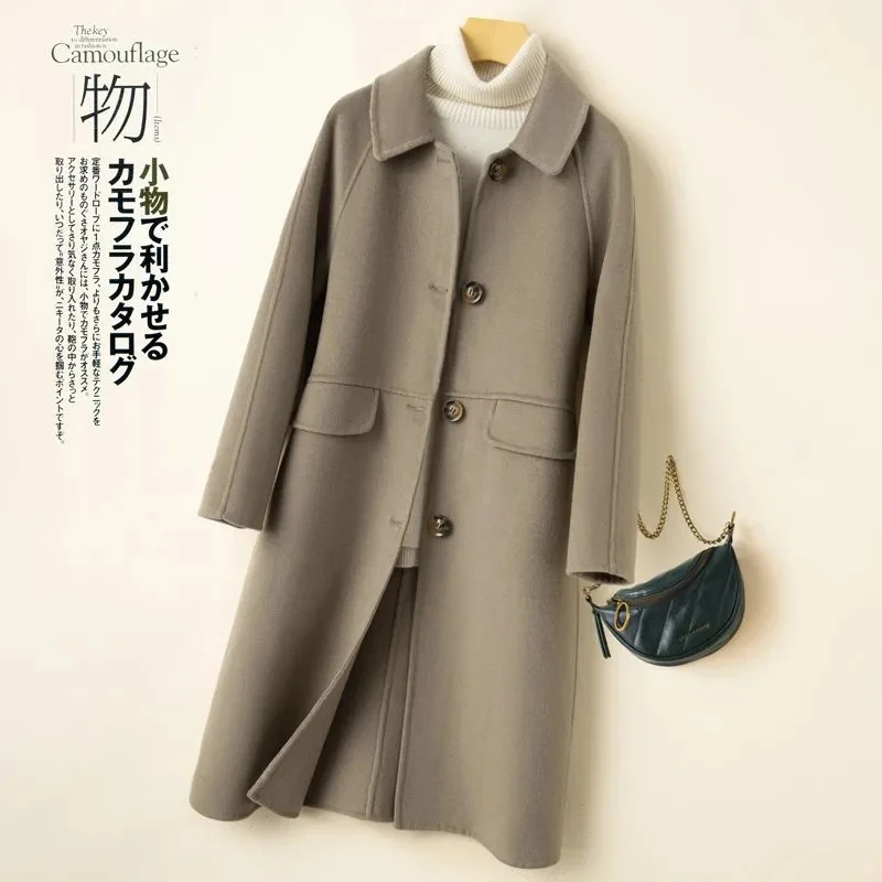 Cappotto di lana ispessito da donna di media lunghezza elegante da donna di piccole dimensioni capispalla autunno inverno nuovo stile vestibilità ampia crusca cinese