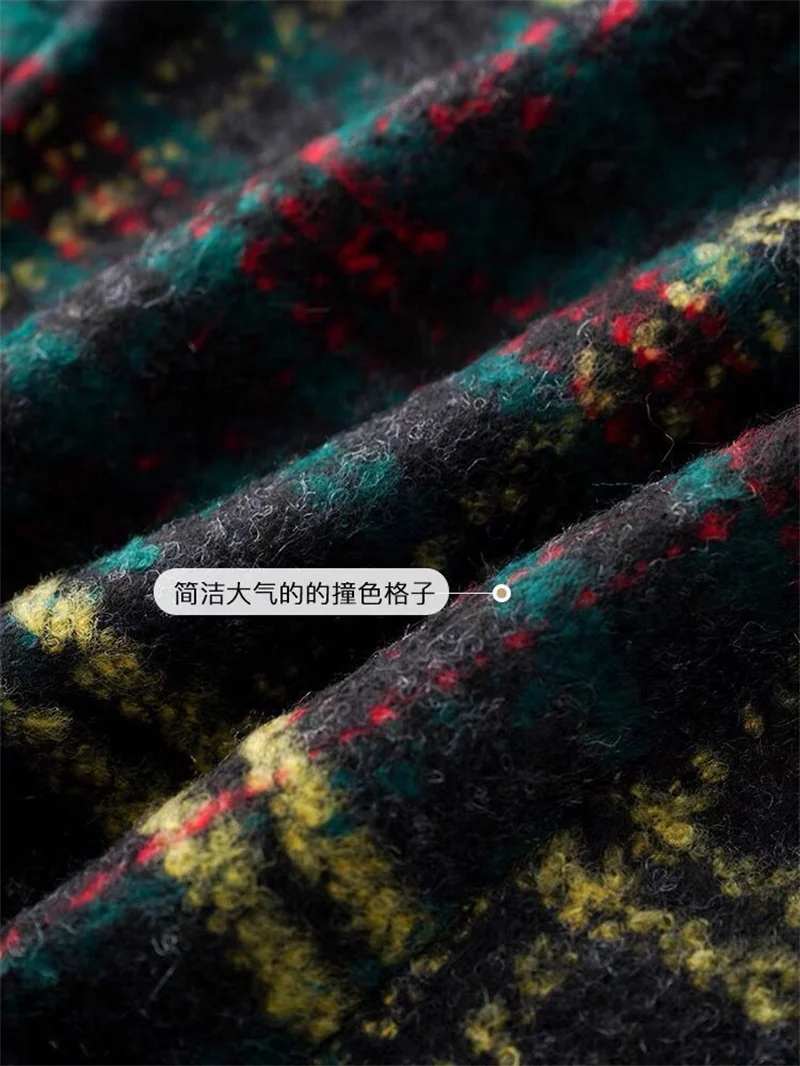 Cappotto di lana retrò da donna di media lunghezza 2023 autunno/inverno nuovo cappotto scozzese allentato ispessito allentato cappotto da donna sottile impiombato pendolare