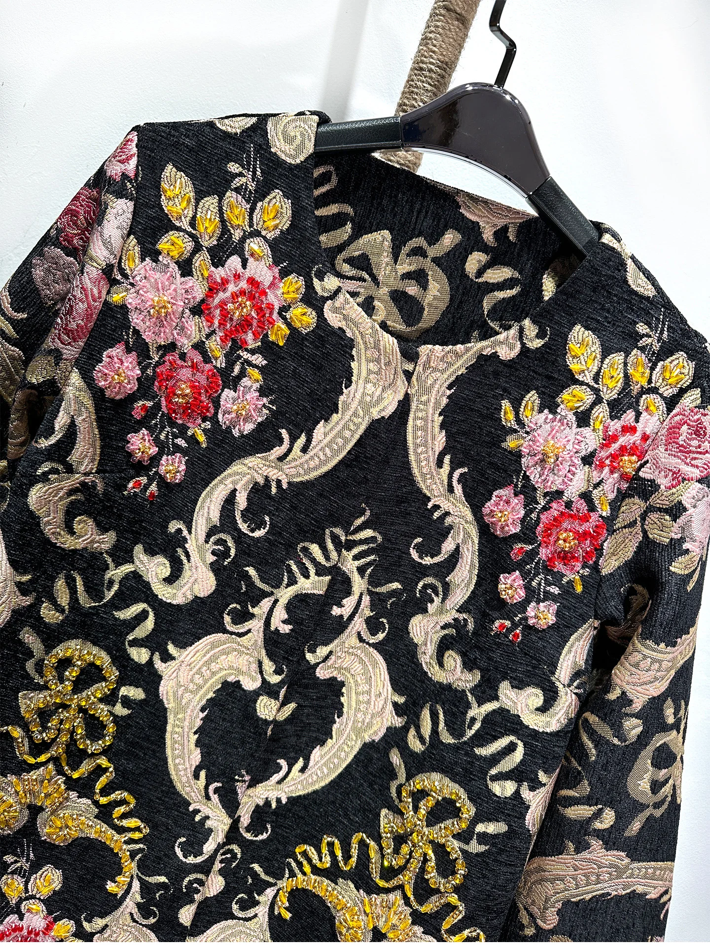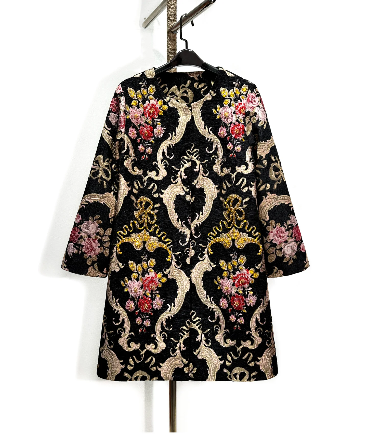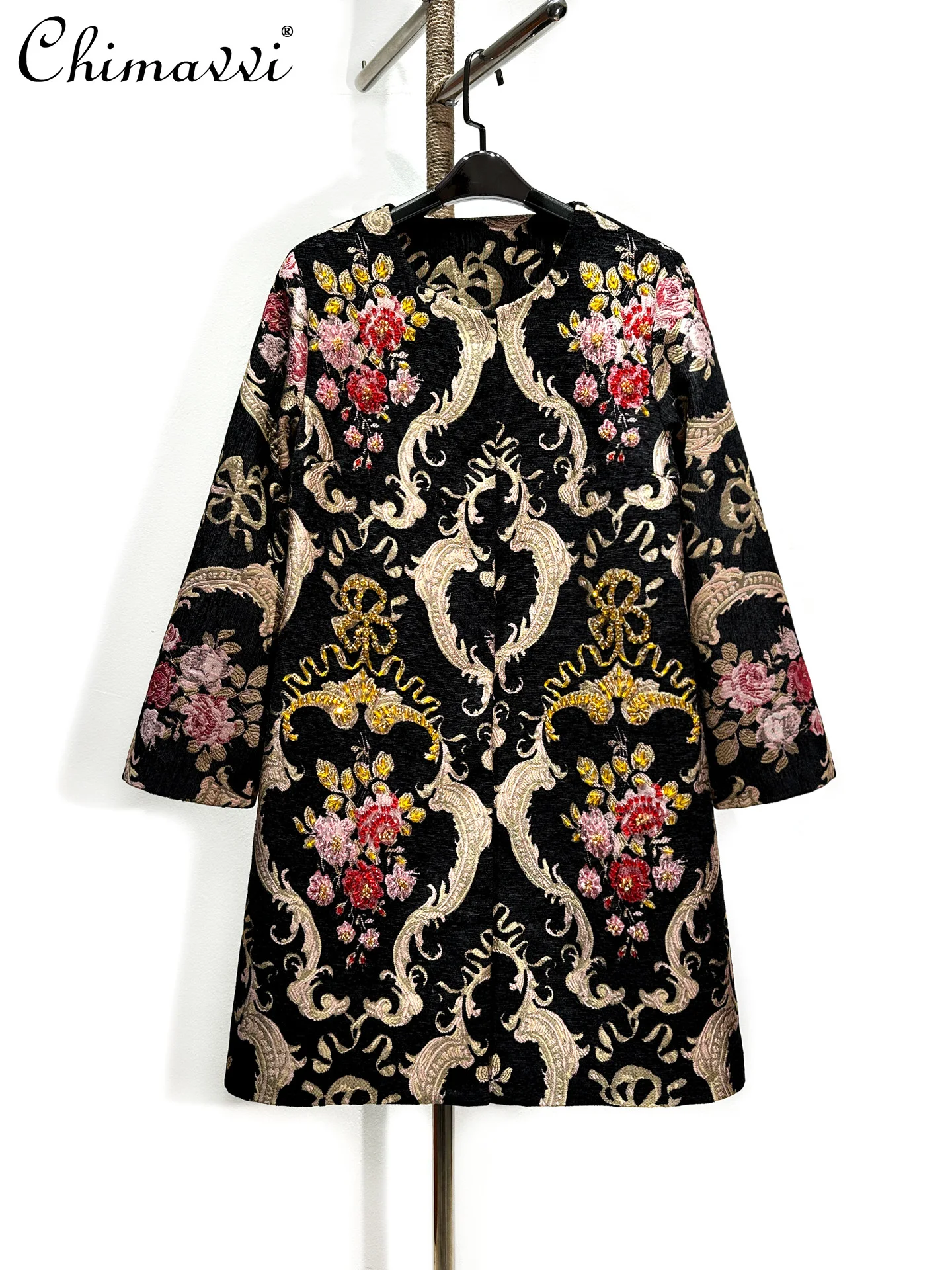 Cappotto di media lunghezza dimagrante con perline pesanti retrò elegante jacquard di fascia alta da donna 2025 Cappotto da donna allentato di nuova moda autunno inverno 1Cappotto di media lunghezza dimagrante con perline pesanti retrò elegante jacquard di fascia alta da donna 2025 Cappotto da donna allentato di nuova moda autunno inverno